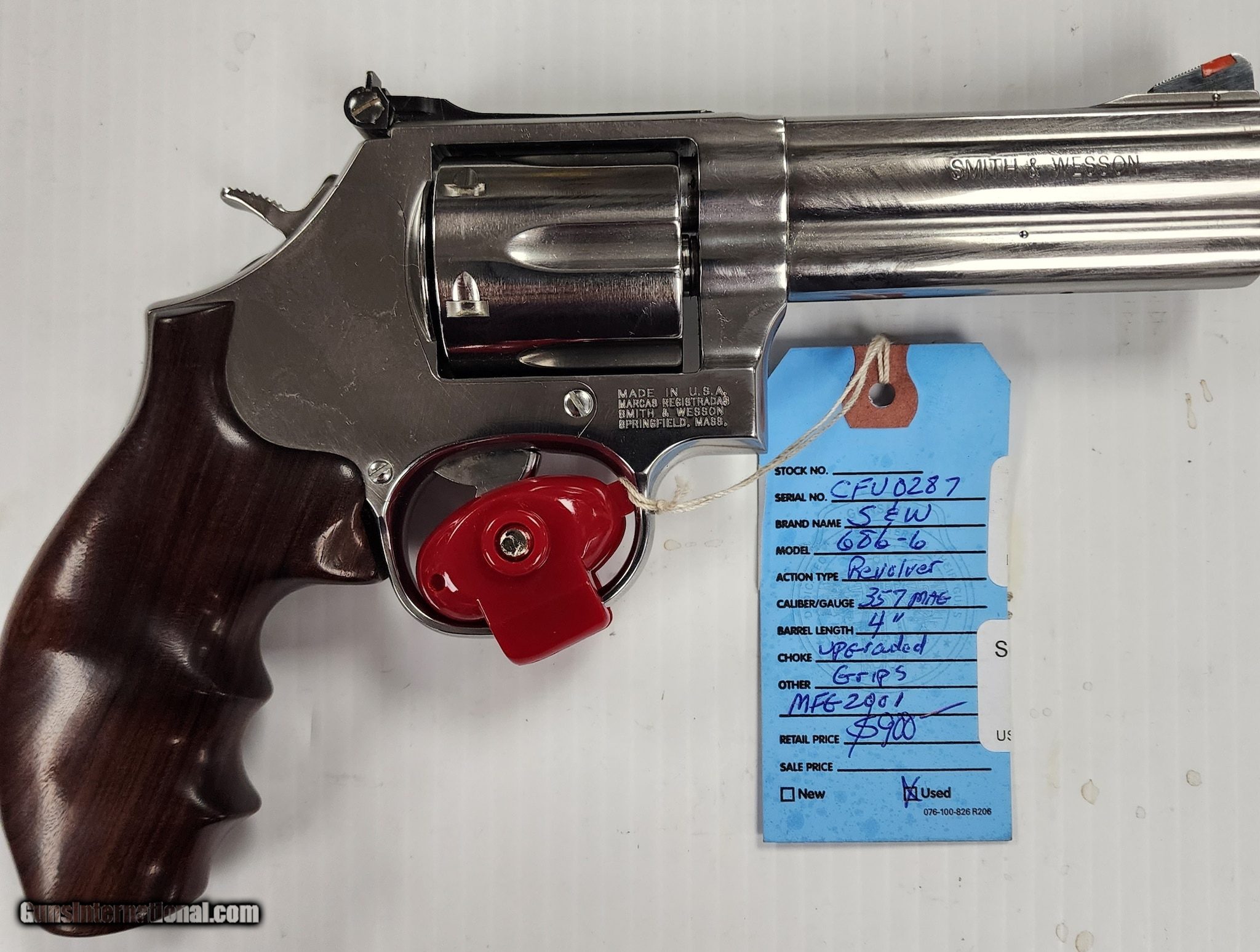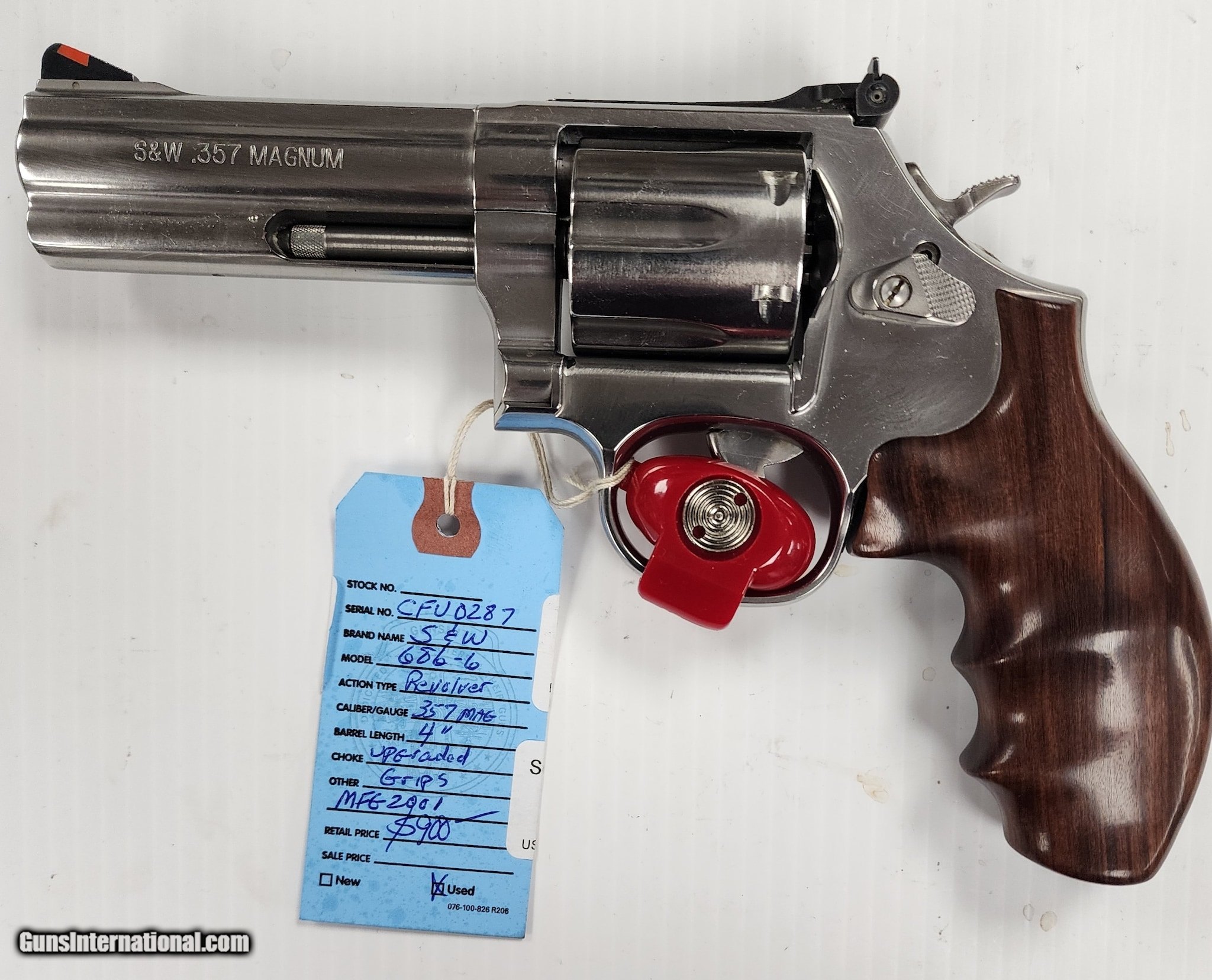 Description: Guns Listing ID: 1101743 JUST CAME IN TO THE STORE IS A S&W 686-4 4\" REVOLVER. THIS IS IN EXCELLENT CONDITION. THE PREVIOUS OWNER INDICATED THAT HE FIRED IT VERY FEW TIMES. PLEASE SEE THE PICTURES TO DETERMINE THE CONDITION FOR YOURSELF. WE PUT ALL THE INFORMATION WE HAVE ABOUT THESE ITEMS ON THE ON-LINE LISTING. SOLD Manufacturer: SMITH & WESSON Model: 686-6 Caliber Info: .357 MAG Condition: Used - Non-Certified Barrels: 4 BARREL Finish: STAINLESS WITH WOOD STOCK |