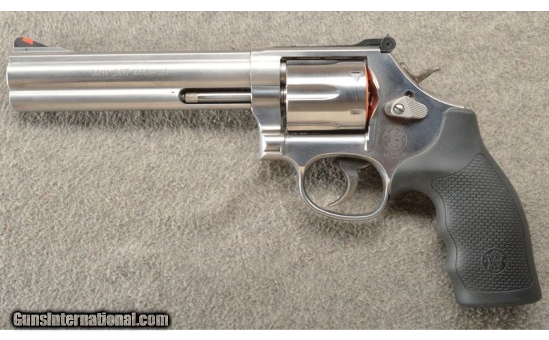 Description: This is a very nice and new looking S&W 686-6 revolver in .357 Magnum. This revolver has black rubber factor grips. The metal is stainless steel and is very close to new looking. This nice revolver comes in the case. .357 Magnum SOLD Chambers: 6 shot revolver. Metal Condition: Excellent. Wood Condition: The grips are as new. Bore Condition: Bright and shiny. Barrels: 6 inch stainless steel with factory sights. Triggers: Single case color for single and double action. Weight: 3 lbs. Sights: Adjustable rear target and a blade with orange insert front. Item Location: Owatonna, MN |