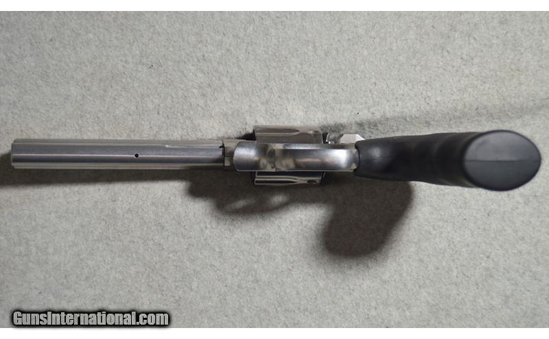 Description: Seven-shot cylinder double-action revolver manufactured by Smith & Wesson and chambered for the .357 Magnum cartridge Will also chamber and fire .38 Special cartridges. Smith & Wesson introduced the Model 686 in 1981. Stainless Steel finish. .357 Magnum SOLD Metal Condition: Very good with minor handling marks Wood Condition: Rubberized grips with no noticeable wear or handling marks Bore Condition: Bright and clear with good rifling Barrels: 6 Weight: 2 lb 13 oz Sights: Rear notched/front ramped Item Location: Fort Worth, TX |