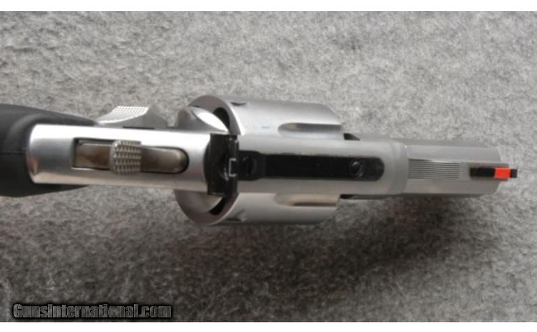 Description: This very nice Smith & Wesson may not have been fired since it left the factory. If you are in the market for big power in a small package this is it. SOLD Manufacturer: 2013 Caliber Info: .357 Magnum. Chambers: 6 Shot revolver. Metal Condition: Excellent. Wood Condition: The grips looks new. Bore Condition: Bright and shiny. Barrels: 2.5 Inch Stainless Steel. Triggers: Single for single and double action. Stock: Textured black rubber with S&W logo. Weight: 2 LBS 3 OZ. Sights: Blade front with orange insert. Adjustable white outline square notch rear. Extras: Comes with the factory case, lock, shell casing and the factory paperwork. Item Location: Owatonna, MN |