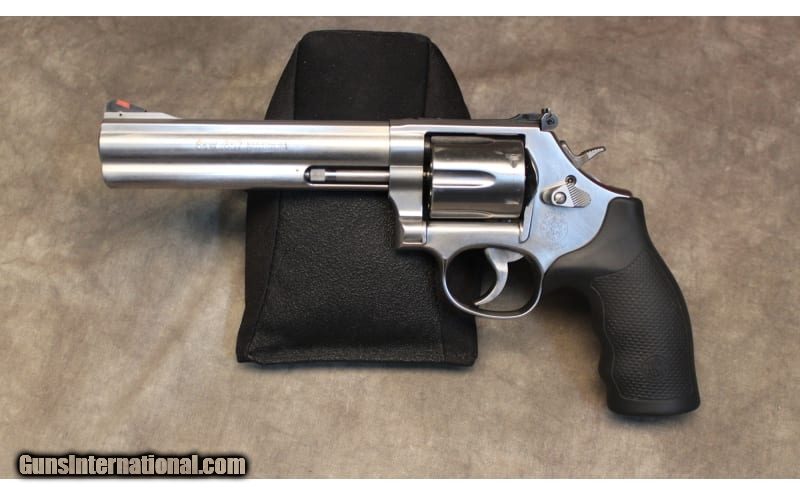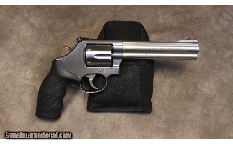 Description: This Smith & Wesson 686-6 is in very good to excellent condition. Smith & Wesson revolvers are known for their good triggers and this gun is no exception. It would make a great home defense or hunting handgun for light to medium game. .357 Magnum SOLD Chambers: .357 Magnum Metal Condition: Excellent Bore Condition: Excellent Barrels: 6 Butt Pad: Grip is black synthetic rubber. Weight: 45 oz Sights: "White outline rear, red ramp front Item Location: Columbia, MO |