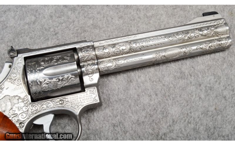Description: Includes display case. SOLD Caliber Info: .357 Mag. Metal Condition: Excellent with sharp engraving. Wood Condition: Excellent. Bore Condition: Shiny with good rifling. Barrels: 6 Stock: Checkered walnut grips. Weight: 45-ozs. Sights: Front blade, adjustable rear blade. Item Location: Fort Worth, TX |