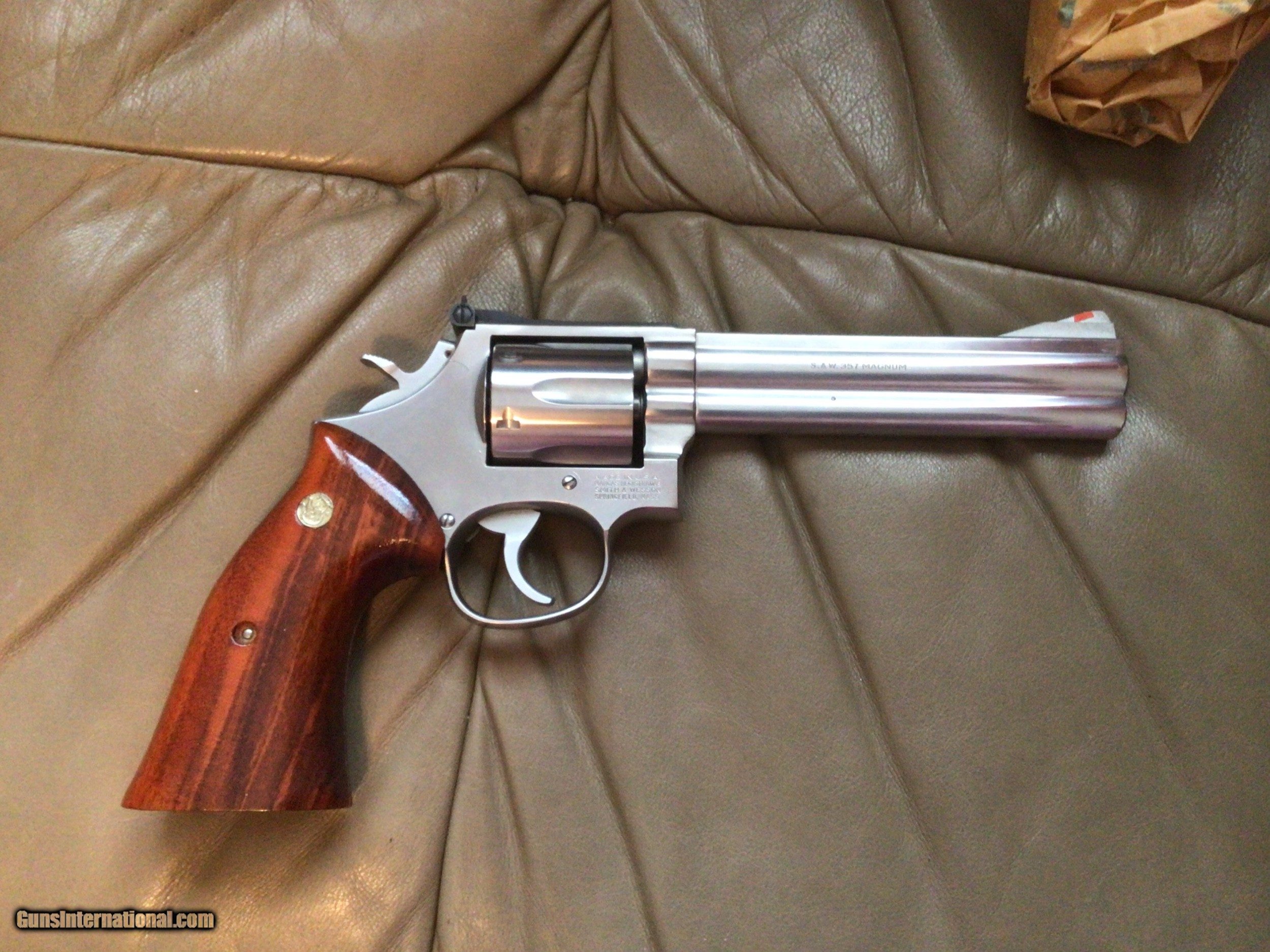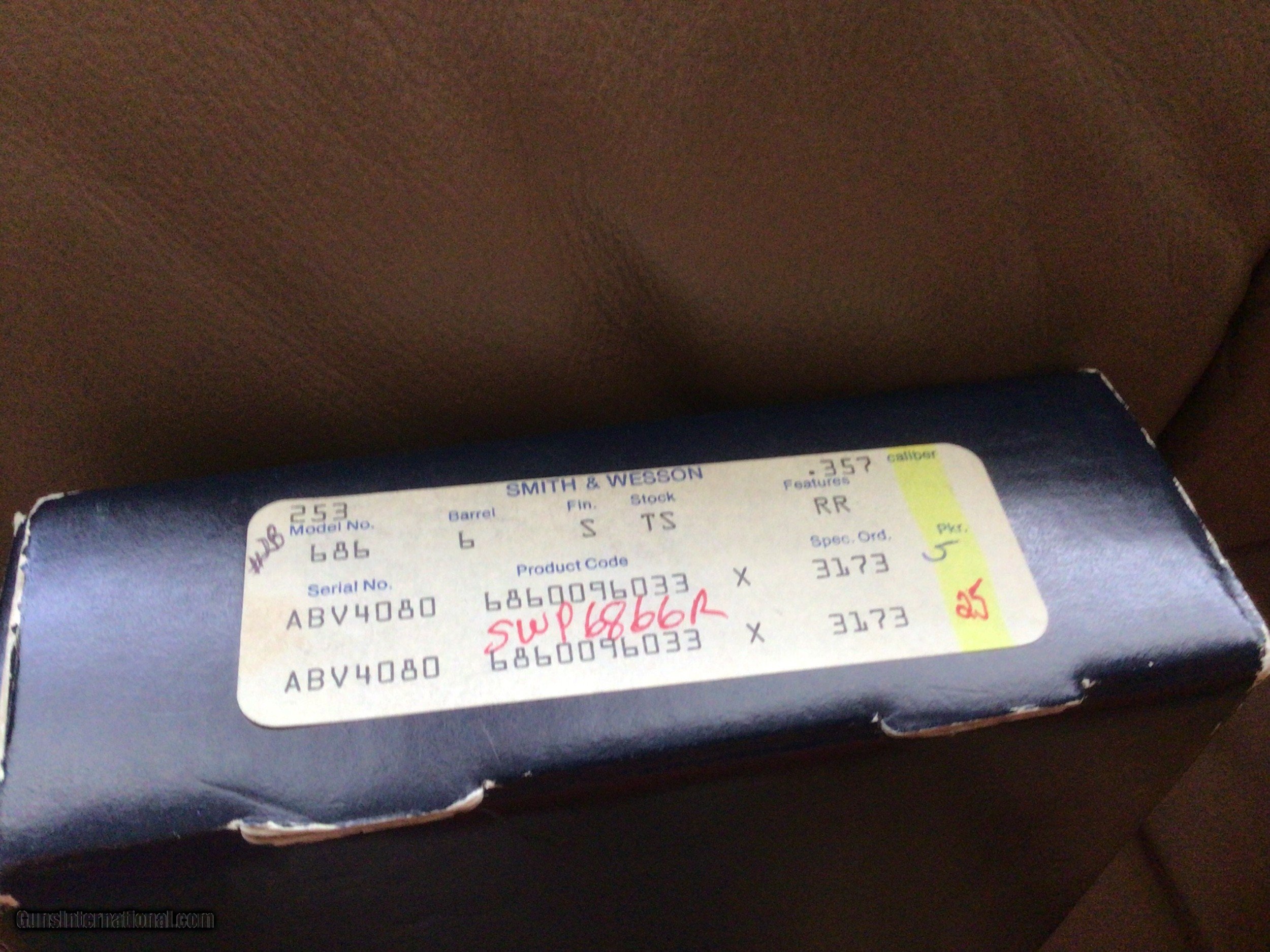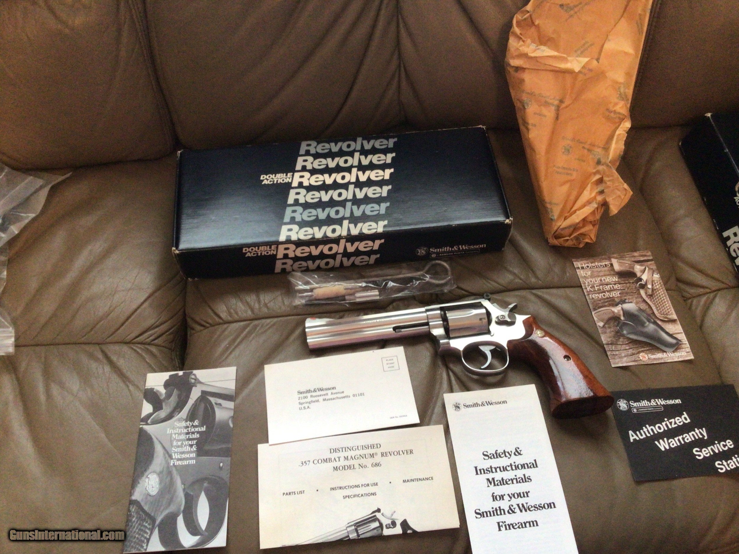 SMITH & WESSON 686 NO DASH, 357 MAGNUM, 6” STAINLESS, TARGET GRIPS, NEW UNFIRED IN THE BOX WITH OWNERS MANUAL, TOLL CLEANING KIT IN PLASTIC