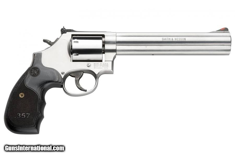 Description: Manufacturer: Smith & Wesson Model: Model 686 Plus 3-5-7 Magnum® Series SKU: 150855 Action: Single/Double Caliber: .357 Magnum / .38 S&W Special +P Capacity: 7 Round Cylinder, Stainless Steel Barrel: 7" Stainless Steel Frame: Stainless Steel, Satin Stainless Overall Length: 12.25" Grips: Black/Silver "357" Custom Wood Grip Sights: Front- Red Ramp, Rear- Adjustable White Outline Weight: 51.2 oz All items are factory new in box unless otherwise stated. Based on the information available to us, the above specifications describe this item to the best of our knowledge. For further information, please contact or visit the manufacturer's . SOLD |