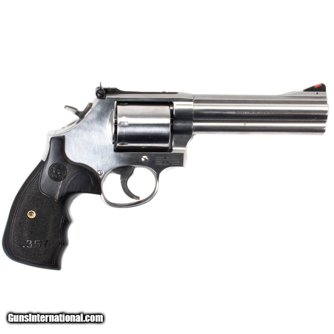Description: Guns Listing ID: 573544 This Smith & Wesson Model 686 Plus features wood grips and an adjustable rear sight. Purchase includes the original case, manual, and a right-handed OWB leather holster. Get the best bang for your buck when you get a Certified Used Firearm . When you see the Certified Used stamp on any of our firearms, you can be confident that you‚re getting exactly what you want – a gun only in very good to excellent condition and held to the highest quality standard. All Certified Used Guns come with a ‚no questions asked‚ return policy . SOLD Manufacturer: SMITH & WESSON Model: 686 PLUS 3-5-7 MAGNUM SERIES Caliber Info: .357 MAG Condition: Used - Certified Barrels: 5.00" BARREL Action: REVOLVER Finish: stainless Weight: 2.6 |