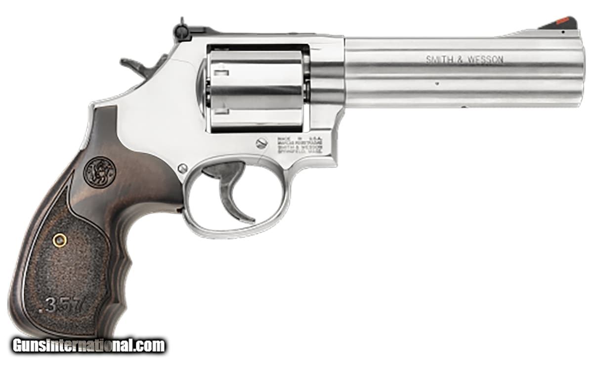 Description: Guns Listing ID: 24460 A double-action revolver built on the medium-sized L-frame the Smith Wesson Model 686 is known for its durability and reliability and is a trusted choice for many police personnel. Available with wood or rubber grips and in a number of barrel lengths this revolver is chambered in 357 Mag and is built to withstand heavy use while the stainless steel frame cylinder and barrel resist rust and corrosion. Other features include 6-round and 7-round capacities and a red ramp front sight and adjustable white outline rear sight. In addition to law enforcement the Model 686 is often used by hunters and is a suitable choice for home defense. Details Action SADA - Caliber .357 Magnum .38 SW Special P - Capacity 7 - Finish Satin Stainless - Material Steel - Grip BlackSilver 357 Custom Wood Grip - Sight Red Ramp Adjustable White Outline - Barrel Length 5 - Overall Length 10.25 - Weight 37.4 oz SOLD Manufacturer: SMITH & WESSON Model: 686 PLUS 3-5-7 MAGNUM Caliber Info: .357 MAG Condition: new Barrels: 5" barrel Finish: SATIN STAINLESS |
