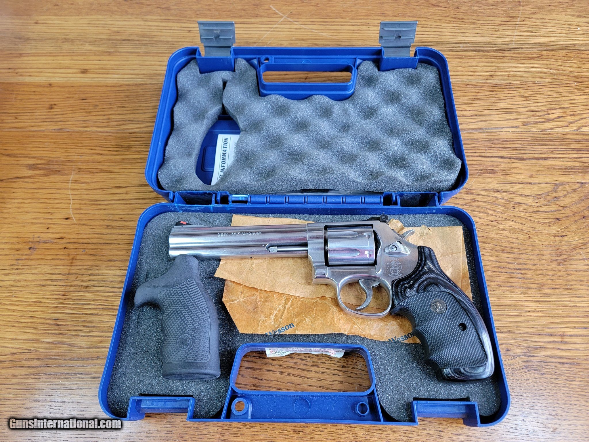 Description: Guns Listing ID: 479055 Very nice 686-6 Plus. Includes original box and grips. Has Pachmayr grips installed. Very good condition with very light scratching throughout. SOLD Manufacturer: SMITH & WESSON Model: 686 PLUS Condition: Used - Non-Certified Barrels: 6 Gauge Info: .357 MAG Finish: stainless steel |
