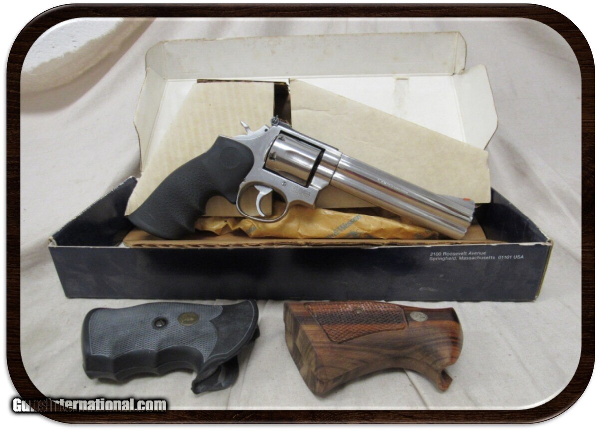 Description: Guns Listing ID: 891380 SMITH & WESSON MODEL 686-2 - 357 MAG - 6-ROUNDS - 6\" BARREL DOUBLE-ACTION REVOLVER INCLUDES S&W BOX W/ 2 ADDITIONAL GRIPS A double-action revolver built on the medium-sized L-frame the Smith & Wesson Model 686 is known for its durability and reliability and is a trusted choice for many police personnel. Available with wood or rubber grips, this revolver is chambered in .357 Mag and is built to withstand heavy use while the stainless steel frame cylinder and barrel resist rust and corrosion. Features include a red ramp front sight and adjustable white outline rear sight. In addition to law enforcement the Model 686 is often used by hunters and is a suitable choice for home defense. SOLD Manufacturer: SMITH & WESSON Model: MODEL 686-2 Caliber Info: .357 MAG Condition: Used - Non-Certified Barrels: 6 BARREL Finish: STAINLESS |