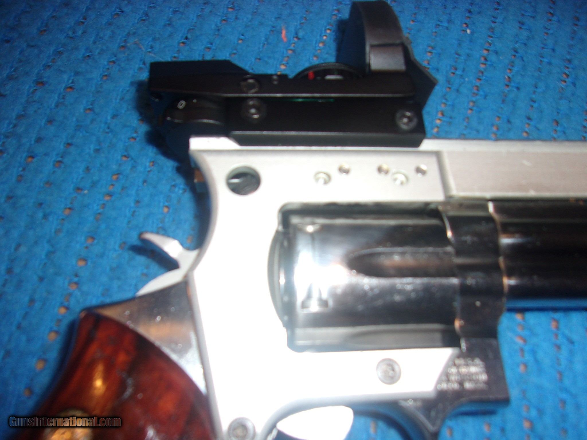 Description: SMITH & WESSON NO SALES TO NEW JERSEY HAWAII CALIFORNIA or ILLINOIS KNOW YOUR STATE LAWS MODEL 686 $850 + $40 SHIPPING. Gun is in extremelly good condition, stainless steel and 357MAG Caliber. Has a RED / GREEN DOT gun sight, with various brightness and sight patterns. Scope mount is mounted to frame, giving an EXCEPTIONALLY STRONG scope and sight mounting platform. SOLD Handgun Caliber: .357 Magnum Manufacturer: SMITH & WESSON Model: 686 Barrel Length: 8.5 Condition: EXTREMELY NICE Metal Condition: EXTREMELY GOOD Wood Condition: EXTREMELY GOOD Bore Condition: EXTREMELY GOOD |