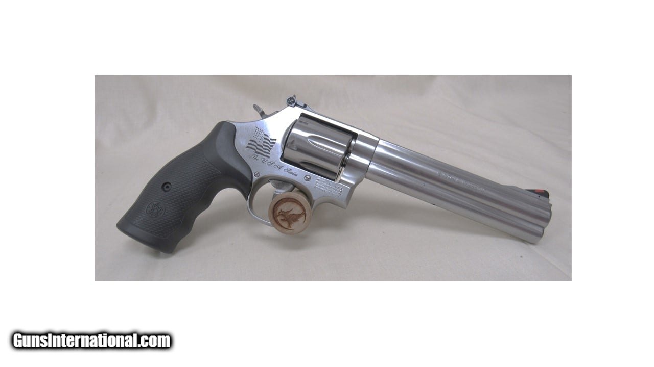 Description: Guns Listing ID: 1060331 Smith & Wesson Model 686 Metal Frame Revolver, L-Frame, 357 Magnum, 6\" Barrel, Stainless Steel, Satin Finish, Rubber Grips, Adjustable Rear Sight, 6 Rounds, Part of the U.S.A. Series SOLD Manufacturer: SMITH & WESSON Model: MODEL 686-6 Caliber Info: .357 MAG Condition: Used - Non-Certified Barrels: 6 BARREL Finish: STAINLESS |