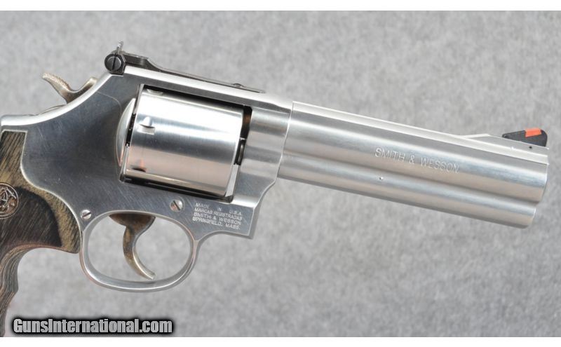 Description: Smith & Wesson Model 686-6 in 357 Magnum. 7-shot, stainless steel construction. Pre-owned in excellent condition with factory box. SOLD Caliber Info: 357 Magnum Metal Condition: Brushed Stainless Bore Condition: Excellent Barrels: 5 Inch W/ Full Underlug Triggers: DA/SA Stock: Laminated Wood Weight: 42 Ozs Sights: White Outline Adjustable Rear Sight, Red Ramped Front Item Location: Buda, TX |