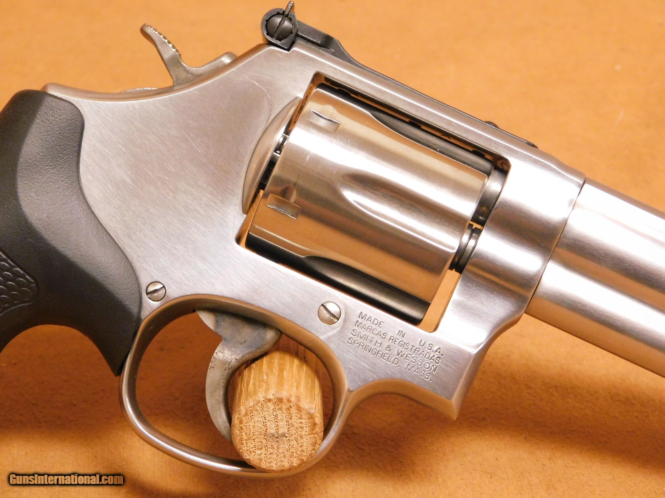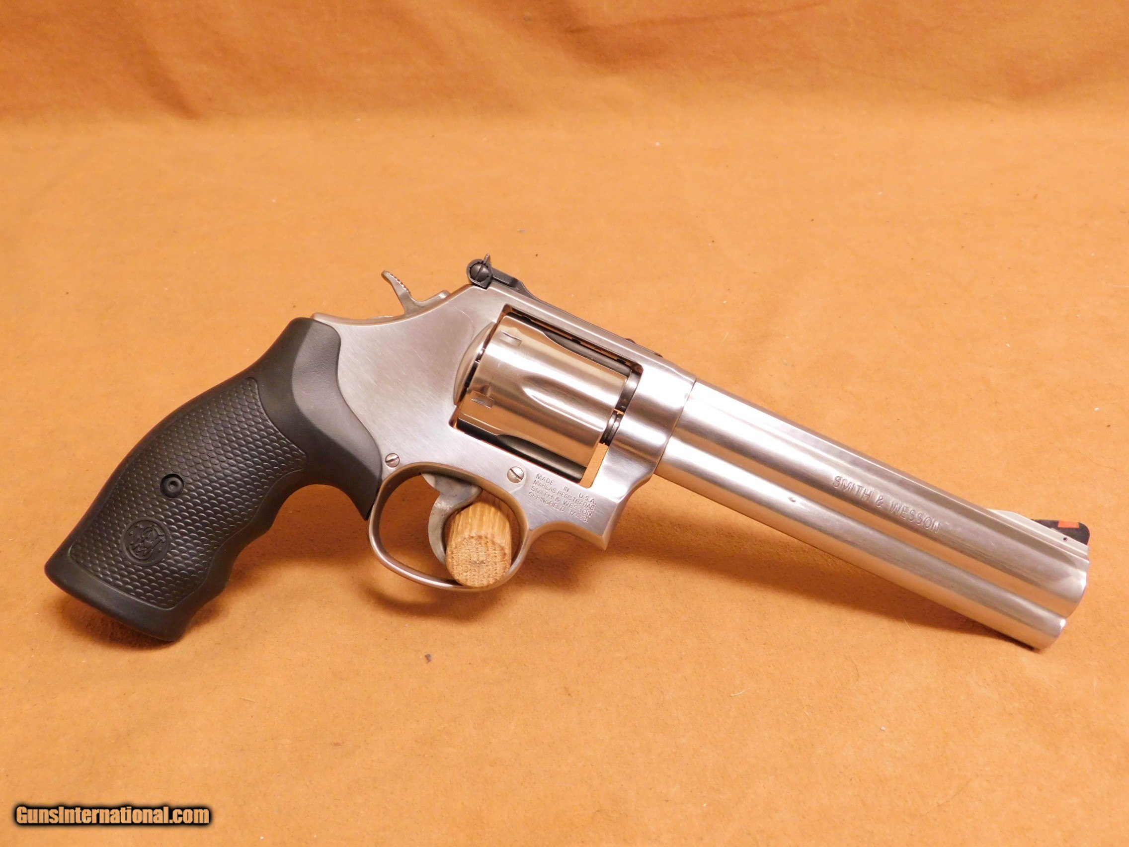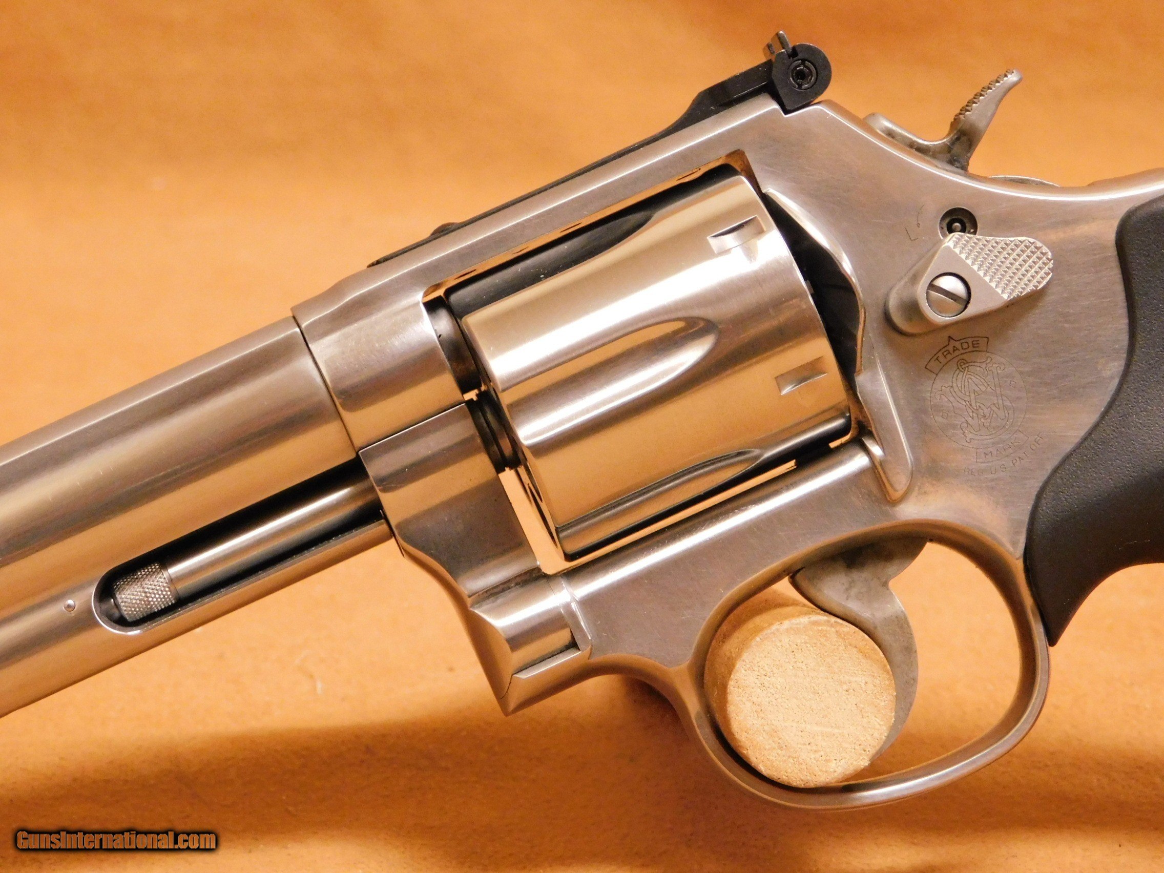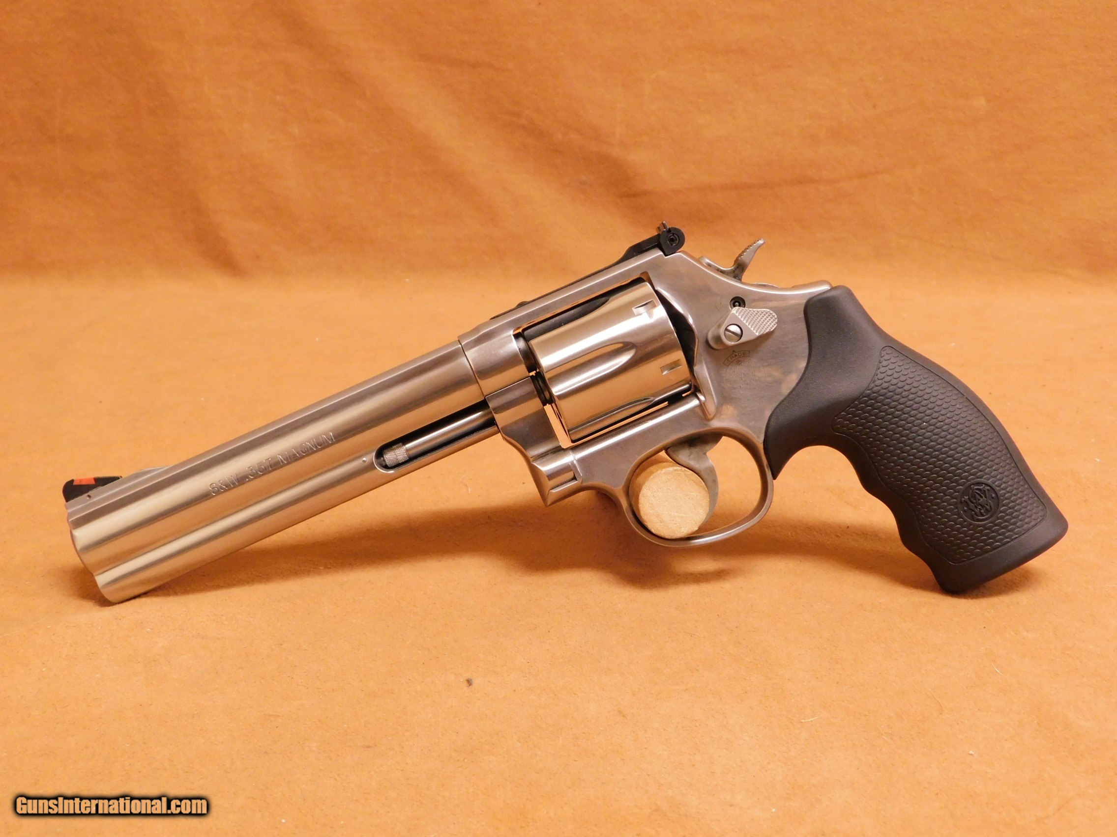 Description: This is a used, bet well-maintained Smith & Wesson Model 686-6 (SKU #164224). It is a stainless gun with a 6-inch barrel, holding up to 6 rounds of .357 Magnum. There do not seem to be any scratches or rashes on this gun. It is in fantastic shape! It comes with its box, papers, lock, and keys. All items are also available for sale in our brick & mortar store and are subject to prior sale. Think long, think wrong. Payment On firearms, we typically only accept credit cards or money orders/cashier's checks.