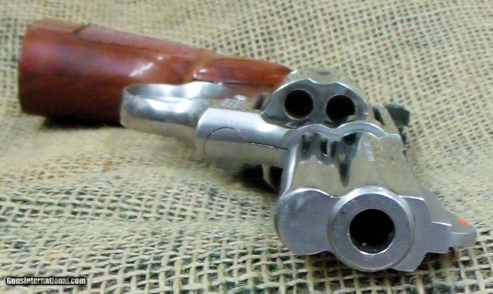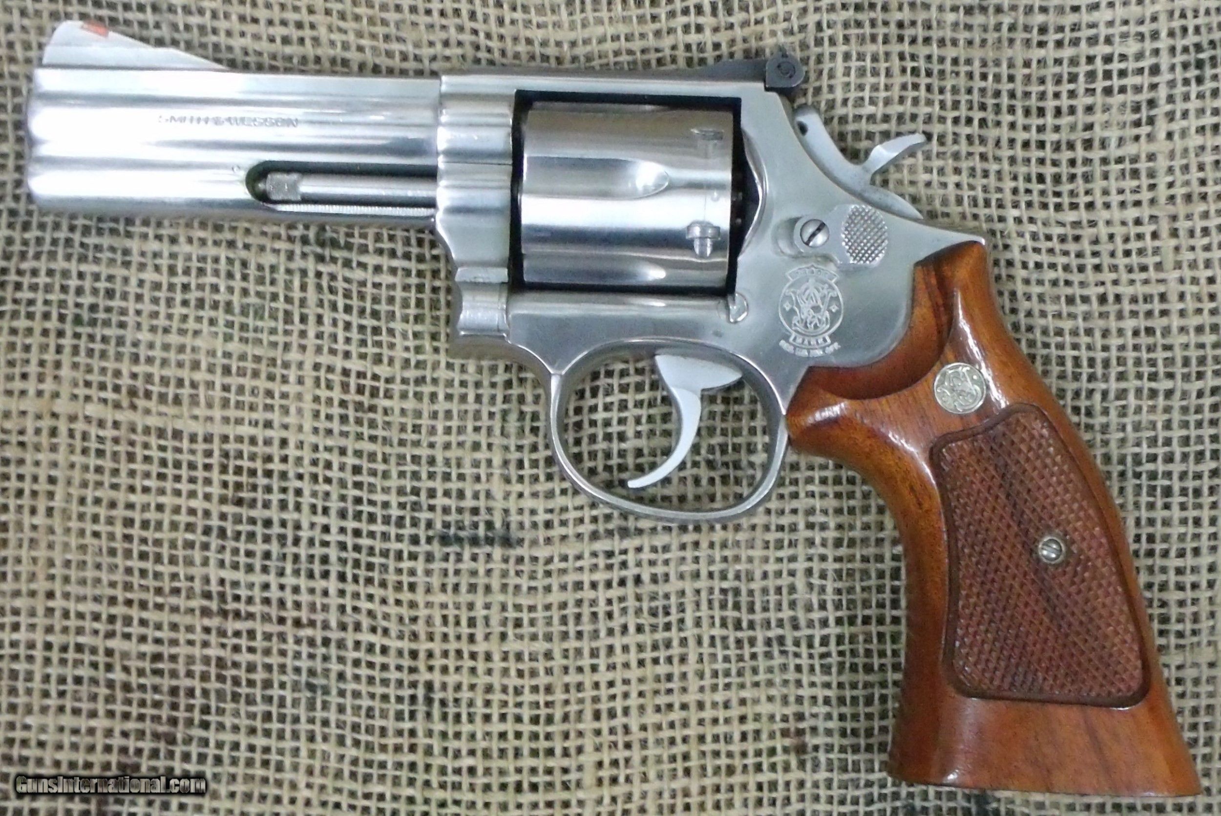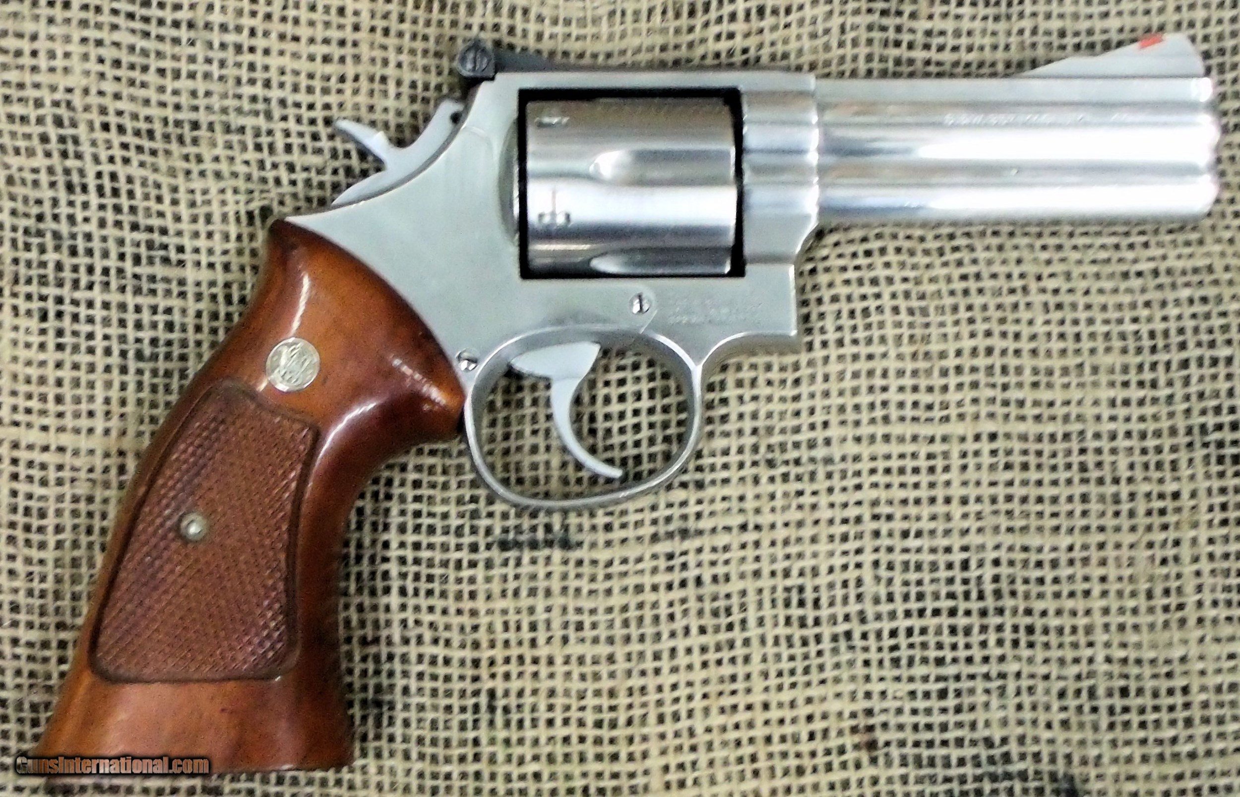 Description: Up for sale is a nice(97% overall condition) Smith & Wesson model 686M no dash double action revolver in 357 Magnum/38 Spl cal. This 1986 production(SN: AUL3008) revolver features stainless steel metal, 4 inch hvy barrel, checkered wood factory target style grips, and red ramp frt and adj. rear sights. J & M accepts Visa, MC, and Discover via telephone at 205-695-7574 from 8AM to 5PM CDT, Mon-Sat and also Mo or Cert. Ck. mailed to J & M Trading Post, PO Box 1375, Vernon, AL 35592. The listed price reflects a 3% cash equivalent discount. A $40.00 shipping and ins. chg. will be added to the purchase price. The revolver must be shipped to a FFL dealer. SOLD Manufacturer: Smith & Wesson Model: 686 Caliber Info: 357 Condition: 97% |