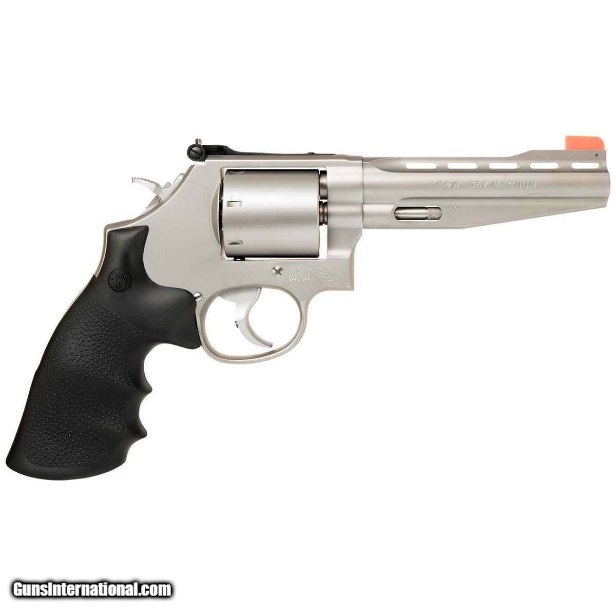 Description: Manufacturer: Smith & Wesson Model: Performance Center 686 Plus Speed Release Thumbpiece SKU: 11760 Caliber: .357 Magnum & .38 S&W Special +P Action: Single/Double Capacity: 7 Round Unfluted Cylinder Barrel Length: 5" Material: Stainless Steel Finish: Matte Silver Grips: Black Synthetic Overall Length: 10.6" Sights: Front- Interchangeable Orange, Rear- Adjustable White Outline Weight: 38.4 oz All items are factory new in box unless otherwise stated. Based on the information available to us, the above specifications describe this item to the best of our knowledge. For further information, please contact or visit the manufacturer's . SOLD |