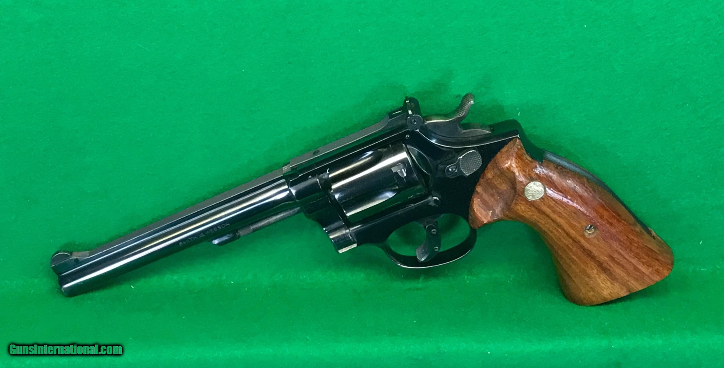 Description: S&W K-22. Modified front sight and hammer? Early five screw version with target grips and added trigger shoe. Excellent bore and timing. $598 plus $30 insured shipping. Lay a way available, no credit cards and no trades. C&R ok. SOLD Curio/Relic: Yes |