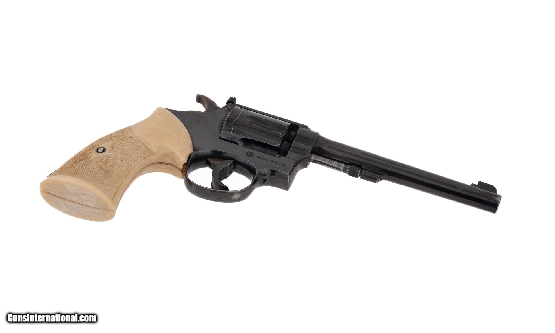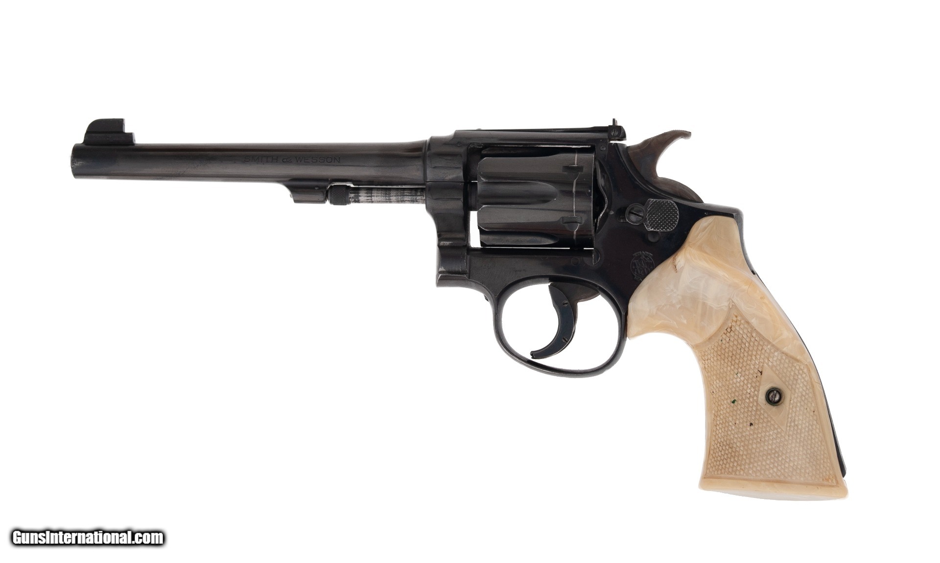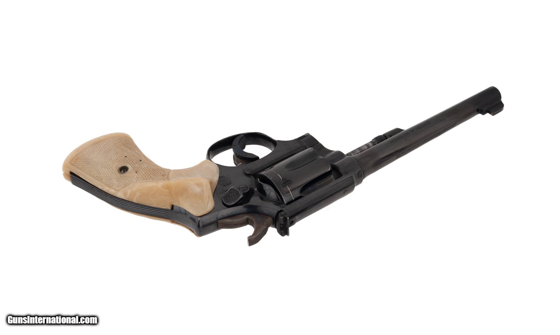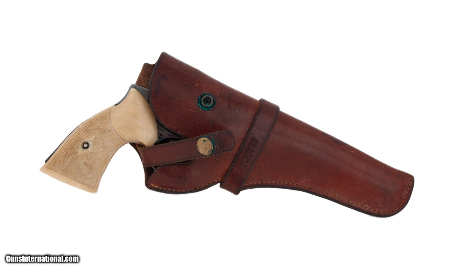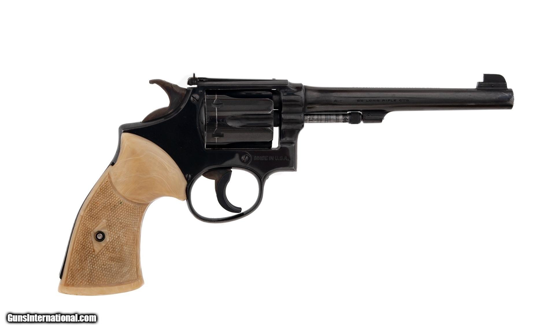 Description: Good condition with non original grips leather holster. SOLD Manufacturer: Smith & Wesson Model: K-22 Caliber Info: .22 Condition: Preowned Metal Condition: Good Barrels: 6 Action: Revolver Gauge Info: .22 Weight: 2.500000 Case: No |