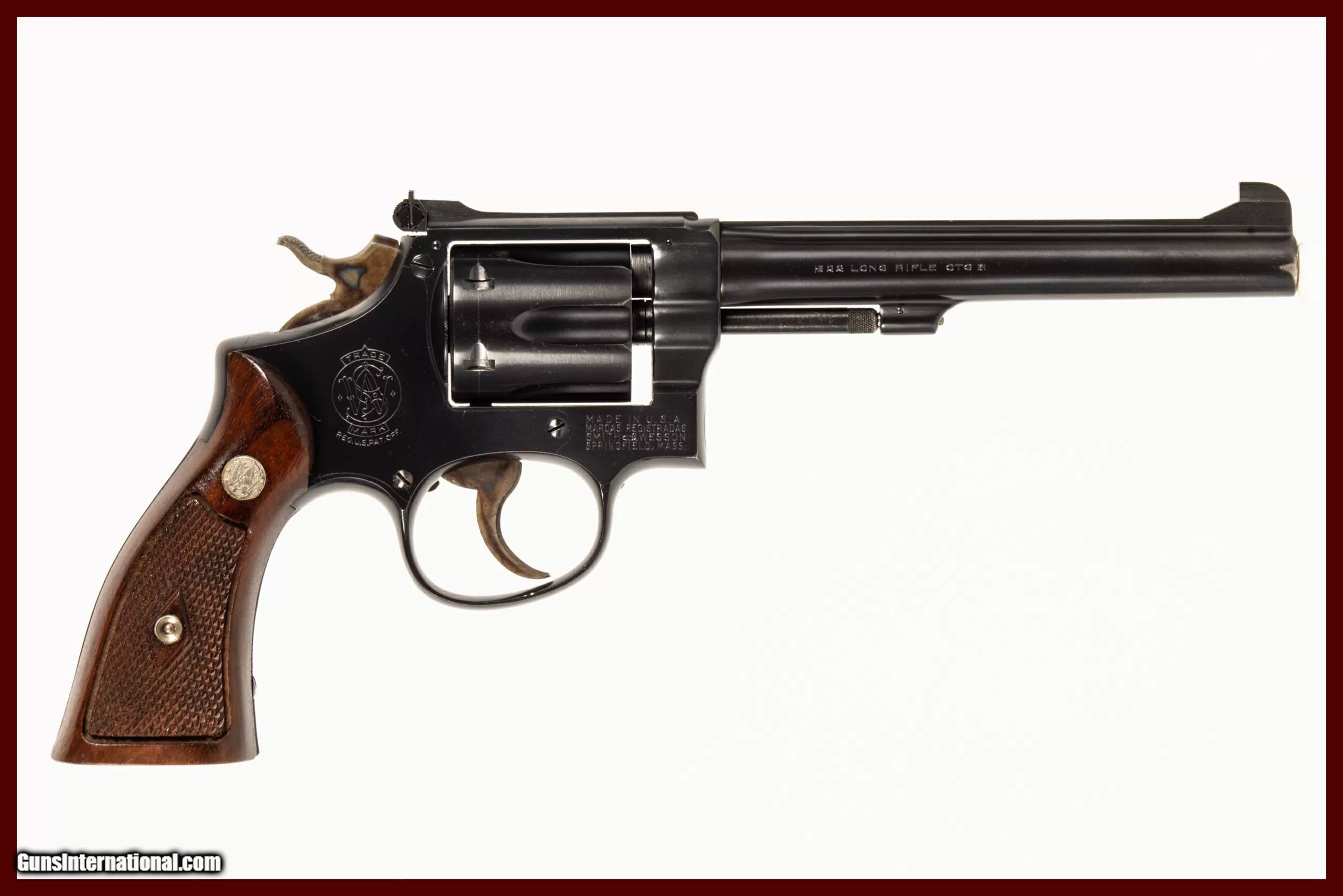 Description: Smith & Wesson model K22 5-screw, chambered in 22 long rifle. This revolver sports a 6 inch barrel and features a bright bore and sharp rifling. The NRA grading condition for this USED firearm is Very Good. Dury's Lifetime Warranty: All firearms purchased from Dury’s Gun Shop, NEW or USED, are covered by a lifetime warranty. We will repair or replace, at our discretion, any firearm purchased from Dury’s Gun Shop, Inc. for as long as it is owned by the purchaser. This warranty is not transferable. WE BUY GUNS! NO COLLECTION TOO BIG OR SMALL FOR OUR INTERNATIONAL CUSTOMERS ALL OF OUR FIREARMS CAN BE PURCHASED DIRECTLY FROM OUR DURY'S GUNS SITE ! SOLD Manufacturer: Smith & Wesson Model: K22 Caliber Info: 22 Long Rifle Barrels: 6inches |