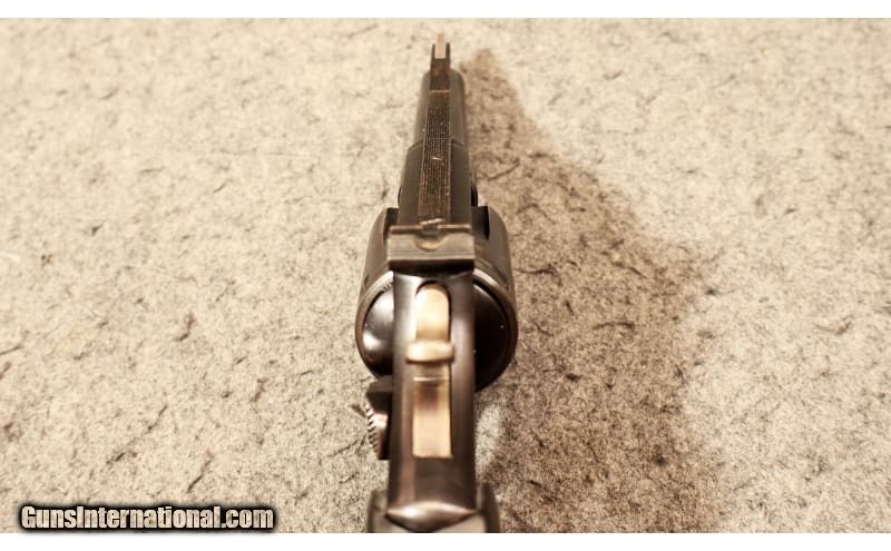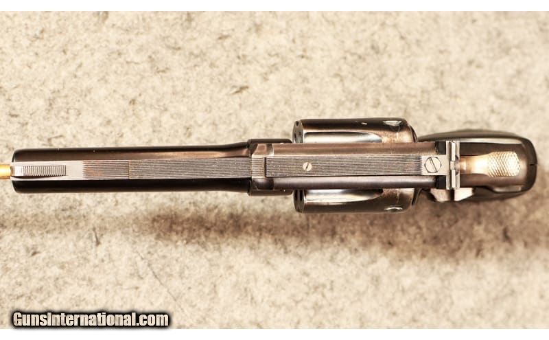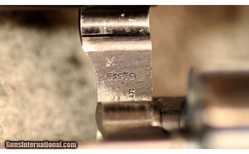 Description: For your consideration is a Smith and Wesson K-22 COMBAT MASTERPIECE "PRE-MODEL 18" in .22 LR. This double action revolver built on the square butt K Target frame with 5 screws is similar to the K-22 masterpiece except with 4 inch pinned barrel. It has a combat style 1/8 in. Baughman Quick Draw on plain ramp base front sight and micrometer click adjustable rear sight. The trigger is crisp and smooth. Mfg. Circa 1949-1957, continued thereafter as the Model 18. .22 Long Rifle SOLD Chambers: .22 LR. Metal Condition: Bluing is in ok condition. Finish is worn off on edges and near muzzle Bore Condition: Clean and shiny Barrels: 4" pinned barrel Triggers: Serrated curved trigger. Double/single action Stock Dimensions: OAL 9½ Weight: 2 lb 8 oz Sights: Adjustable rear and fixed front sight. Square notch Item Location: Wichita, KS |