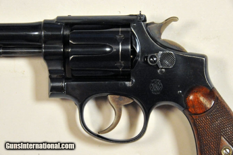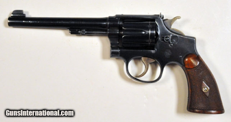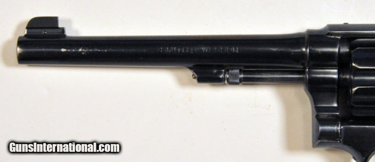 Description: #1834 Smith & Wesson K22 Outdoorsman Ser. No. 654859. .22 LR- 6" barrel. A nice early Smith. SOLD |