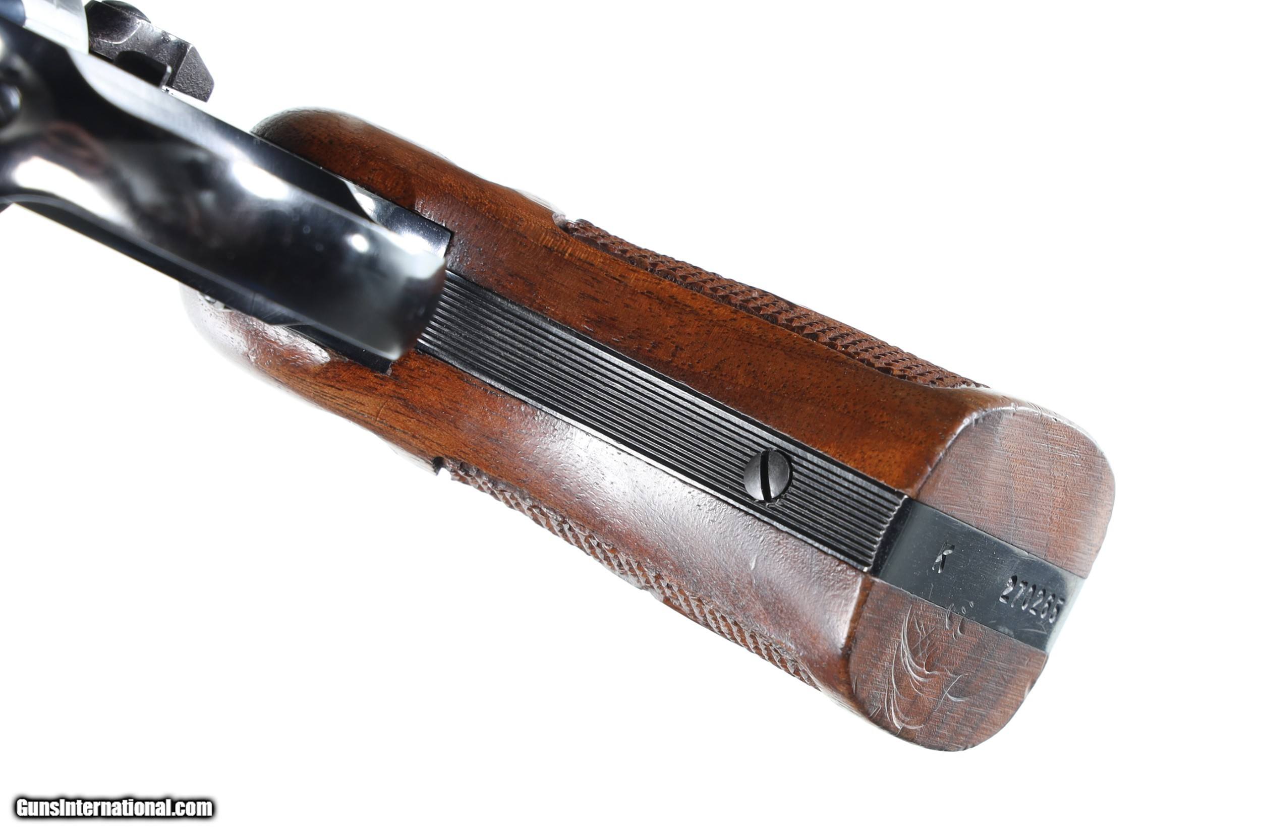 Description: Near excellent overall condition with slight muzzle wear. Manufactured 1958. • Free Shipping, No Credit Card Fees. • Lay-a-way available for this firearm. • 1/3 Down, a 1/3 in 30 Days 1/3 in 60 Days. SOLD Curio/Relic: Yes Manufacturer: Smith & Wesson Model: K-22 Masterpiece Serial Number: K270265 Barrel Length: 6 |