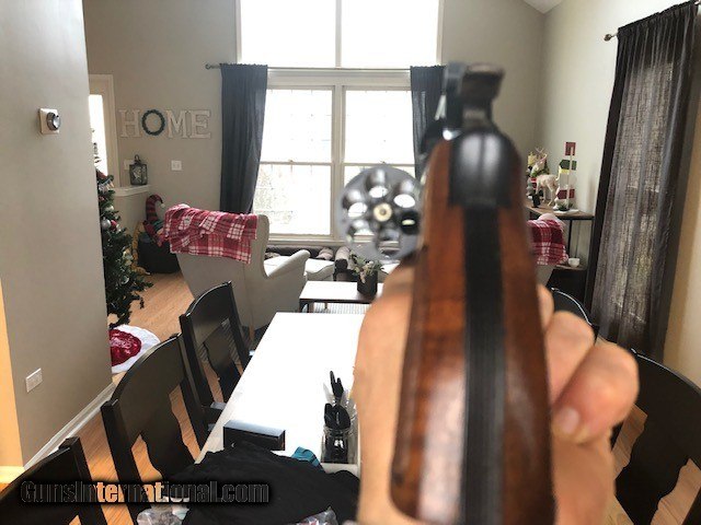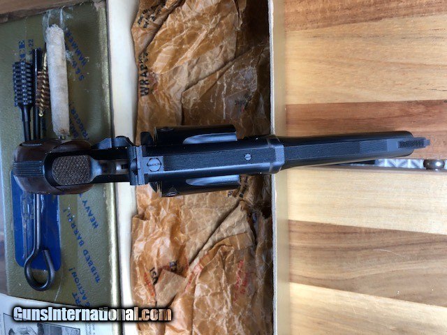 Description: Up for your consideration is a superb , high condition , Smith-Wesson K-38 pre - model 15 , 4" Barrel , .38 Special , 1952 , serial , # K-169025 . Bluing is excellant +++, Grips w/ matching serial # are excellant +++, Serial # is also on the inner crane , face of rear cylinder and bottom of butt stock on the frame . There is no wear on the crown or high edges , this Smith has seen no use except factory testing in my opinion .This includes the original Gold Box , the NOX-Rust vapor wrapper , the factory black knurled sight adjustment tool , bore mop , bore brush , bore cleaning rod and the factory original Helpful Hints owners brochure . This is the complete 1952 factory package . Collector Quality at its finest .Payment : Postal Money order , Bank Check , Personal check . Ships from my FFL to your FFL only . No Sales to Kalifornia or restricted states . . $ 1350.00 shipped w/ins , SemperFi , JJ SOLD SOLD SOLD SOLD |