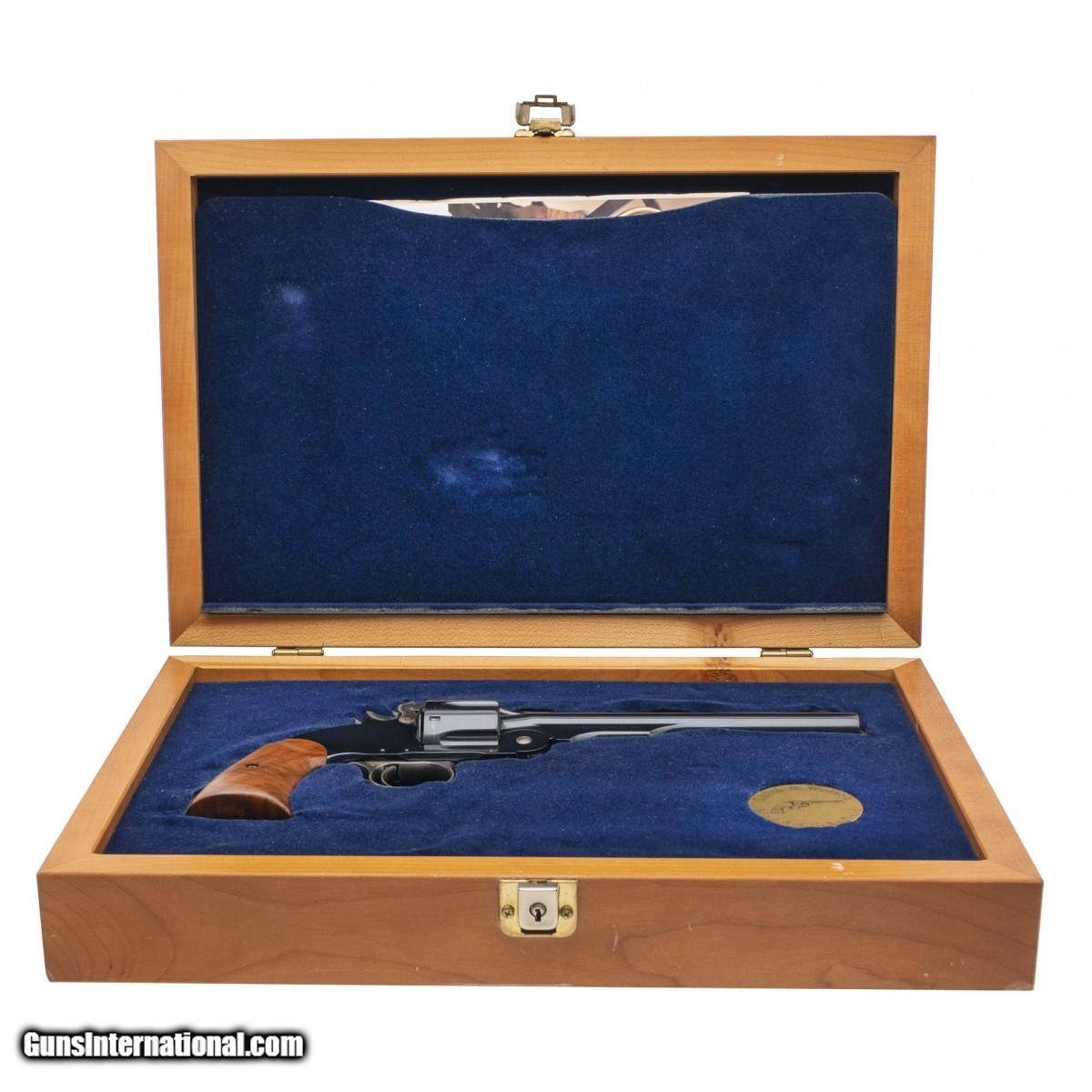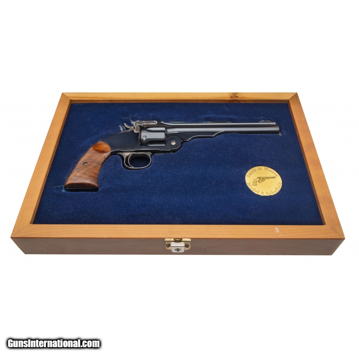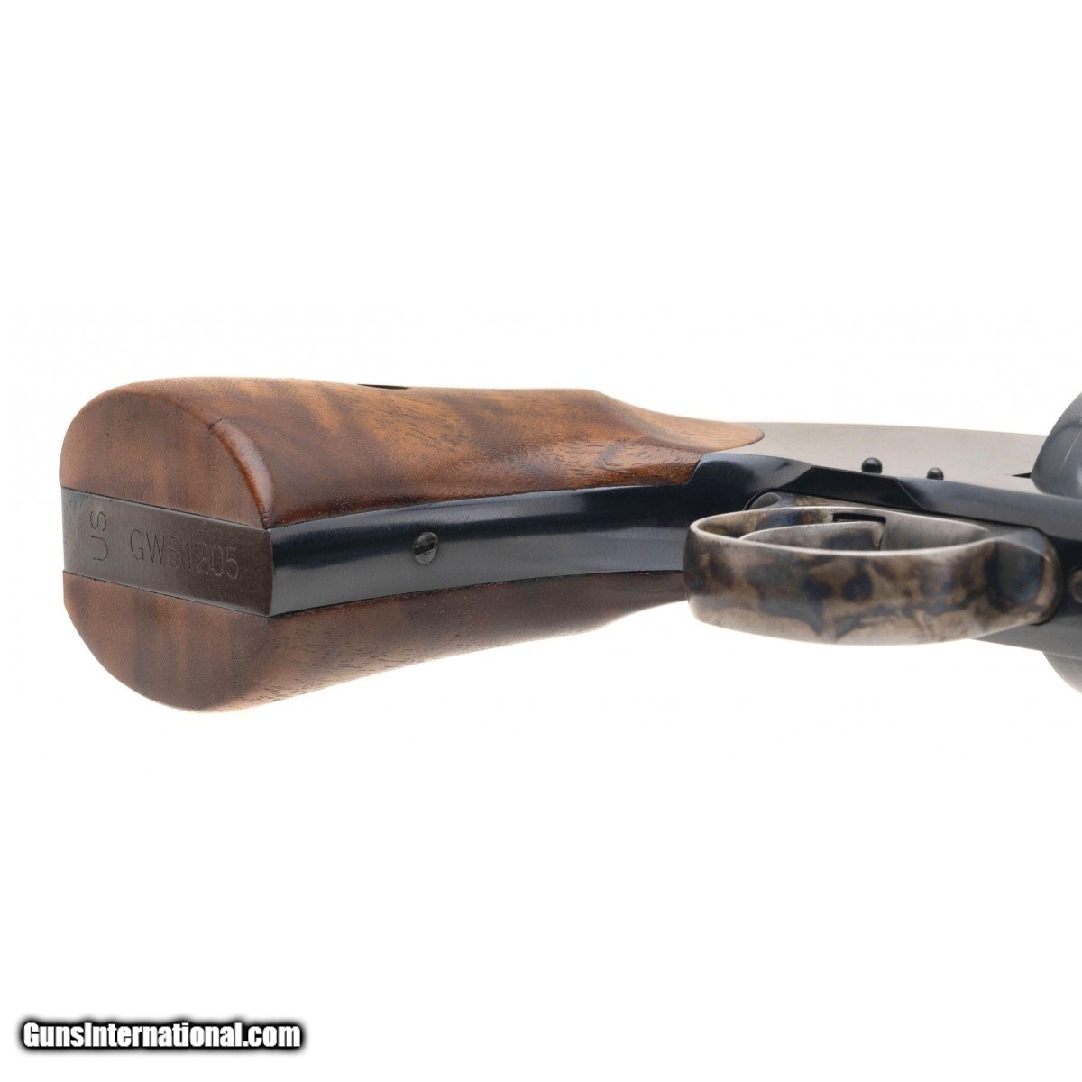Description: " SN:GWS1205. Made in 2000, .45 S&W with a 7"" barrel. Bore is excellent. Schofield revolver made by Performance Center. Case colored trigger and trigger guard is excellent. Has all original blued barrel and frame. Overall in excellent condition. Comes with beautiful oak display case lined with blue velvet and all paperwork. SOLD |