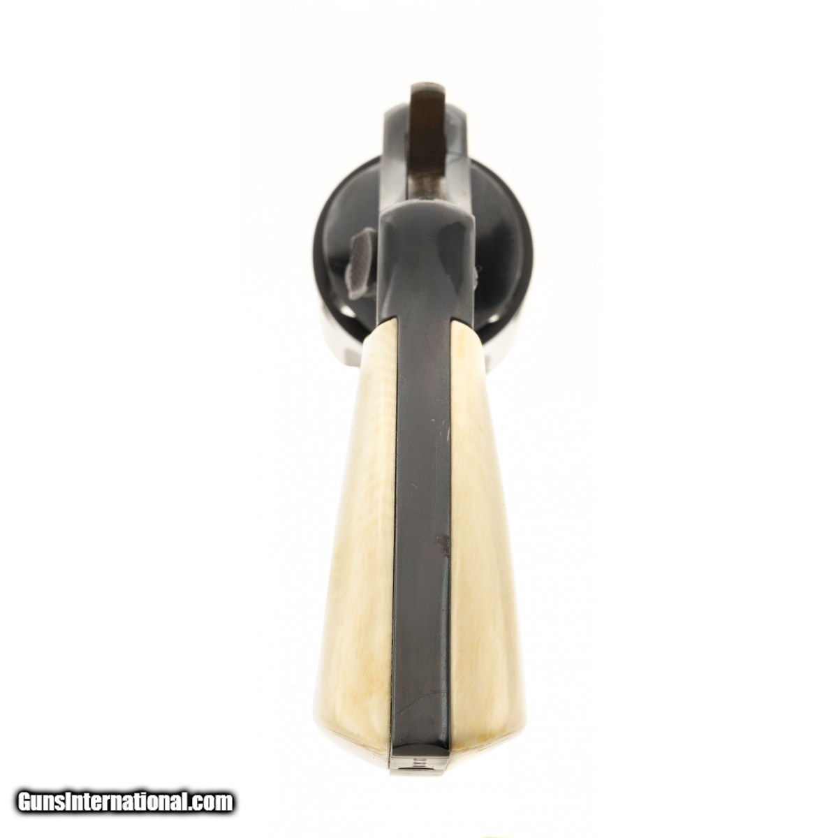 Description: " Pre-War revolver manufactured approximately 1938-1940. Metal has been refinished and looks great. Action works perfectly. Grips are ivory with Smith & Wesson medallions. Lanyard hole has been filled. Barrel is 5.5"". Bore has strong rifling with minor frosting. A good looking Pre-War Hand Ejector in a poplar caliber. SOLD Curio/Relic: Yes |