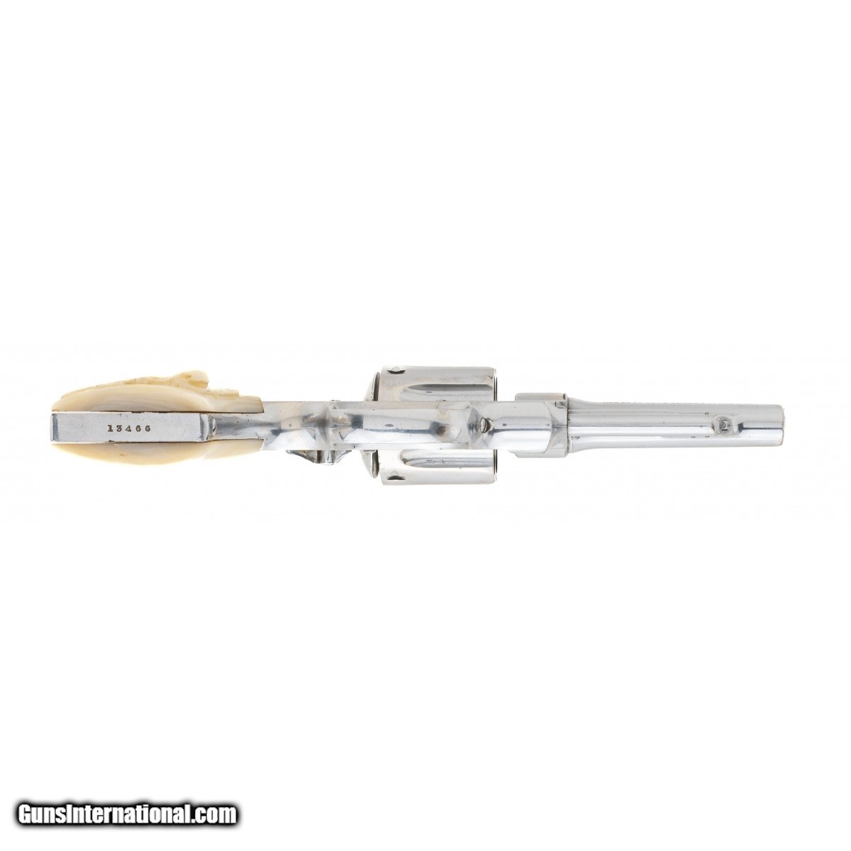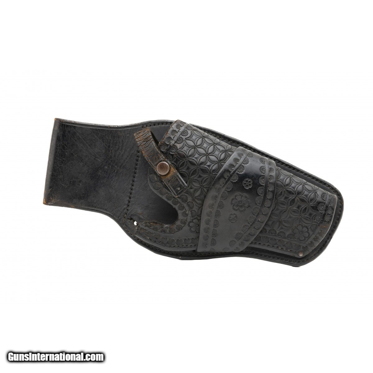 Description: " These ""Triple Lock"" model Hand Ejectors were made from 1908-1915. The factory letter states this 4"" nickel plated model was shipped to Collum & Boren in Dallas, TX on April 24, 1917. The bore is fair with strong rifling and shallow pitting. The nickel has been expertly refinished at some point. The hammer and trigger have some light straw color. Has excellent Pearl Texas steer head grips with ruby eyes. Overall a fine example of a Collum & Boren rig. Comes with factory letter and hand-tooled western style holster. SOLD Curio/Relic: Yes |