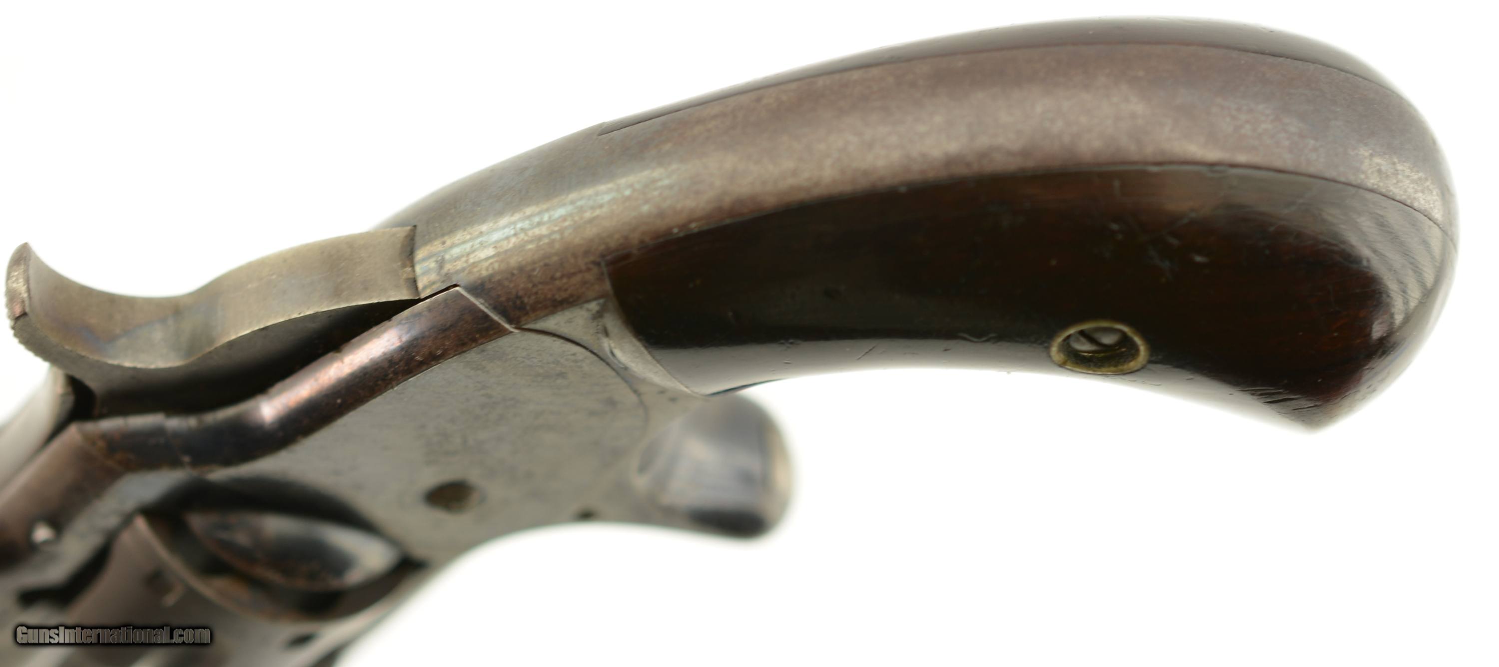 Description: Serial #46849, .22 RF, 3 3/16" barrel with a fine, bright bore that has some mild freckling within the grooves in spots. This is a nice little revolver that has retained 50-60% of the original blue and the balance turned to a smooth plum-brown patina with silvering along the high and exposed edges. The cylinder has a moderate turn-ring, with some mild pinprick pitting on the face, and matching assembly numbers are present on the frame, barrel , and cylinder ("8F"). The rosewood grips, numbered to the gun on the interior, are in very good-fine shape, with only some minor surface marks and small bruises on either panel. The barrel lock-up is still fairly tight with some lateral play in the barrel, and the action functions flawlessly. This is a very good plus example of a 3rd Issue No. 1 S&W, and would make a nice addition to any collection. Antique SOLD Antique: Yes Manufacturer: S&W Model: No. 1 Serial Number: 46849 Caliber Info: .22 Gauge Info: .22 |