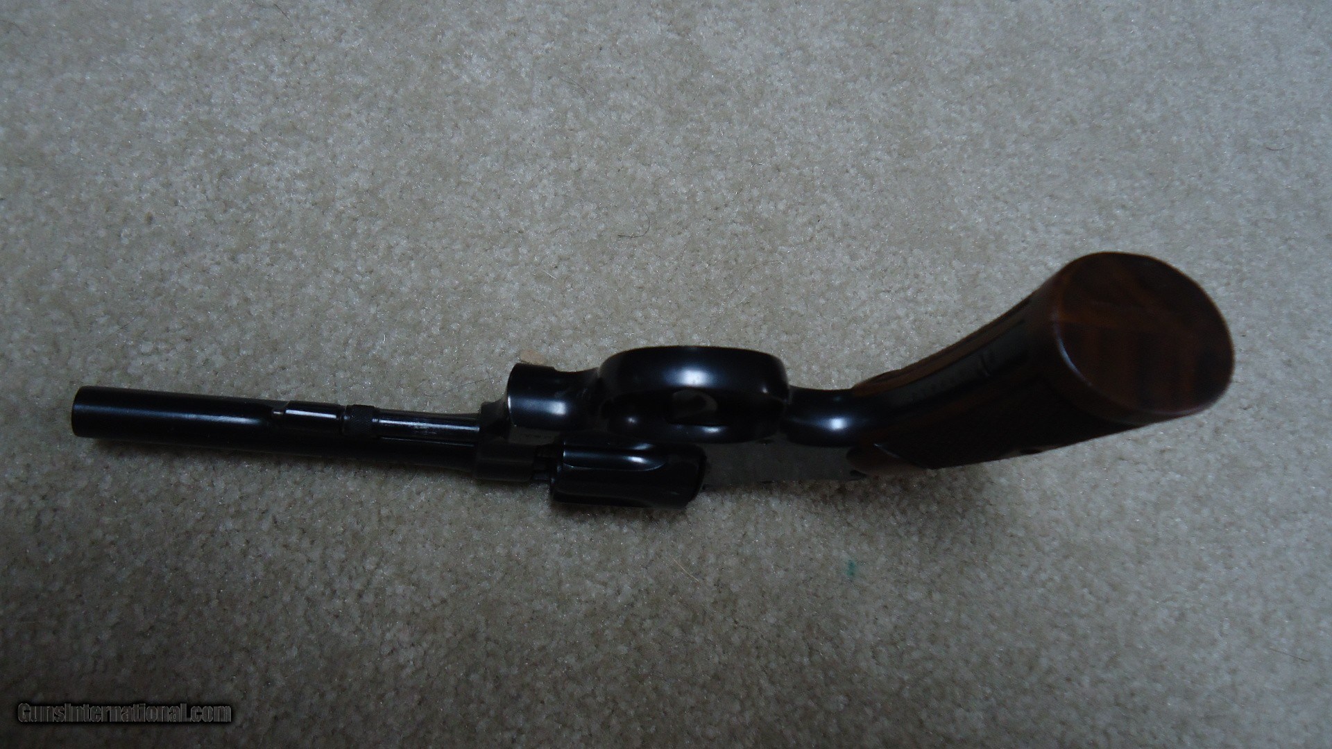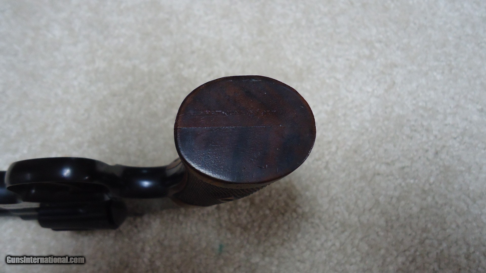 Description: EXCELLENT PRE-WAR S&W .32 REGULATION POLICE, 4 1/4" BARREL, #479XXX, MADE 1917-1942. The Regulation Police is quickly distinguishable from the other .32 Hand Ejectors by the back strap and grips. The back strap actually has an undercut where the oversize square butt grips fit and extend over the butt of the revolver. This makes for a firmer handhold than on the other models with small standard size grips that fit flush with the butt. These were only made from 1917-1942 and are fairly difficult to find, especially in this condition. The grips are excellent and sharply checkered with the correct Patented 1917 stamping on the butt. There is one "flat" wear spot on the left bottom grip panel probably from resting in a drawer that looks much worse in the photo than in person as the light reflected off the flat area. There is fine case colors remaining on the hammer and trigger. All markings are sharp and clear including the S&W monogram on the frame, patent dates etc. on the barrel top and patent stamping on the rear of the hammer. Nearly all the bright blue remains with only the most minor of edge wear and a small spot of blue/brown below the cylinder on the left side. that is hardly worth mentioning. Action is tight, bore is perfect and the blue is fine on the face of the cylinder indicating that this revolver was rarely if ever shot. Superb hand fitted and tuned pre-war S&W quality that would be impossible to provide today. SOLD Curio/Relic: Yes Handgun Caliber: .32 S&W Long (.32 Colt New Police) Manufacturer: SMITH & WESSON Model: REGULATION POLICE Serial Number: 479XXX Barrel Length: 4 1/4 Condition: EXCELLENT Bore Condition: EXCELLENT |