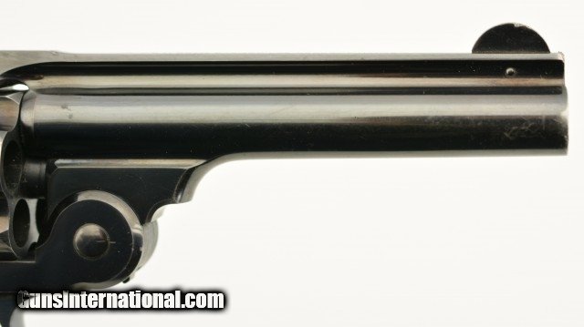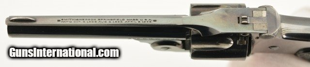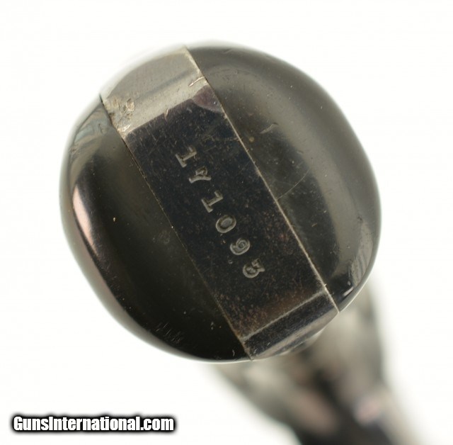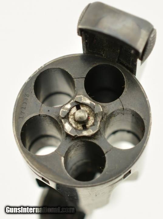 Description: Serial #171093, .38 S&W, 4" barrel with an excellent, bright bore. This is a handsome revolver that has matching numbers on the frame, barrel, and latch; while the metal retains 95-97% of the original bright blue finish that has silvered at the muzzle, and on some spots around the rear of the cylinder. The trigger retains nearly all of the original color case-hardening as well. The hard rubber grips are numbered to the gun on the interior, and are in excellent shape with very few handling marks and almost no flattening of the points. The lock-up is tight, with no lateral play in the barrel, and the action functions flawlessly. This is a little-used "Lemon Squeezer" and would make a great, high condition example for a collection. FFL or C&R SOLD Curio/Relic: Yes |
