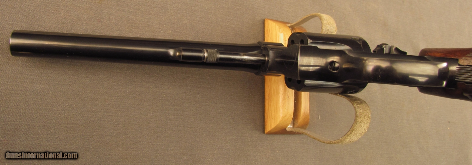 Description: Serial #686475, .22 LR, 6” barrel with an excellent, bright bore. This handsome pinned and recessed revolver has matching numbers on the frame, cylinder, extractor, yoke, and barrel with the metal retaining 98-99% of the original blue with only some faint traces of silvering at the muzzle and a very mild turn-ring on the cylinder. The hammer and trigger retain a like amount of the original color case-hardening with touches of minor gray fading along the projecting edges and contact points, and the original Call bead front sight is still present. The walnut diamond-center S&W medallion grips are numbered to the gun on the interior and are in nearly excellent condition with very little wear and only a few minor handling marks and blemishes, as well they have two minor lots cut at the top of the inside that look to be for a grip adapter and a barely detectable repaired chip in the same area. The revolver is accompanied by a 2015 dated S&W factory letter that lists a ship date of April 29, 1940, to W.H. Hoegee, 138 Main St., Los Angeles, CA (the William H. Hoegee company was a large and well established sporting goods and outfitter at the time). With only a little over 1000 of these built this is a simply superb 5-screw K-22 and would make a fabulous addition to any collection. FFL or C&R SOLD Manufacturer: S&W Model: K22 Serial Number: 686475 Caliber Info: .22LR Gauge Info: .22LR |