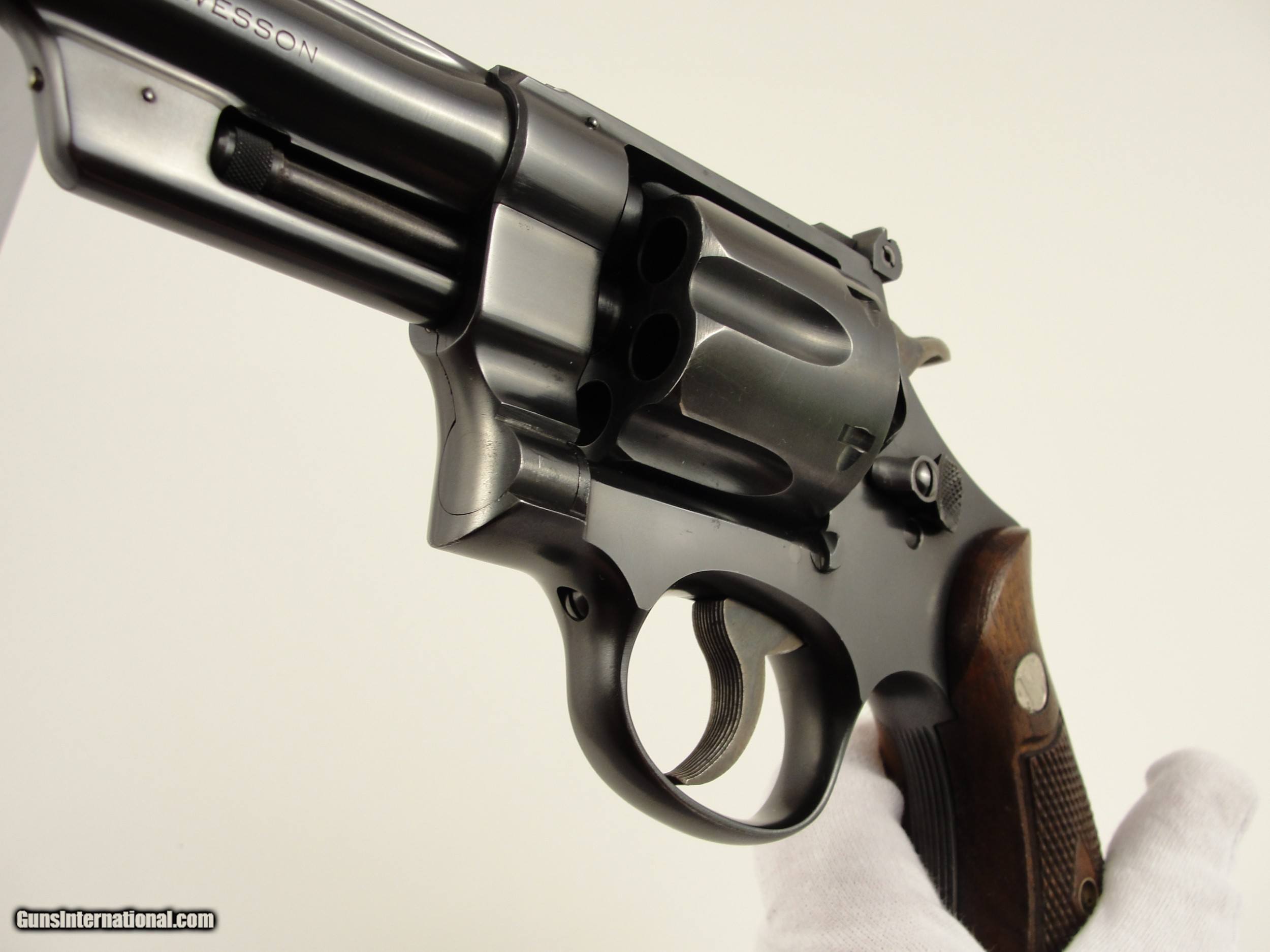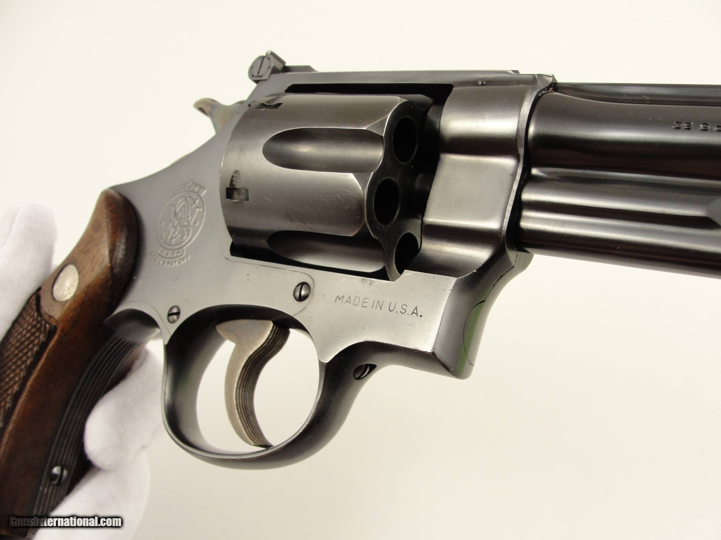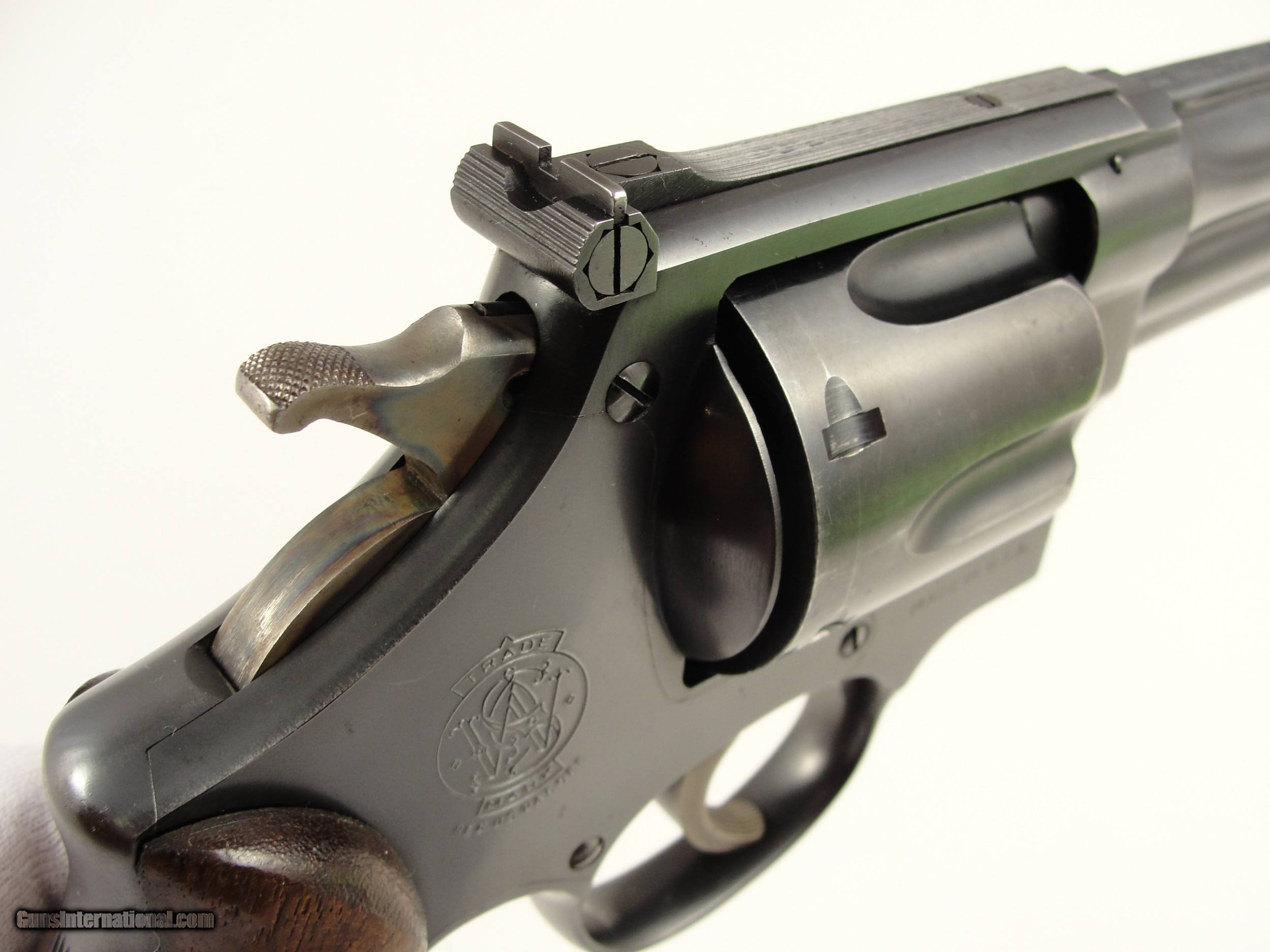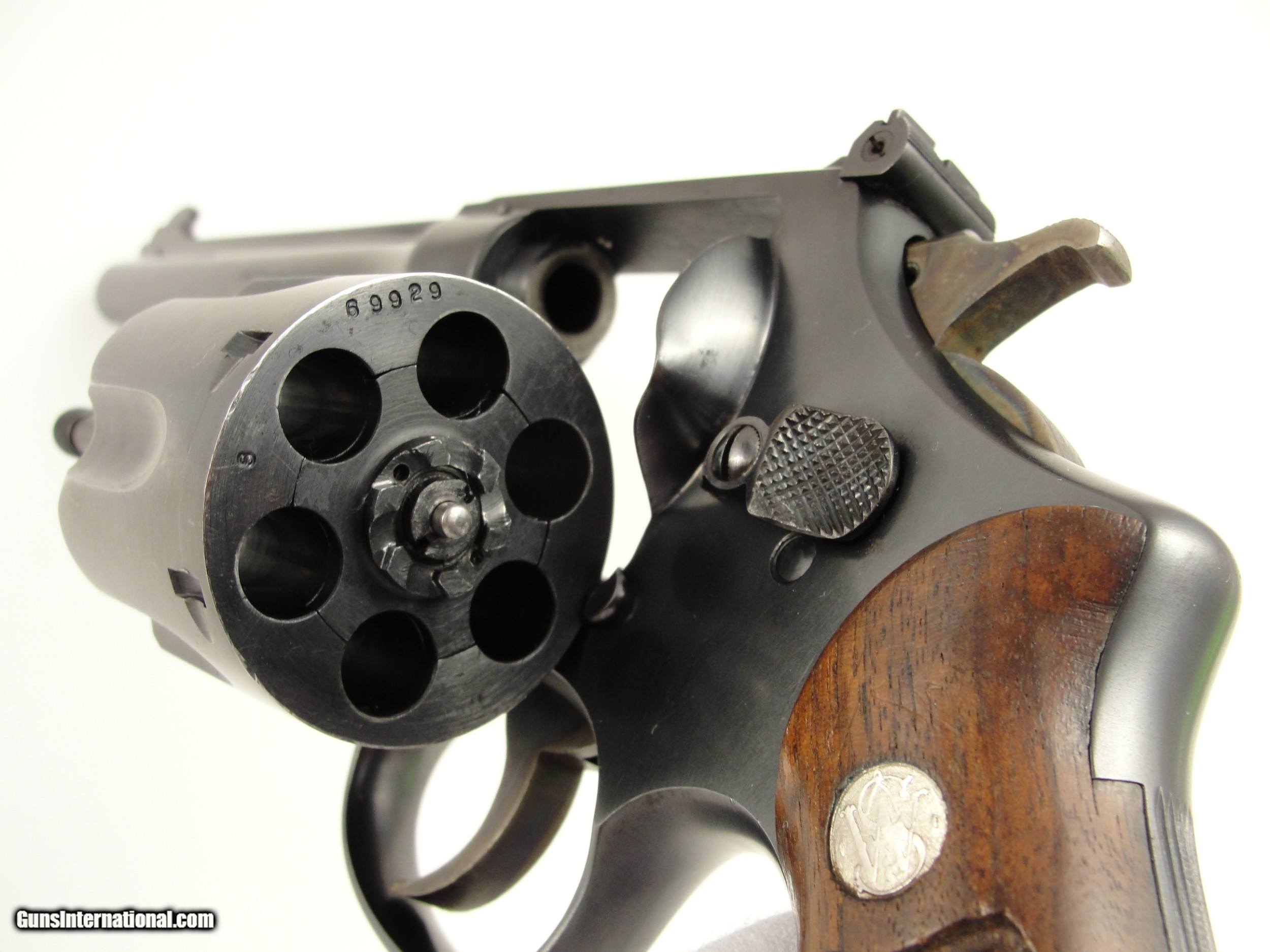Description: RARE 1947 S&W .38-44 Outdoorsman Postwar-Transitional LERK 6.5'' with Original matching grips. 1 of Only 2326 Made. Serial numbermatching extractor rod housing, cylinder rear face, grip frame and N-Frame Magna American Walnut grips/stocks. Smith & Wesson made postwar improvements to the Outdoorsman model, 6 ½” pinned barrel with shrouded extractor, Patridge front sight and Micrometer click fully adjustable rear sight. Manufactured in 1947 as Smith & Wesson reintroduced the .38/44 Outdoorsman Postwar-Transitional with an “S” serial number prefix beginning at approximately S62496 and manufactured this variation from 1946 to 1949. The Smith & Wesson Original bluing has very light handling/shooting marks showing little signs of use. By Smith & Wesson design the Factory blue finish has a flat appearance. The frame and barrel roll stamps are in near perfect condition, the S&W monogram on the side plate is still very strong. This Smith & Wesson has the single line “Made in U.S.A.” frame stamp. This Outdoorsman has the Early Pre-War “Large Ejector Rod Knob”: the “LERK” among collectors. The .38/44 Outdoorsman was originally built for a High-Powered .38 Special cartridge, also known as the “.38 Super Police”. Both sides of the 6 round fluted cylinder and forcing cone area are Exceptionally clean, the mechanics are Excellent and it locks up tight. The bore is bright and rifling is sharp. Please view the photos here for the purpose of evaluating the condition for yourself. This item qualifies as a C&R. Unlike all the s, at this point, I do not collect any taxes. Shipping & insurance by FedEx is $45 to lower 48 states. *As this is a C&R, I am opening it up to buyers from California who utilize an 01FFL who is receptive to receiving it. All such bids will acknowledge to assume any additional transfer/shipping costs on my end. Buyer is responsible for knowing their own local and state laws and whether or not you are prohibited from taking possession of, or owning this firearm. By participating, you are attesting to being of at least 21 years of age. ***The purchaser assumes all risks and should have a qualified Gunsmith evaluate the firearm before attempting to shoot it. *** Please arrange for payment to be sent within 3 days of committing to purchase. Payment must be by bank certified (cashiers) check or Postal Money Order. Shipping & insurance by FedEx is $45 to lower 48 states. Shipping to AK or HI will have additional costs for which buyer is responsible. I will need a copy of an FFL dealer license or C&R with copy of Drivers License to ship the gun. There is a 3 day, no-shoot, no disassembly inspection period and the buyer is responsible for cost of shipping both ways if returned. If your FFL dealer will not accept shipment from an individual, I will need an additional $55 to ship through my local FFL SOLD Curio/Relic: Yes Manufacturer: Smith & Wesson Model: Outdoorsman Transitional |