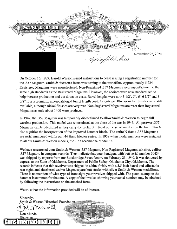 RARE! SMITH & WESSON NON-REGISTERED 357 MAGNUM MFG 1940
