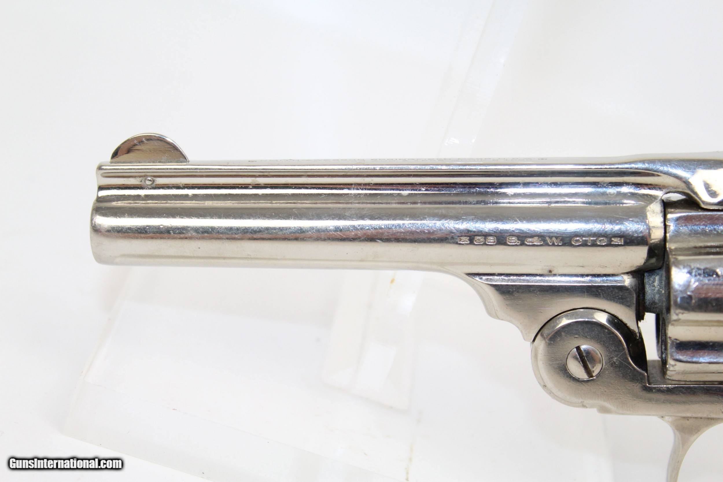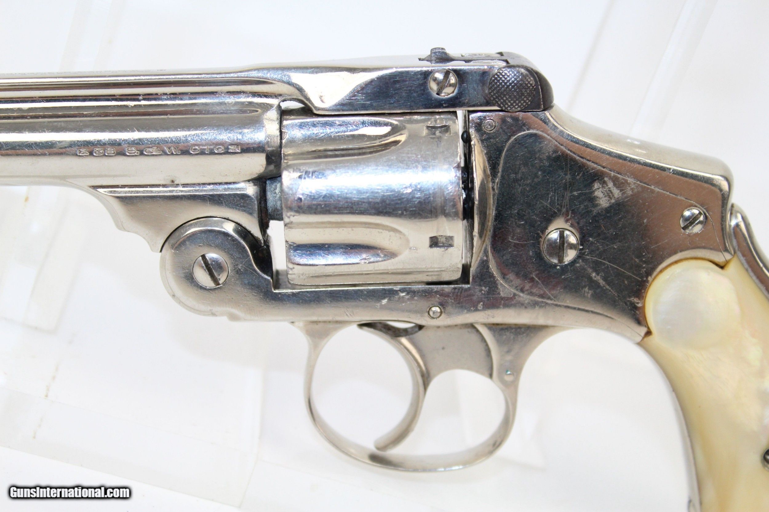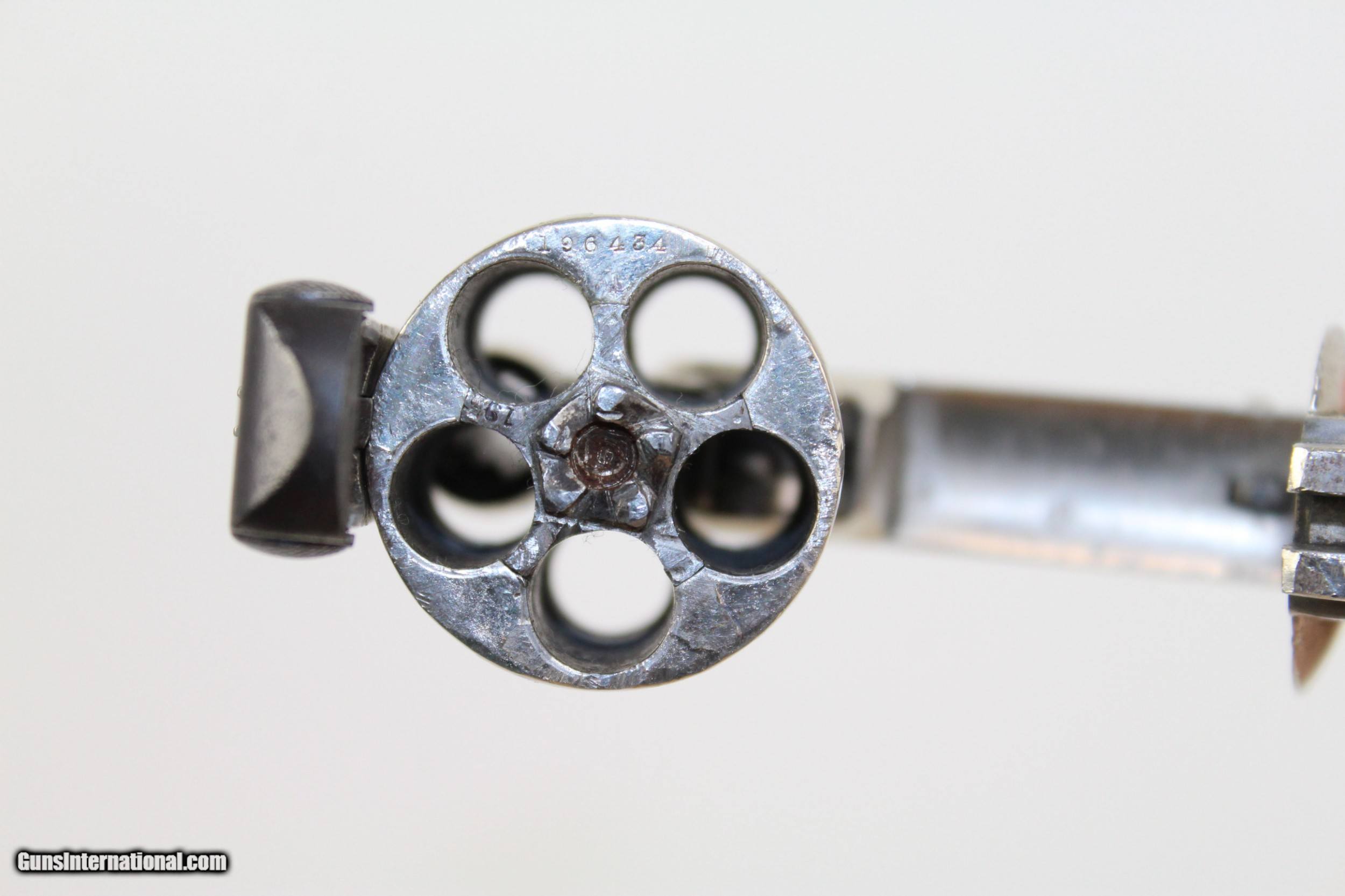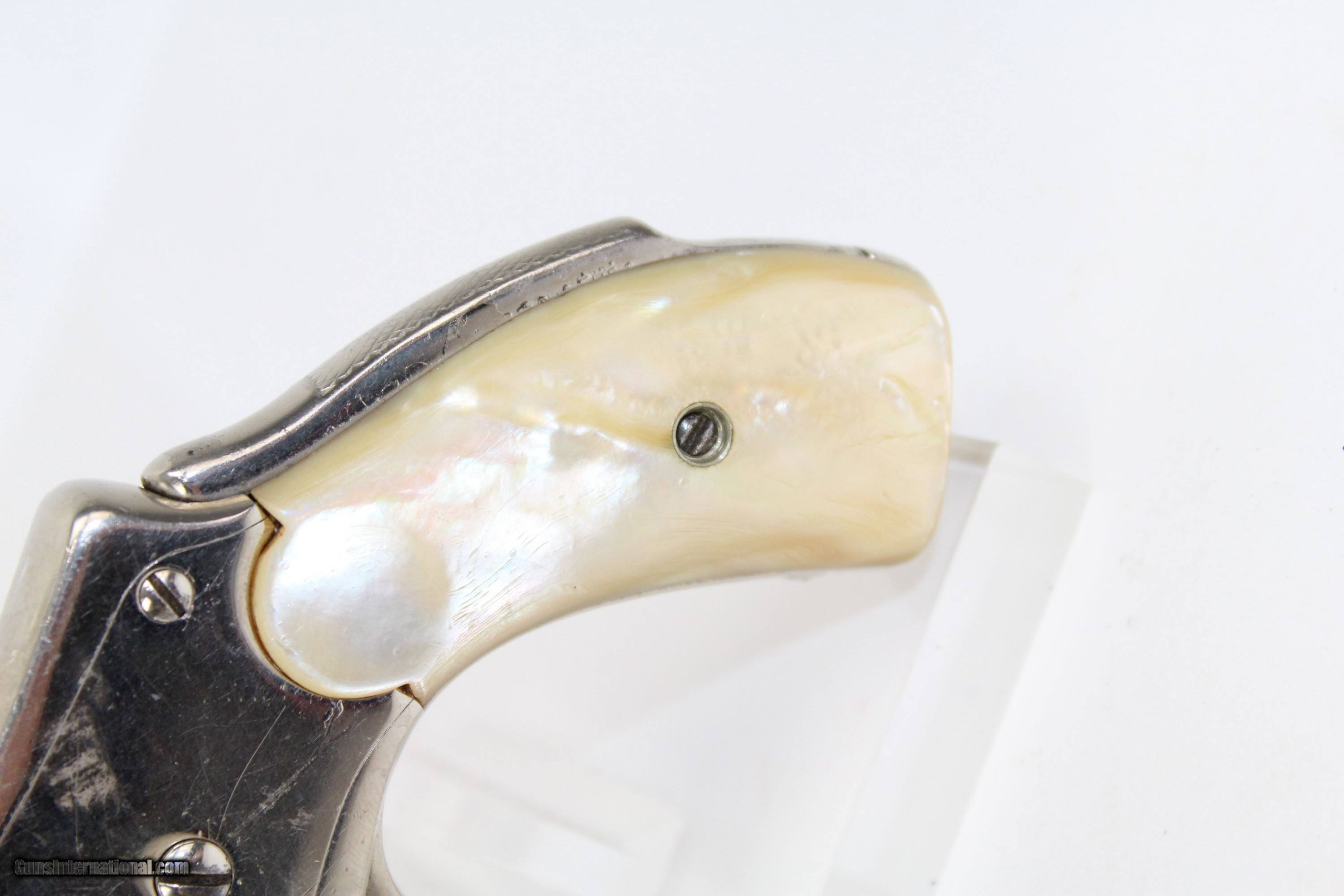 Description: S&W .38 Safety Hammerless 4th Model Revolver Featuring Beautiful Pearl Grips Here we present a Smith & Wesson Safety Hammerless 4th Model Revolver, manufactured circa 1907 in Springfield, Massachusetts. They were also known as the “New Departure” or the “Lemon Squeezer”, the latter due to the safety bar on the backstrap. This little revolver holds 5 shots of .38 S&W. It was designed to meet the defensive needs of citizens and law enforcement in the late 19th Century. This is a top break design with an automatic ejector, hammerless design and grip safety. These features made it great for pocket carry. This S&W Revolver features a great nickel finish with pearl grips. The left side of the barrel is marked “.38 S&W CTG”. The top of the barrel is marked ‘SMITH&WESSON SPRINGFIELD, MASS U.S.A./PAT’D OCT.2.1880, AUG.4.1885, APRIL.9.1889”. The overall condition is very good. The revolver was nickel plated again at some point with 98% remaining. The markings are clear and legible. The serial numbers match. The pearl grips are in very good shape. The bore is in good shape. The action is excellent. A nice example of one of Smith & Wesson’s most recognizable revolvers! This firearm is classified as a Curio & Relic. Barrel is 4 inches. Caliber: .38 S&W Overall condition as seen in photos. Very Fast. Very Safe. FREE SHIPPING. Will need to be sent to your local FFL or C&R licensee. This firearm is classified as a Curio & Relic. Guaranteed AUTHENTIC & Includes CERTIFICATE OF AUTHENTICITY. ancestryguns $475 #7304 SOLD Curio/Relic: Yes |
