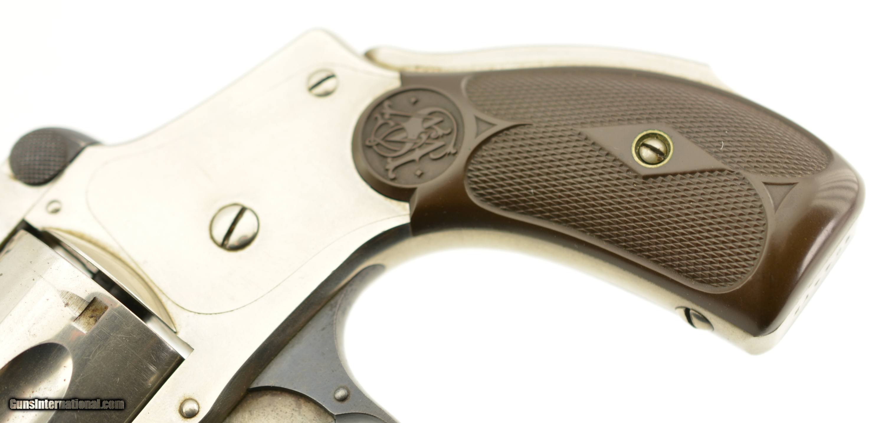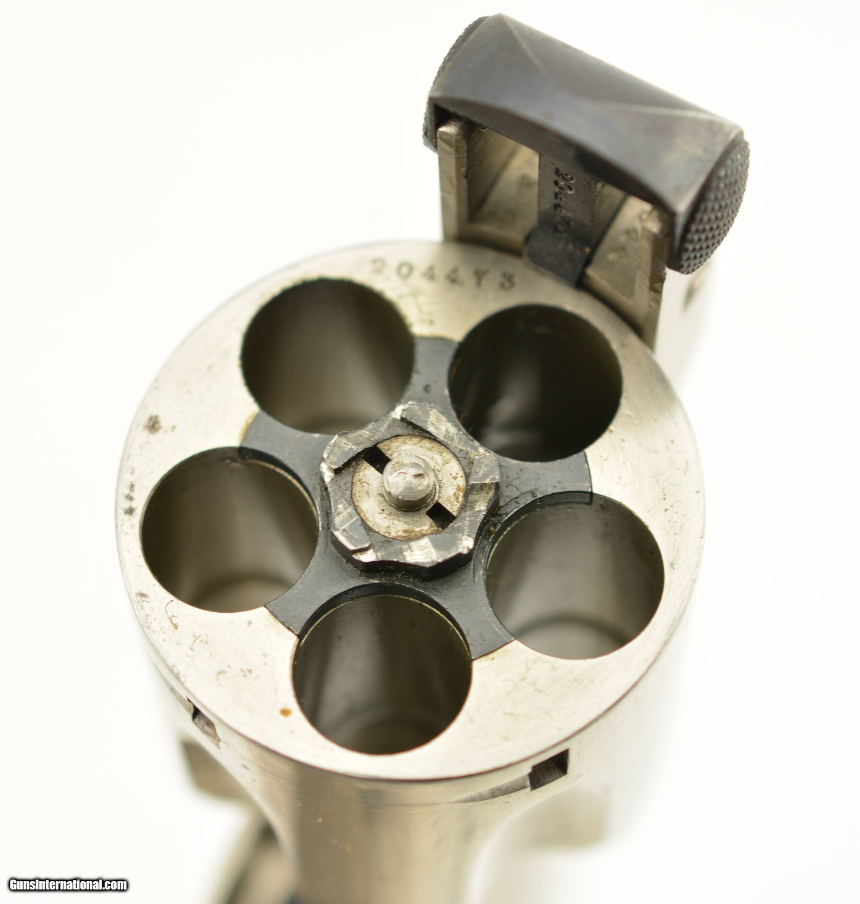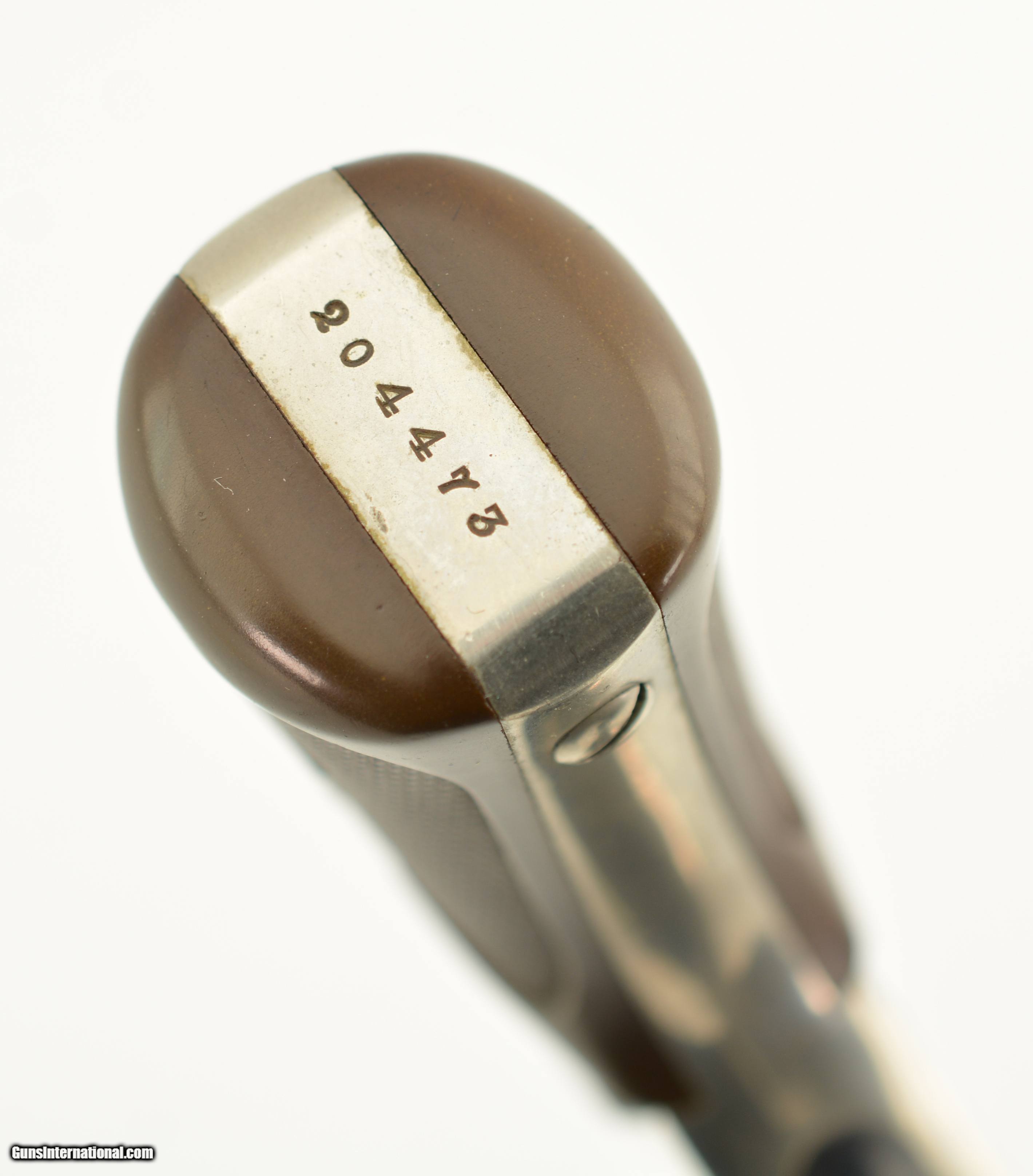 Description: Serial #204473, .38 S&W, 3 1/4" barrel with an excellent, bright bore. This is a ca. 1905-made revolver that has matching numbers on the frame, barrel, cylinder, latch, and extractor. The metal retains 97-98% of the original nickel-plated finish, which has some mild freckling starting to form in a few spots, and a mild turn-ring on the rear of the cylinder. The trigger guard and latch retain a commensurate amount of the original blue finish, and the trigger has some muted original color case-hardening remaining. The hard rubber grips are original and numbered to the gun on the interior. Both panels are in fine shape with few handling marks and very little flattening of the points, and have faded to a pleasant dark brown color over time. The lock-up is tight, and the action functions flawlessly. This is a fine-near excellent "Lemon Squeezer" overall, and would make a great addition to any collection. FFL or C&R SOLD Curio/Relic: Yes Manufacturer: S&W Model: Safety Hammerless Serial Number: 204473 Caliber Info: .38 S&W Gauge Info: .38 S&W |