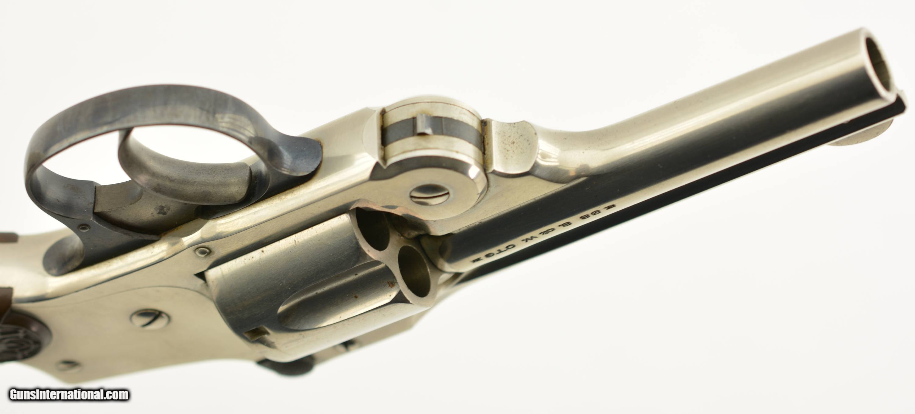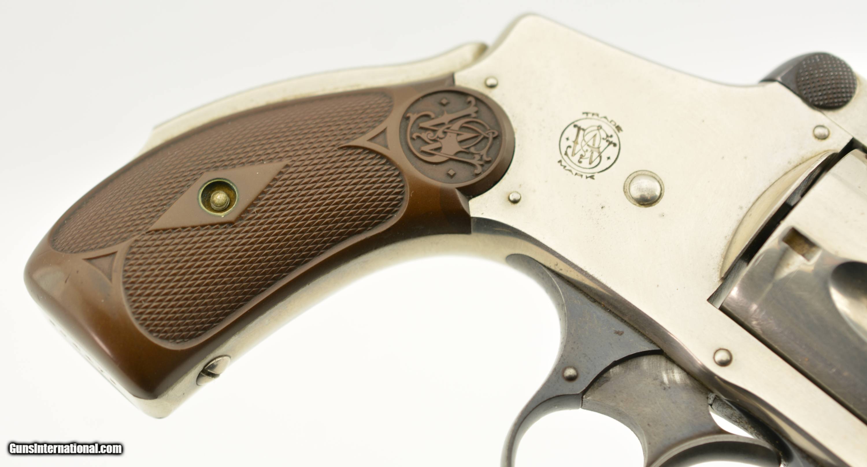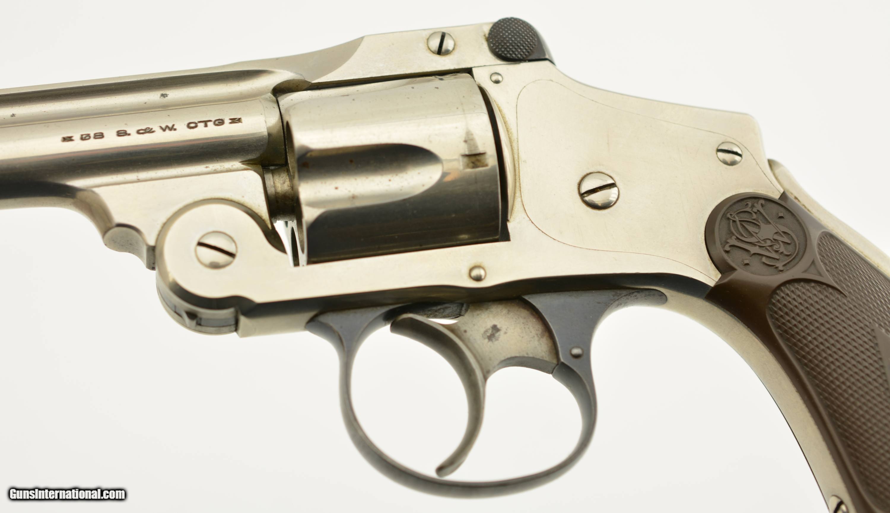 Description: Serial #204473, .38 S&W, 3 1/4" barrel with an excellent, bright bore. This is a ca. 1905-made revolver that has matching numbers on the frame, barrel, cylinder, latch, and extractor. The metal retains 97-98% of the original nickel-plated finish, which has some mild freckling starting to form in a few spots, and a mild turn-ring on the rear of the cylinder. The trigger guard and latch retain a commensurate amount of the original blue finish, and the trigger has some muted original color case-hardening remaining. The hard rubber grips are original and numbered to the gun on the interior. Both panels are in fine shape with few handling marks and very little flattening of the points, and have faded to a pleasant dark brown color over time. The lock-up is tight, and the action functions flawlessly. This is a fine-near excellent "Lemon Squeezer" overall, and would make a great addition to any collection. FFL or C&R SOLD Curio/Relic: Yes Manufacturer: S&W Model: Safety Hammerless Serial Number: 204473 Caliber Info: .38 S&W Gauge Info: .38 S&W |
