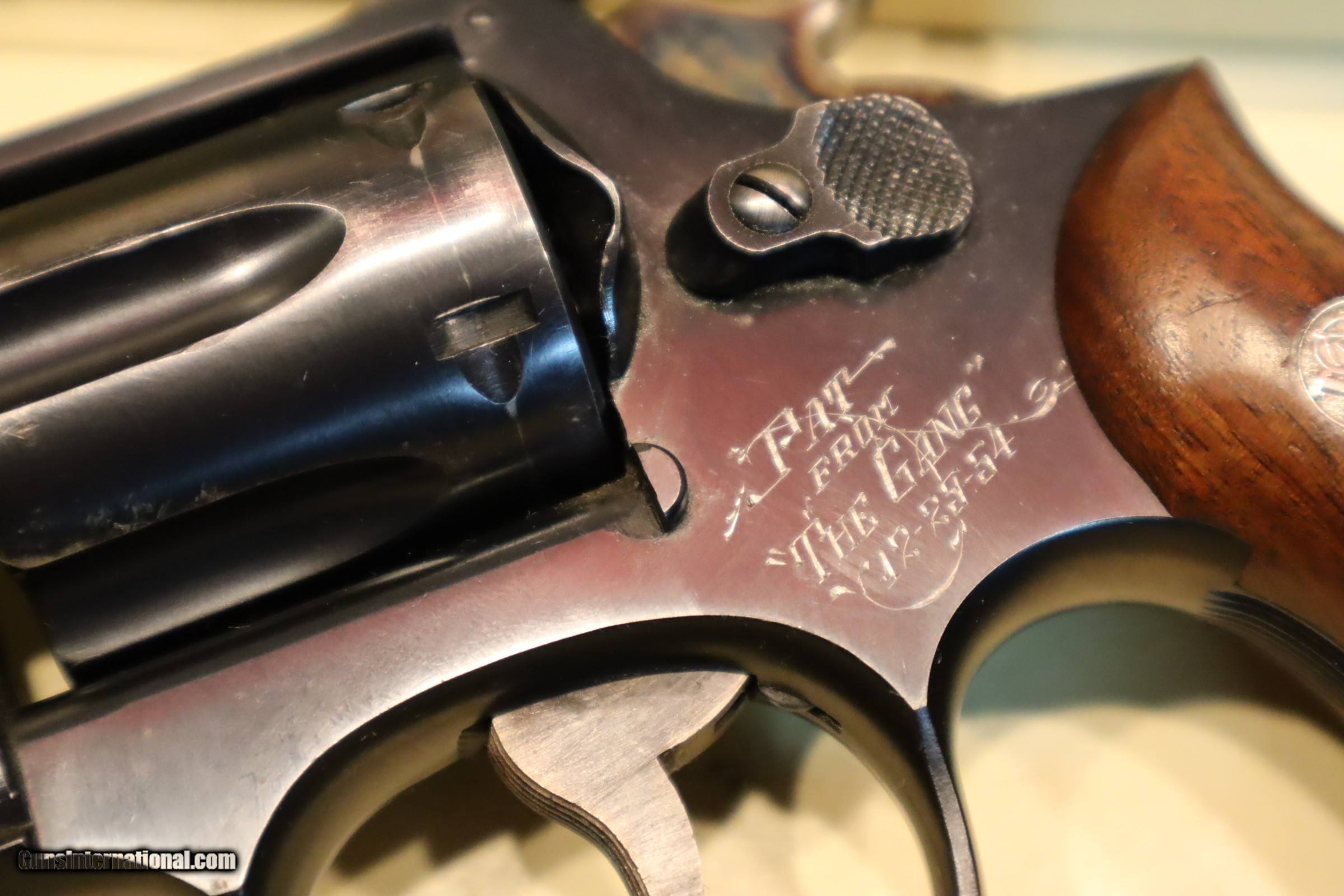 Description: S+W K-22 Masterpiece 22LR 6" barrel,engraved inscription "Pat from the gang 12-25-54"serial #K203354,with box,papers and screwdriver,95% bluing with a few marks,diamond checkered grips,Christmas gift from 1954! GUN COLLECTIONS WANTED FOR CASH! We buy, sell, consign and trade new and used firearms.We will pay finders fees and travel for large collections. This is our 46th year in business. We offer 90 day layaways with 20% down. No return on layaways. Firearms will need to be transferred through a FFL dealer. Prices reflect a cash discount. There will be 3% added to credit card sales. We trade for gold and silver. THANK YOU! SOLD |