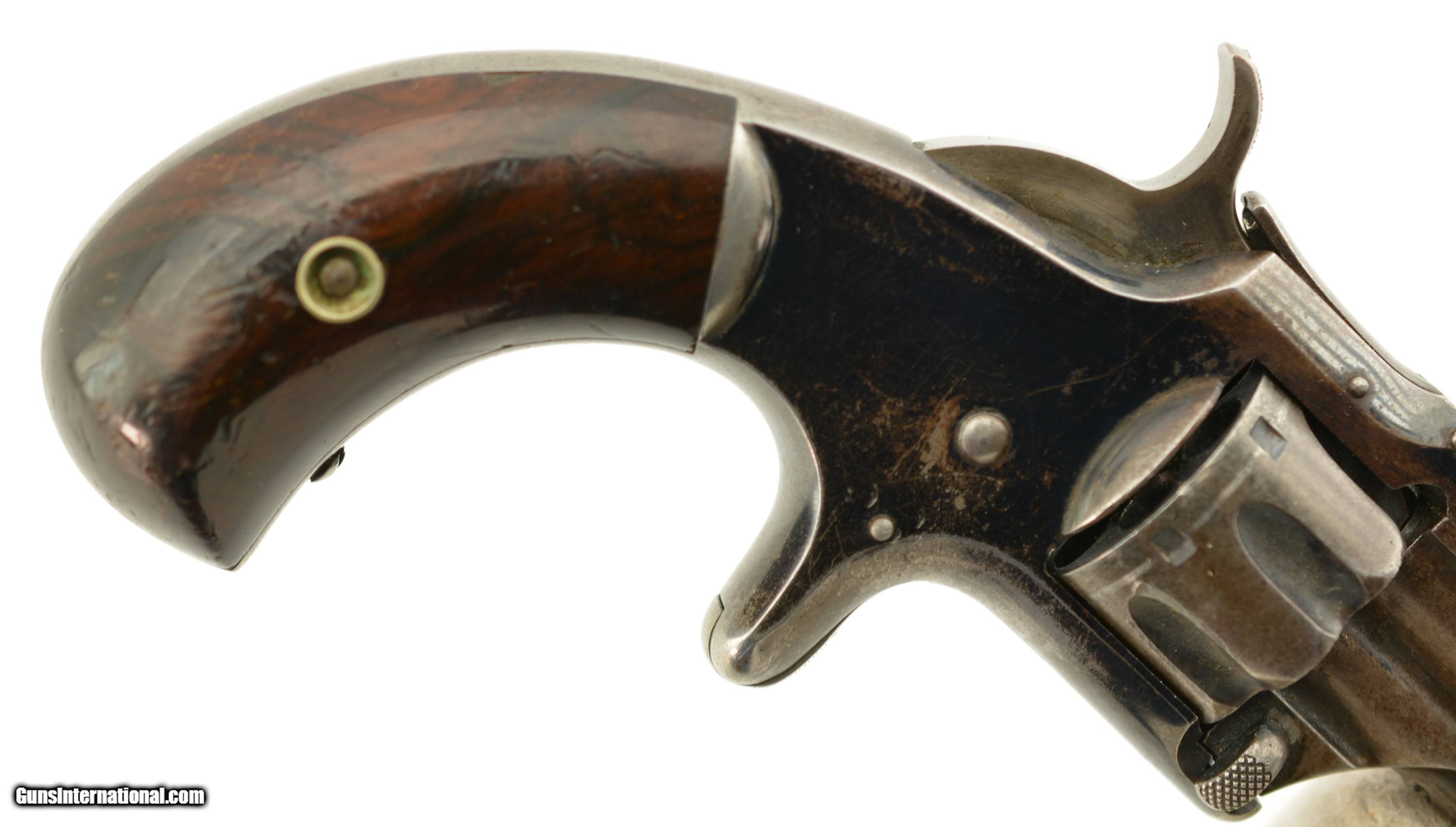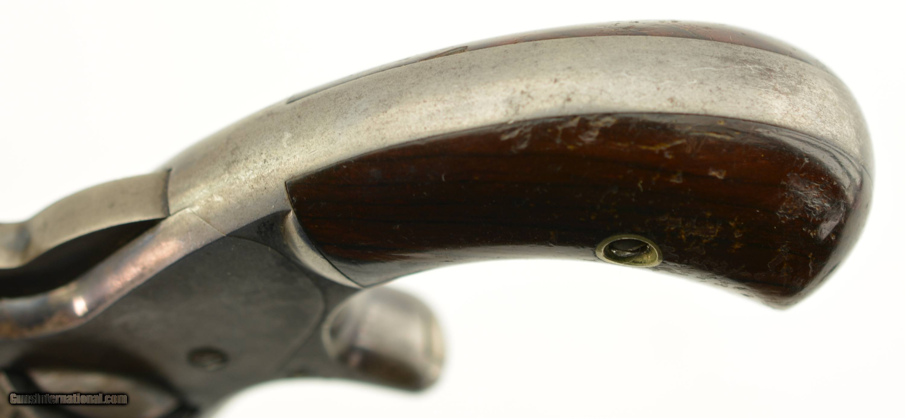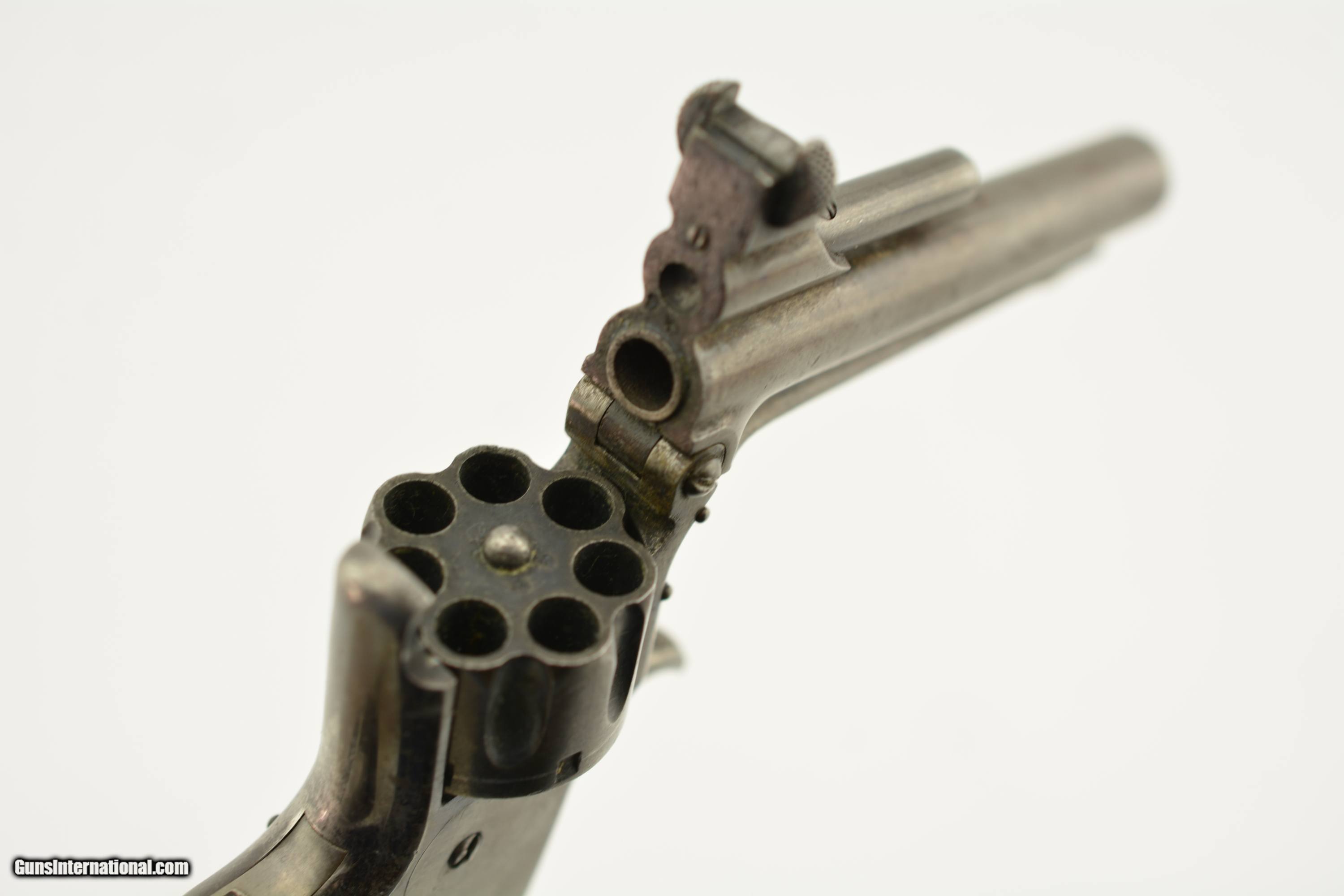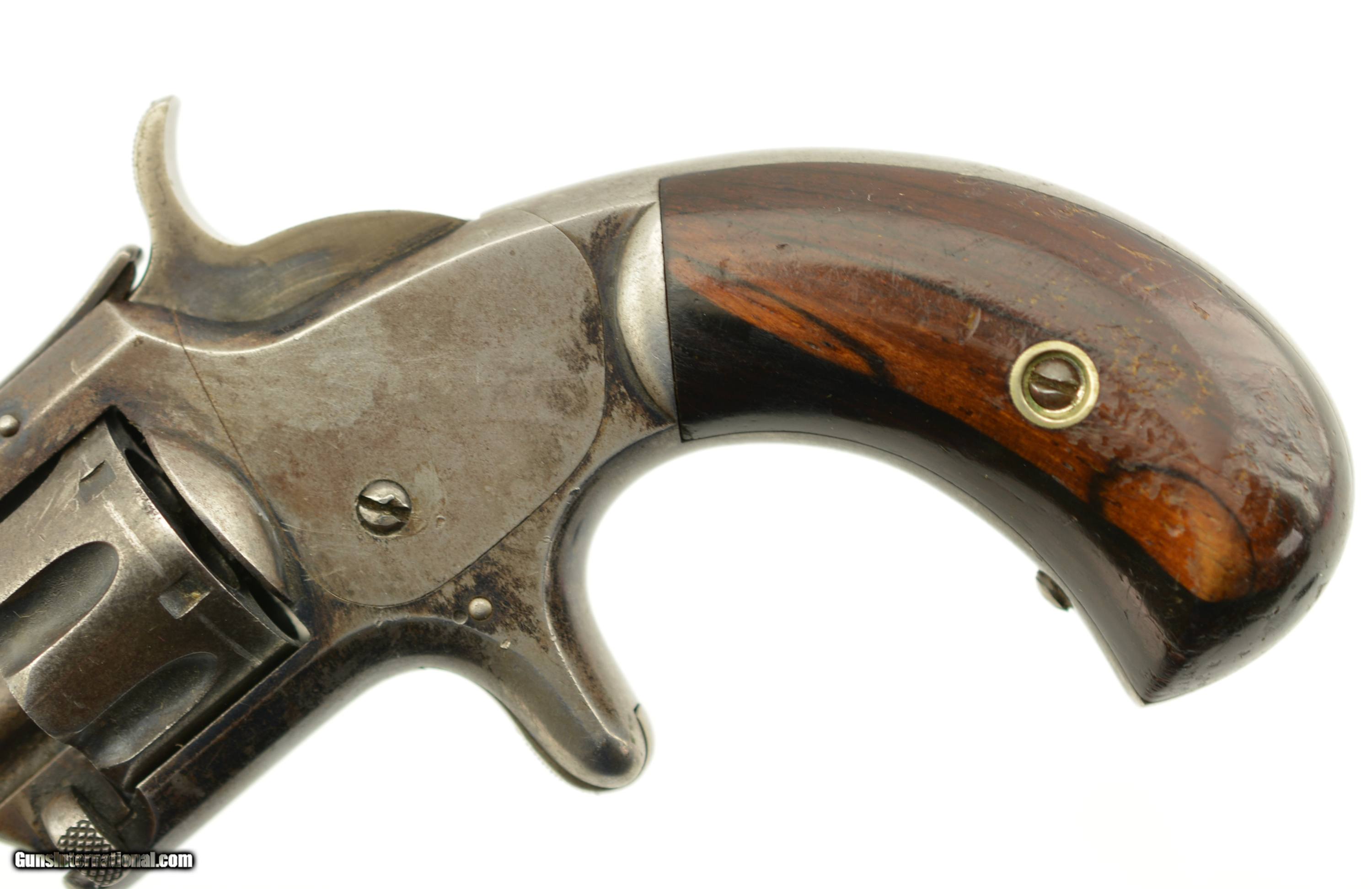 Description: Serial #10710, .22 RF, 3 3/16" barrel with a fine, bright bore that has some mild freckling towards the breech. This is a nice little revolver that has retained 30-40% of the original bright blue, mainly on the right side of the frame, and the balance turned to a smooth, mottled gray patina with mottled surface freckling in spots. The cylinder has a moderate turn-ring, with original blue turning plum-brown remaining. Matching assembly numbers are present on the frame, barrel , and cylinder ("G6"). The rosewood grips, numbered to the gun on the interior, are in good-very good shape, with minor surface marks and small bruises on both panels. The barrel lock-up is still tight with some barely noticeable lateral play in the barrel, and the action functions flawlessly. This is a very good plus example of a 3rd Issue No. 1 S&W, and would make a nice addition to any collection. Antique SOLD Antique: Yes Manufacturer: S&W Model: No. 1 Serial Number: 10710 Caliber Info: .22 Gauge Info: .22 |