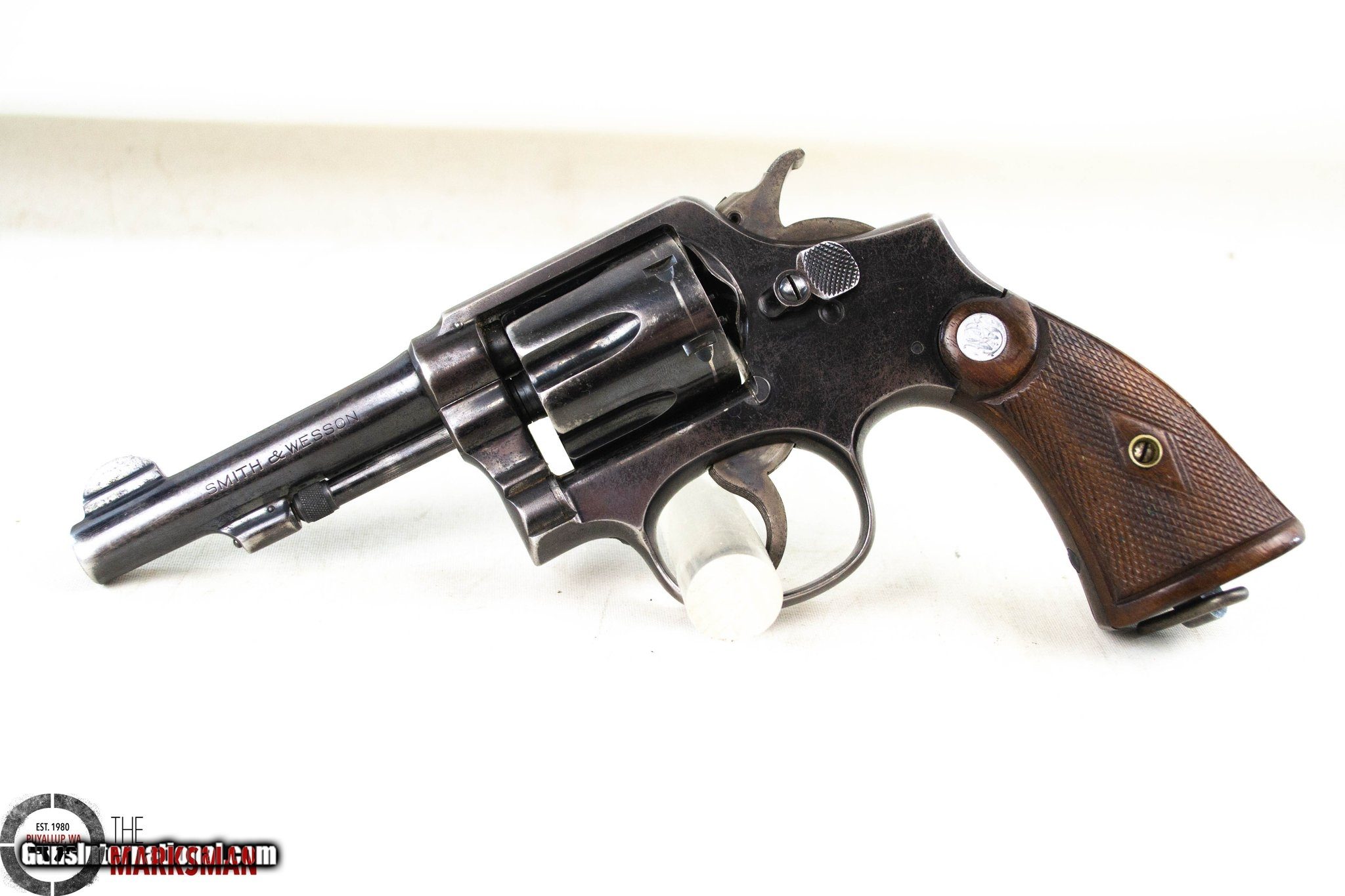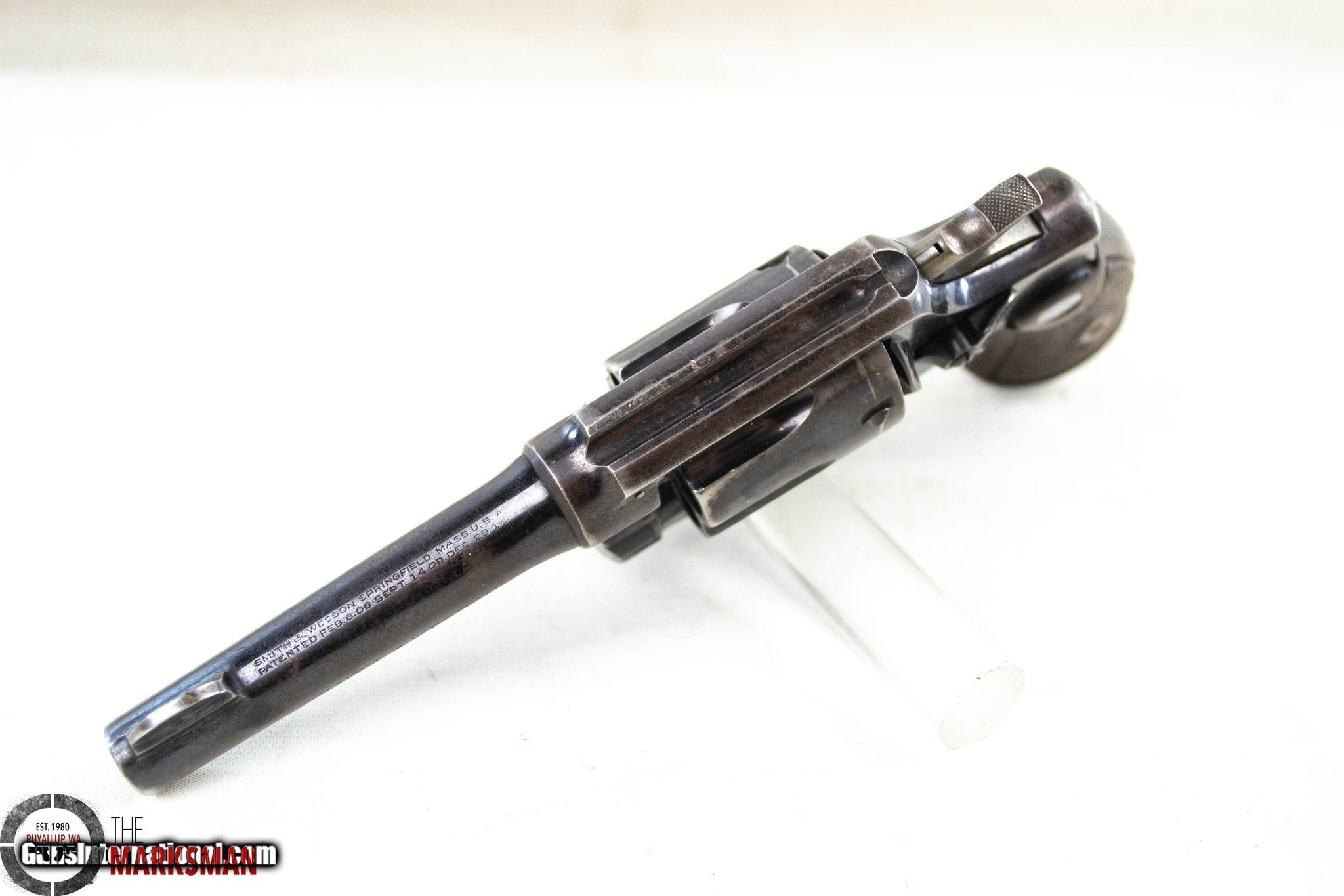 Description: Guns Listing ID: 514352 One (1) used Smith & Wesson Military and Police Model of 1905 - 4th Change, .38 Special. This revolver has a six shot cylinder, a 4 inch barrel, a blade front sight, a notch rear sight, a serrated trigger, a humpback hammer, wood grips with the Smith and Wesson medallions, a lanyard ring and comes with a leather flap holster. Overall, this revolver is in good shape but does have wear and tear from use as well as wear in the finish. SOLD Curio/Relic: Yes Manufacturer: SMITH & WESSON Model: 1905 Caliber Info: .38 SPL Condition: Used - Non-Certified Barrels: 4 Action: REVOLVER Finish: blued |