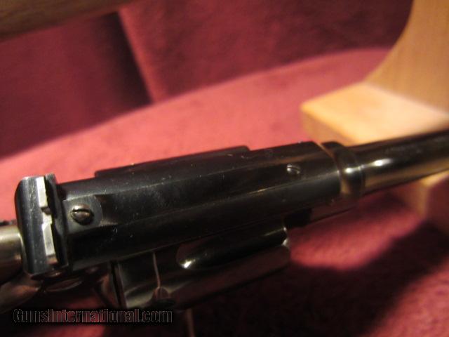 Description: ((((((SOLD))))) SMITH & WESSON MODEL 22/32 PRE WAR KIT GUN. ROUND BUTT, SERIAL NUMBER 529,XXX MFG DATE 1941 LAST YEAR OF PRODUCTION. ALL MATCHING NUMBERS. LIGHT DRAG LINE ON CYLINDER, BARREL BLUE SLIGHT WARE AT MUZZLE BALANCE OF BLUE ABOUT 98%. BORE AND CYLINDER CHAMBERS ARE LIKE NEW. GRIPS ARE LIKE NEW AND SHOW NO USE. RARE HARD TO FIND PRE WAR SMITH. NEED MORE INFORMATION PLEASE CALL OUR OFFICE 716-941-3946 SOLD Curio/Relic: Yes |