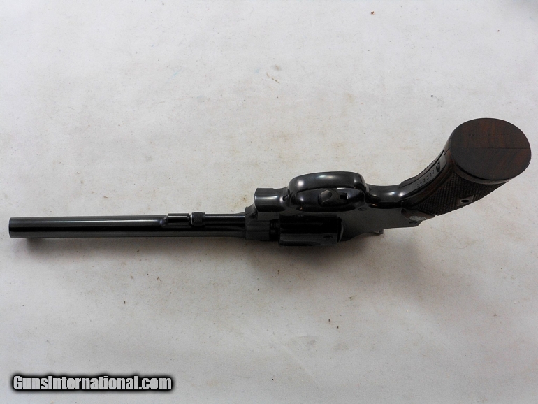 Description: This pistol was produced between 1917 to 1942. The serial number is 523640. It is fitted with the June 5th 1917 diamond center grips The grips are in minty condition. The color cased finish on the hammer and trigger is strong and colorful. There is a faint drag line between the cylinder stops. That is pretty much typical for Smith & Wesson revolvers to have that drag line. The blue finish is very bright and would rate a strong 99% condition. The only blemish is by the right side just above the trigger, there are some very faint scratches. This pistol appears to have not been fired or in any way used. I feel confident in saying that it is as new in the original box! The red box is serial numbered to this pistol. The box is in fine condition. The label is clear and clean. There are no box contents present. This is a really stunning Smith & Wesson revolver that would make any collector proud to have as one of their top collectables! Early Smith & Wessons in this kind of condition just do not come up for sale that often! Search for hlvfineguns on google. Curio&Relic BKCK F. No. 167 SOLD Curio/Relic: Yes |