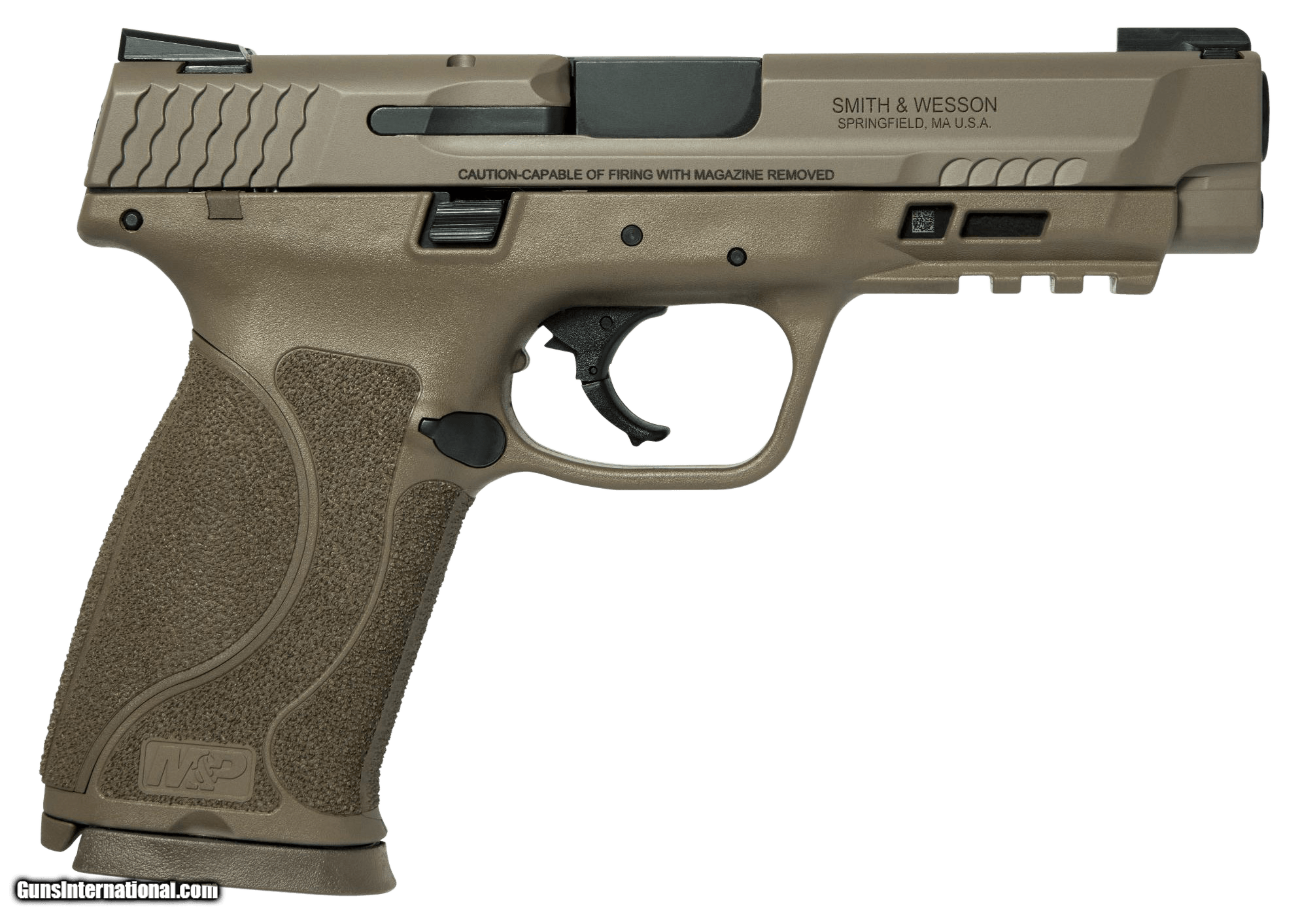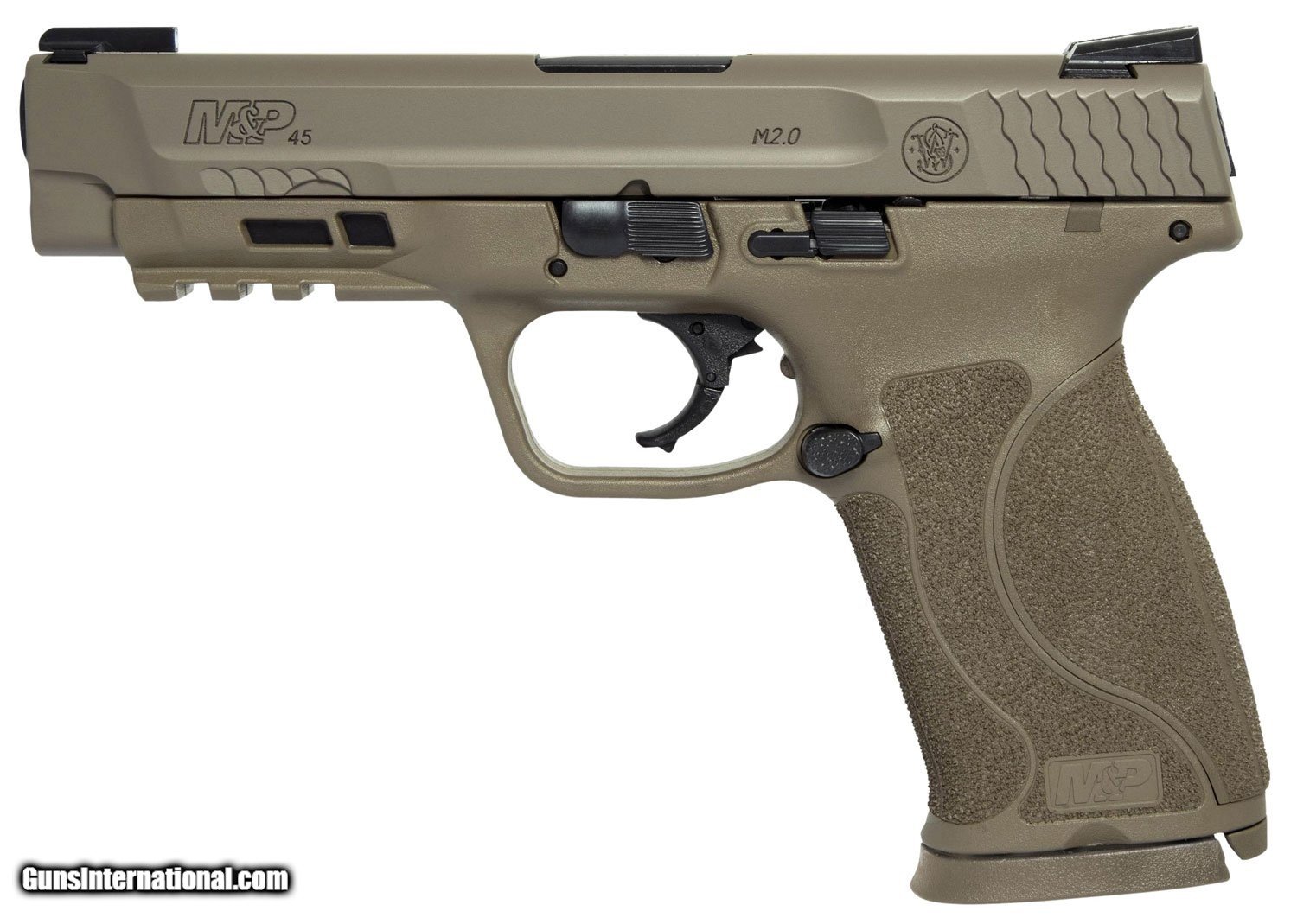 Description: Guns Listing ID: 71285 The Smith Wesson MP has a reinforced polymer chassis superior ergonomics ambidextrous controls and proven safety features. In designing the MP Smith Wesson considered the needs of military and law enforcement from every conceivable angle so the MP is the standard in reliability when your job is to serve and protect and your life is on the line. The MP M2.0 features an extended stainlesssteel chassis and high griptobarrel bore axis ratio an aggressivelytextured grip and four interchangeable palmswell inserts for optimal handfit and trigger reach and includes two magazines.This model has a flat dark earth finish no manual safety TruGlo TFX sights and a 4.6 barrel.\ Manufacturer: SMITH & WESSON Model: M&P 45 M2.0 Caliber Info: .45 ACP Condition: new Barrels: 4.6" BARREL Action: SEMI AUTOMATIC Weight: 1.87 LBS. Price: $674.99 Contact Seller |