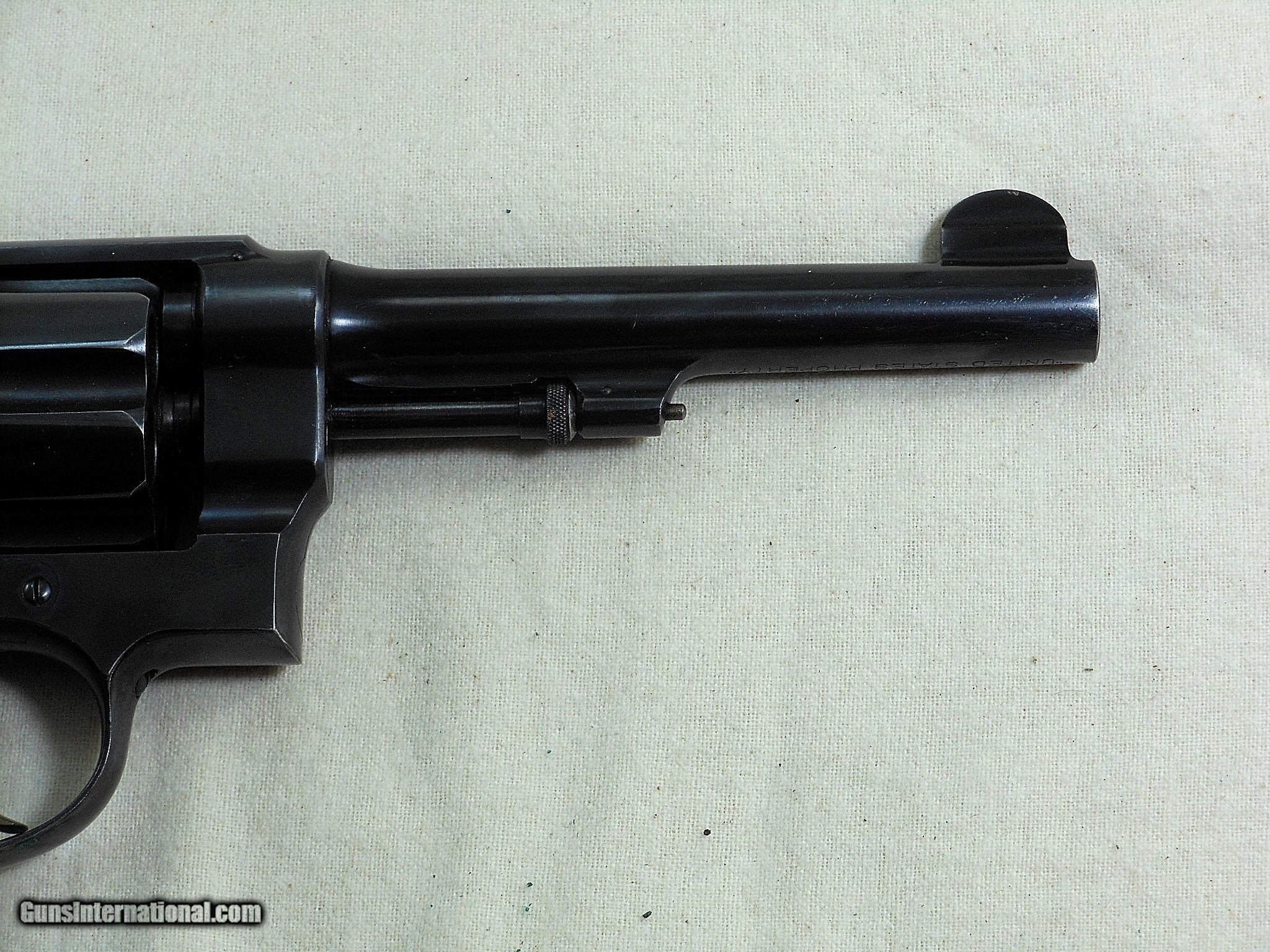 Description: This Smith & Wesson was produced in 1918. The pistol's serial number is 52827. It has the 5 1/2 inch barrel that is stamped on the bottom United States Property. The bore is in minty condition. The chambers are bright with no pitting or burn marks on the cylinder face. This near new pistol has 99% of it's original commercial quality bluing intact. The smooth wood grips are in near new condition. This pistol has seen very little use or being shot. The hold open plunger is intact to keep the cylinder from bouncing around when reloading. This pistol locks up tight with no play. The color cased hammer and trigger have vivid color. The screws have no burring or deformed heads from improper use of a screw driver. This is a really stunning Smith & Wesson! Included with this pistol is a original military Cavalry style holster in almost unissued condition. The back of the holster is marked G.& K. 1917 with the inspector stamp A.G.. The leather is supple with no dry spots. There is no cracking or stiching separation. This is an as issued complete holster! The ammunition pouch is by Wharton Mfg Co. 1918. This ammunition carrier is in unissued condition. It carries 18 rounds of 45 A.C.P. in half moon clips. The clips carry three shells each. Each pouch has a full load for the revolver. The shells are by The United States Cartridge Co. And dated 1918. All the shells are the same. These items go very nicely with this pistol as all of these items are in unissued condition! This would make a great display for any collection! Search for hlvfine guns on google for more details. Curio&Relic LBKE (7) F. No. 507 -20 SOLD Curio/Relic: Yes Manufacturer: Smith & Wesson Model: 1917 Serial Number: 52827 Barrel Length: 5 1/2 inch Caliber Info: 45 A.C.P. Chambers: Minty Condition: 98% Overall Metal Condition: 99% Blue Wood Condition: 98% Bore Condition: Minty Action: Double Action Finish: Blued Sights: Standard Manufacture Date: 1918 Extras: Holster, Ammunition Pouch |