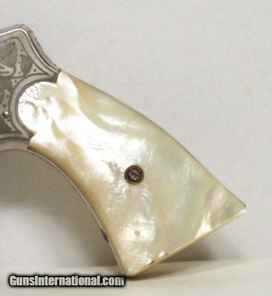 Description: Smith & Wesson 3rd Model 44 Hand Ejector; AKA Model 1926; AKA Wolf & Klar Model; SN 29133; shipped to Wolf & Klar Company, Fort Worth, Texas, on April 16, 1927; 5” bbl.; Nickel plated; “44 S&W Special Ctg” typical Wolf & Klar engraving; carved Steer Head Pearl Grips; PERFECT action & Bore; most of ORIGINAL nickel remains; ALL NUMBERS MATCH; Smith & Wesson Letter & NICE unmarked period holster included; 90 year old Texas gun; FFL/C&R required for shipping; All items shipped fully insured Priority Mail- -Hand guns $30 --Long guns $45-- Spurs $30-- Knives, Swords & Sabers $30 (Texas residents please add 6.75% sales tax); return policy: three days inspection from the date the item is received; full refund of shipping both ways ONLY IF THE ITEM IS MISREPRESENTED. Note: International sales only as laws permit. Will ship C&R eligible items to C&R license. Antiques shipped without license to anyone EXCEPT New Jersey and City of New York where a FFL is required. SOLD Curio/Relic: Yes Manufacturer: Smith & Wesson Model: 1926 - 44 Wolf & Klar Serial Number: 29133 |