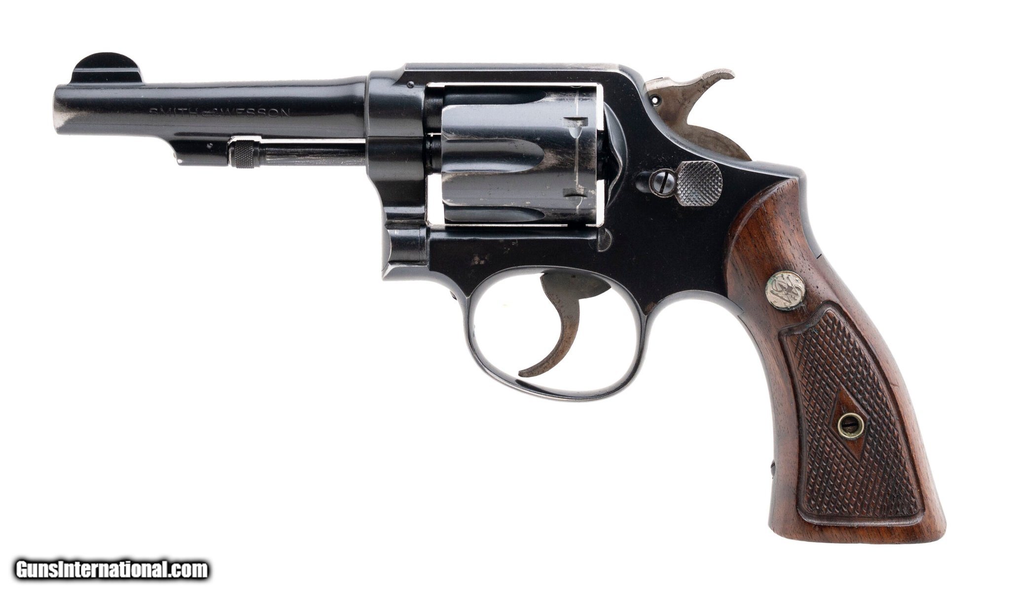 Description: Guns Listing ID: 505761 SN: S831680. Late 1940‚‚s vintage .38 Special with a 4\" barrel. 5-screw pre-model 10 service revolver. Has about 80% original blue with most of the wear on the grip frame. The grips are very good with normal service wear. The action is smooth and locks up tight. Overall very good condition. (PR72739 SOLD Curio/Relic: Yes Manufacturer: SMITH & WESSON Model: Pre-model 10 Caliber Info: .38 SPL Condition: Used - Non-Certified Barrels: 4 Action: REVOLVER Finish: blued |