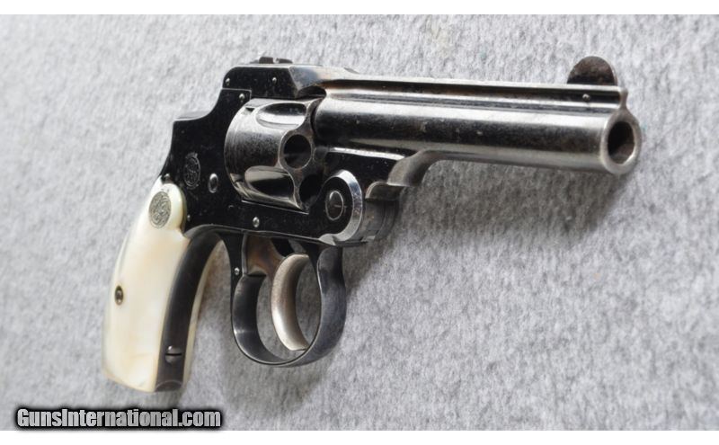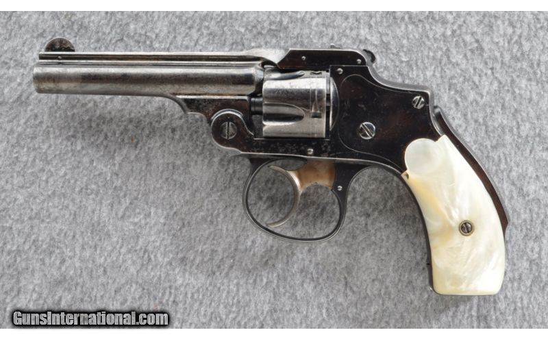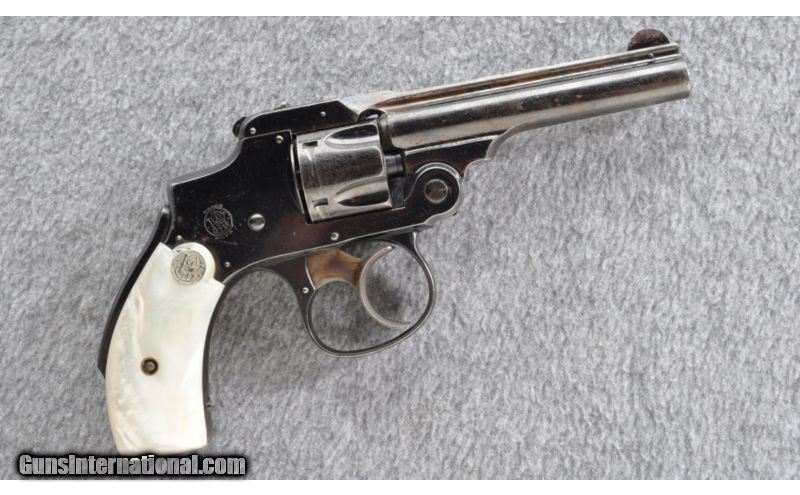 Description: Turn of the century concealed carry revolver. SOLD Curio/Relic: Yes Manufacturer: 1888 - 1902 Caliber Info: .32 Smith & Wesson Metal Condition: Showing some light freckling on the barrel & cylinder, less on the frame Wood Condition: Pearl grips show a small chip-out on the right panel above the medallion Bore Condition: Bright & sharp Barrels: 4 1/2 Triggers: Double Action only Stock: Mother of Pearl with S&W medallion on right panel Weight: 16 oz Sights: Fixed blade front, Notched rear Item Location: Grand Junction, CO |