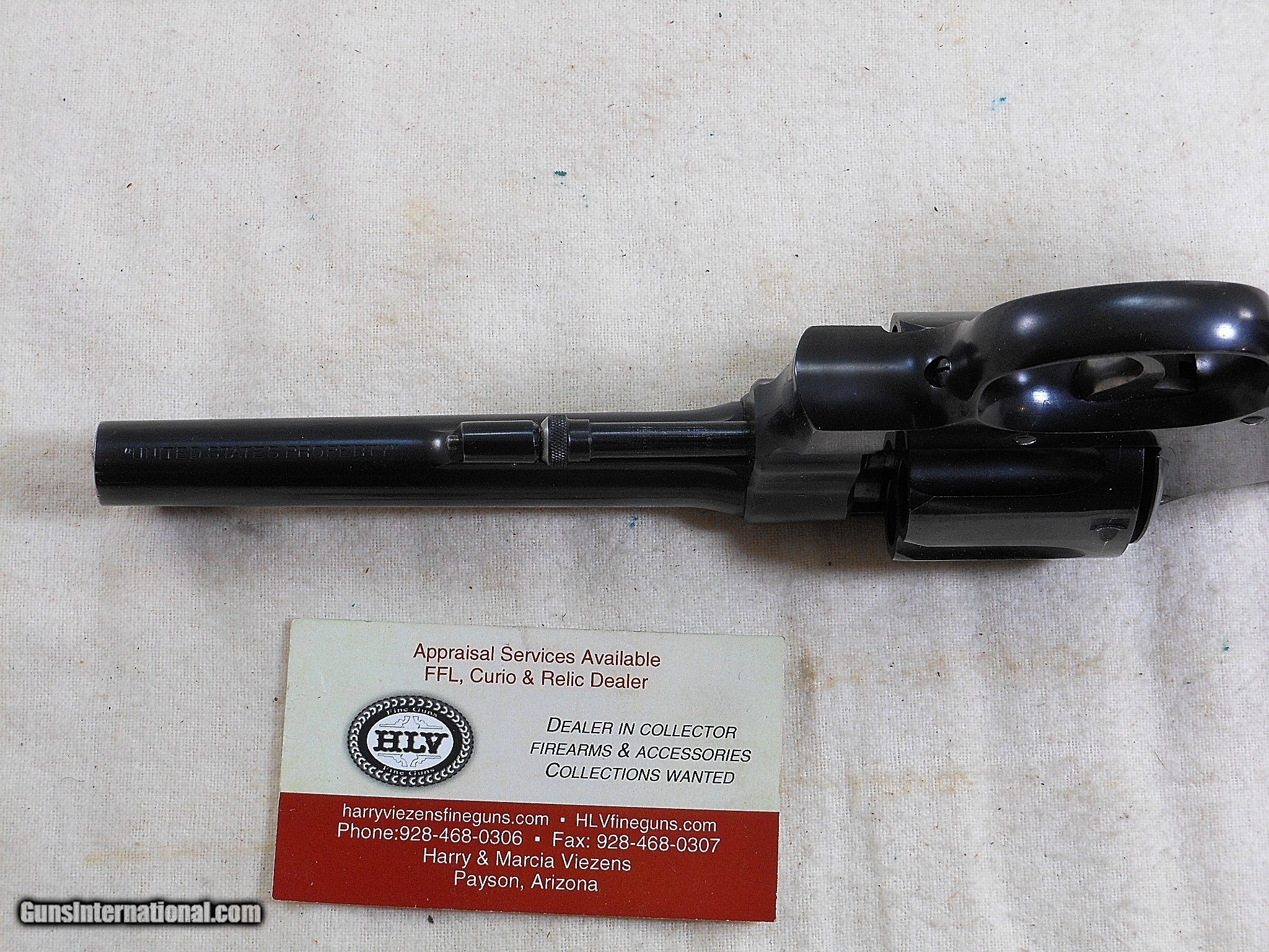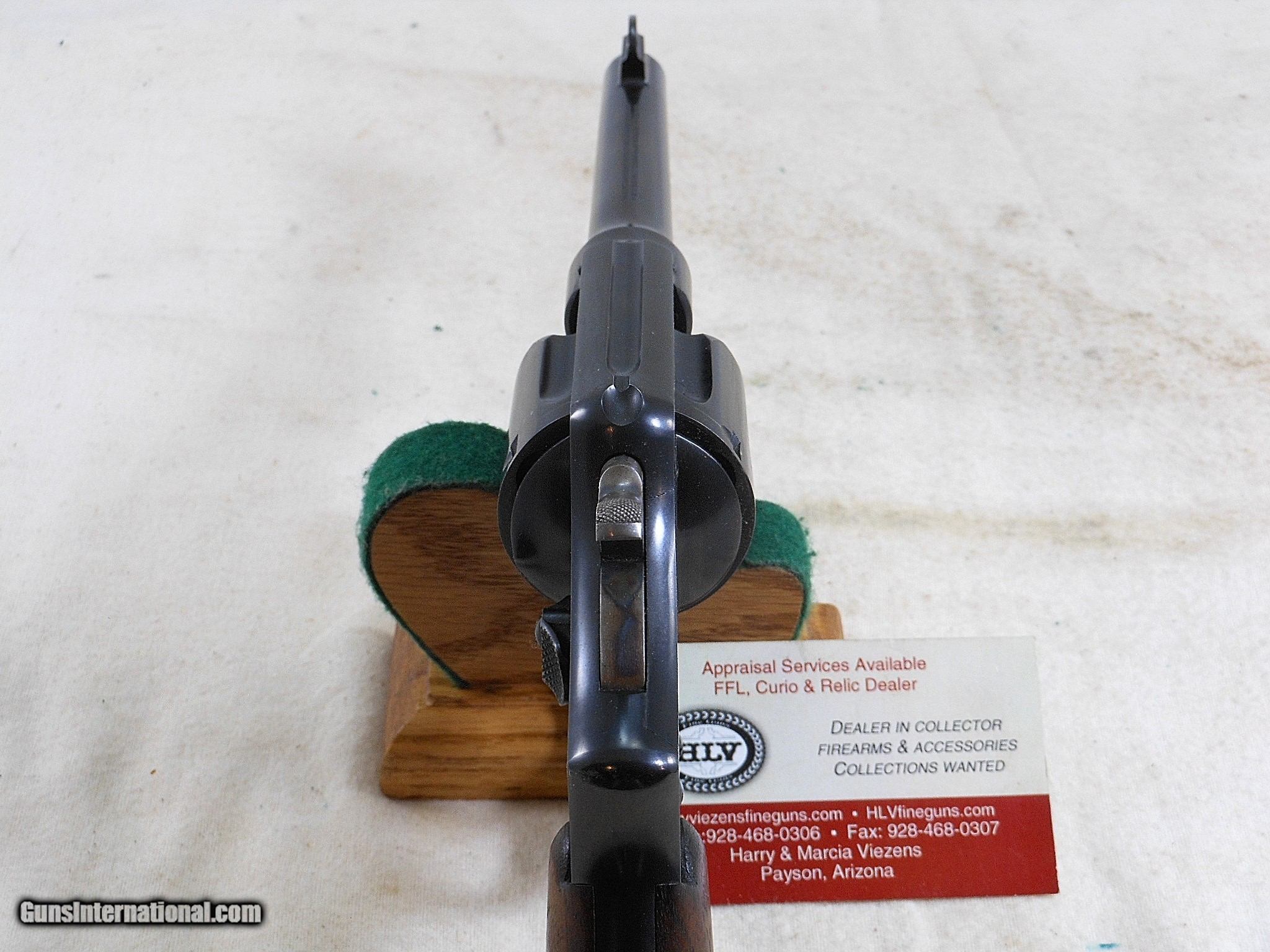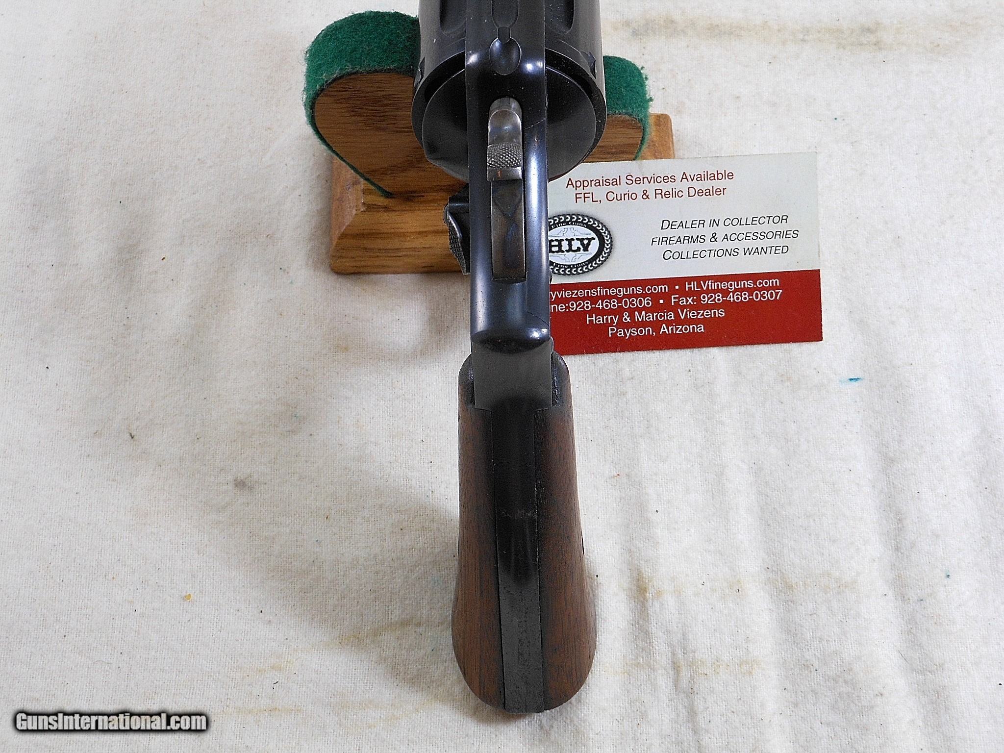 Description: SOLD This Smith & Wesson was one of the earliest to be produced in 1917. The pistol's serial number is 110. The pistol is chambered to shoot the 45 A.C.P. cartridge in half moon clips. It will also shoot the latter 45 auto rim cartridge. The bore and chambers are in new condition. This pistol is in near new condition throughout. All of the metal parts are correctly serial numbered to the frame. The only draw back is that the grips are a latter style for this model. These grips fit just fine. This pistol shows very little sign of ever being fired if even being fired. The hammer and trigger have strong color cased finish. The color cased finish would rate a 98% condition. The original bluing would rate a 99% condition. The crane has the hold open plunger intact. This is one very stunning Smith & Wesson! Having serial number 110 is a collectors dream to find in this early of a serial number. Having this pistol in this fine of condition is a real plus! Curio&Relic W.T. Consn. (11) F. No. 696 -23 SOLD Curio/Relic: Yes Handgun Caliber: .45 ACP (.45 Auto), .45 Auto Rim Manufacturer: Smith & Wesson Model: 1917 Serial Number: 110 Barrel Length: 5 1/2 Inch Chambers: AS New Condition: 99% Overall Metal Condition: As New Wood Condition: Very Fine Bore Condition: As New Barrels: Pistol Barrel Type: Military Action: Double Action Finish: Blued Sights: Standard Manufacture Date: 1917 |