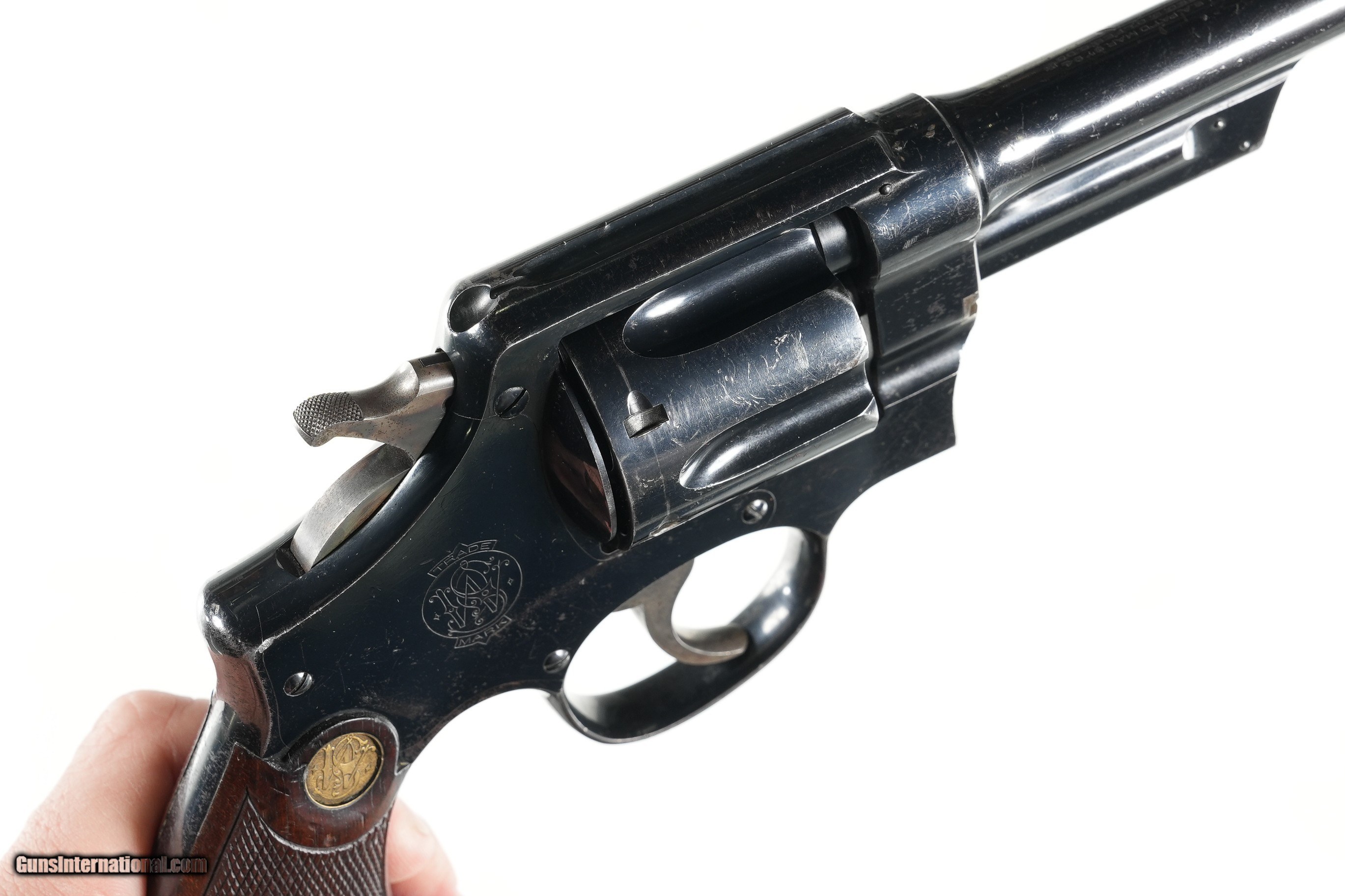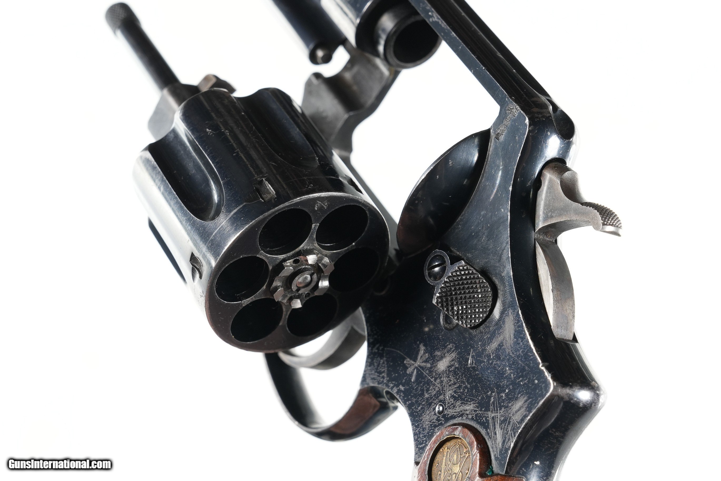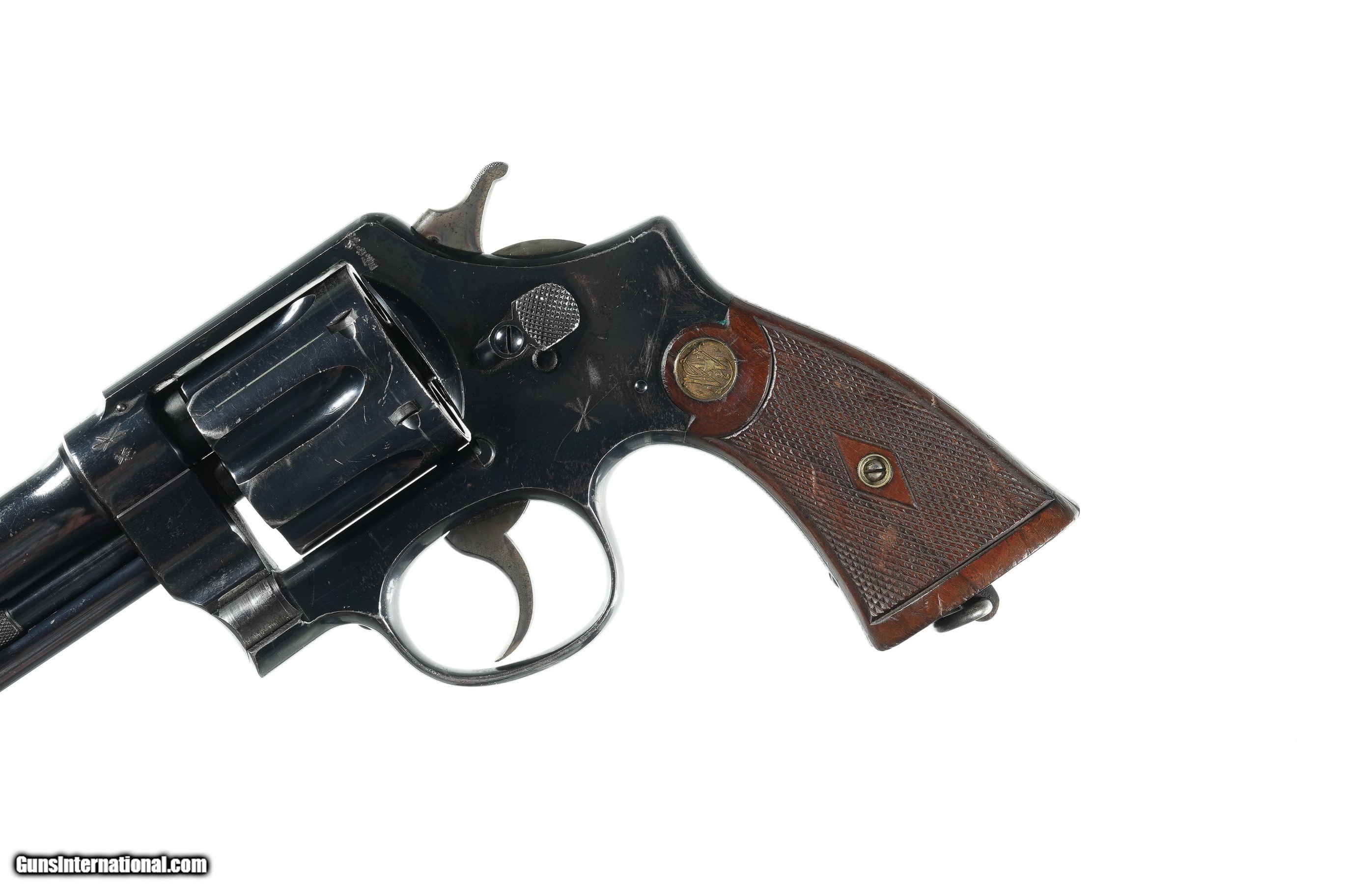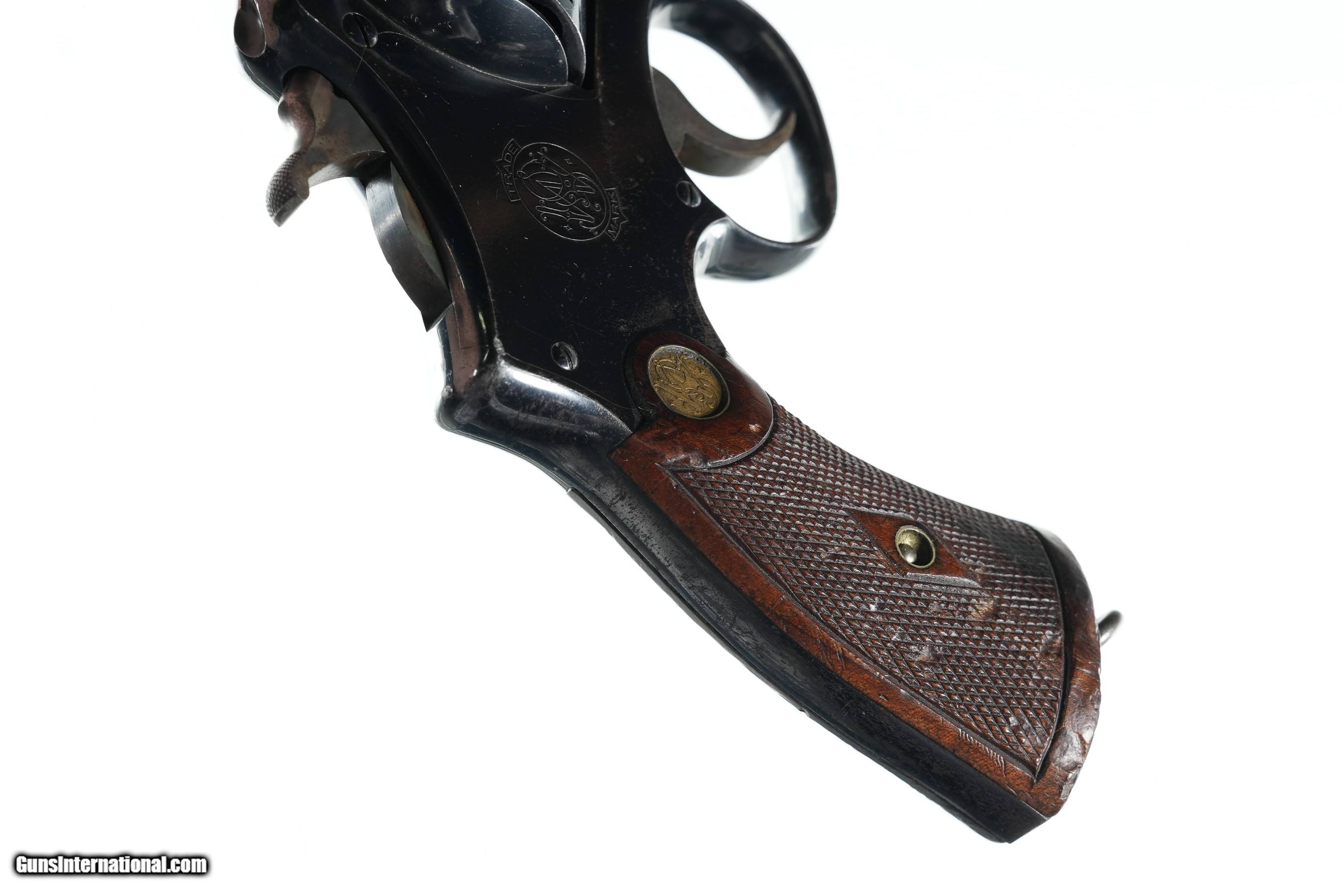 Description: Smith & Wesson Model 455 Triple lock with 6 1/2" Bbl. Blue finish with lanyard swivel Broad Arrow markings on left side of frame and British proofs. Condition, Very fine remaining in 455 cal and not modified. Mechanically fine with over 80% finish • Free Shipping, No Credit Card Fees. • Lay-a-way available for this firearm. • 1/3 Down, a 1/3 in 30 Days, 1/3 in 60 Days. SOLD Curio/Relic: Yes Manufacturer: Smith & Wesson Model: 455 Serial Number: 4068 Barrel Length: 6 1/2 |