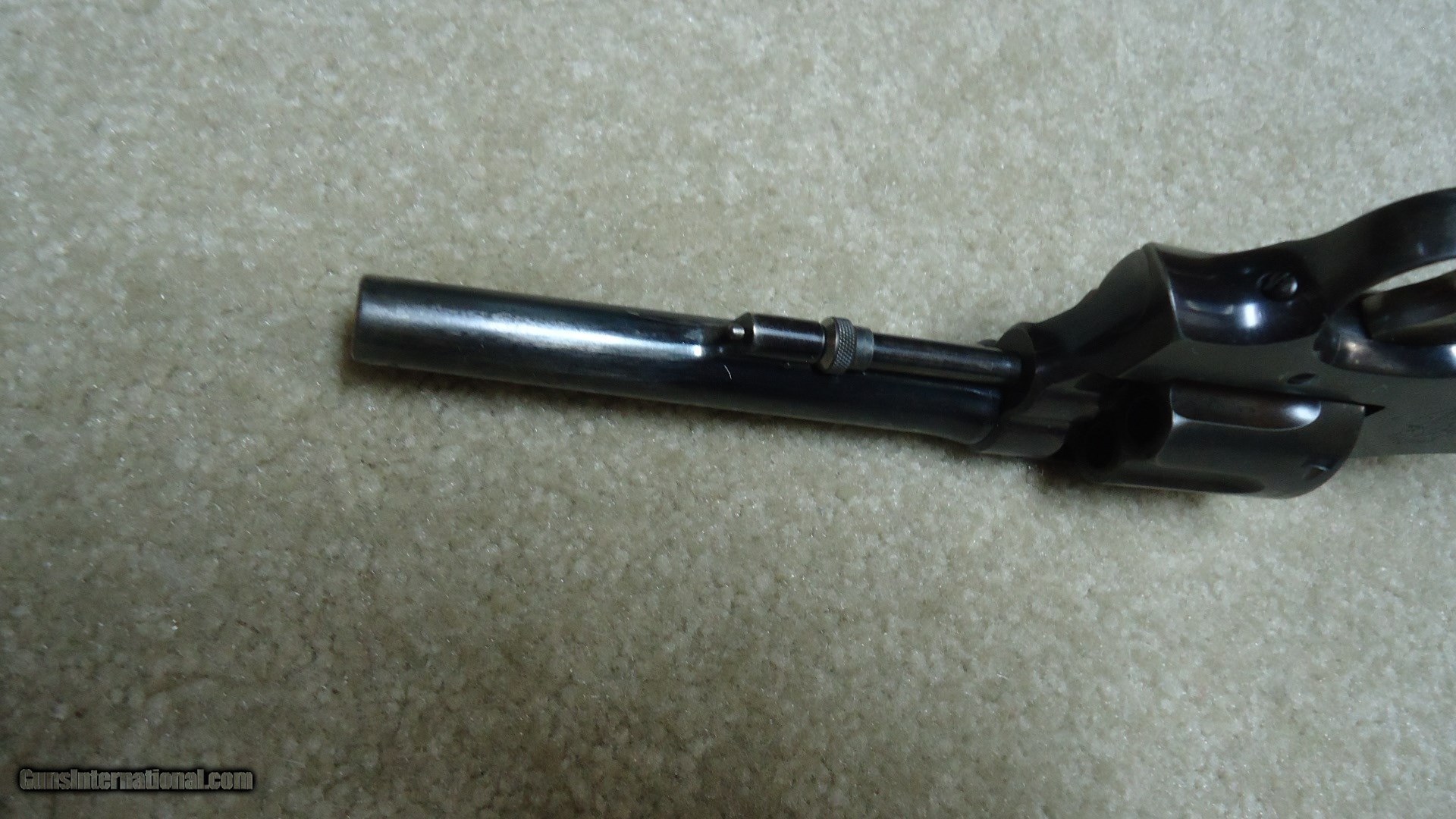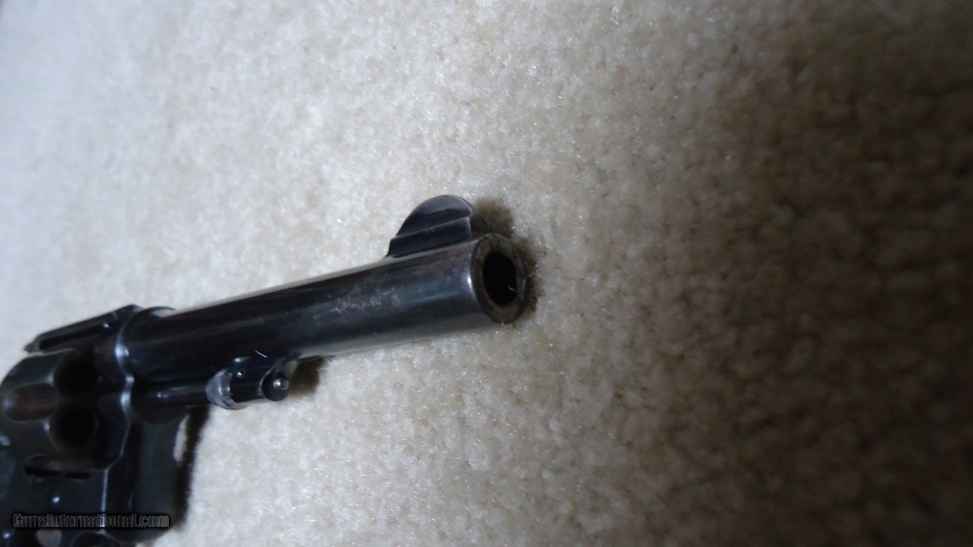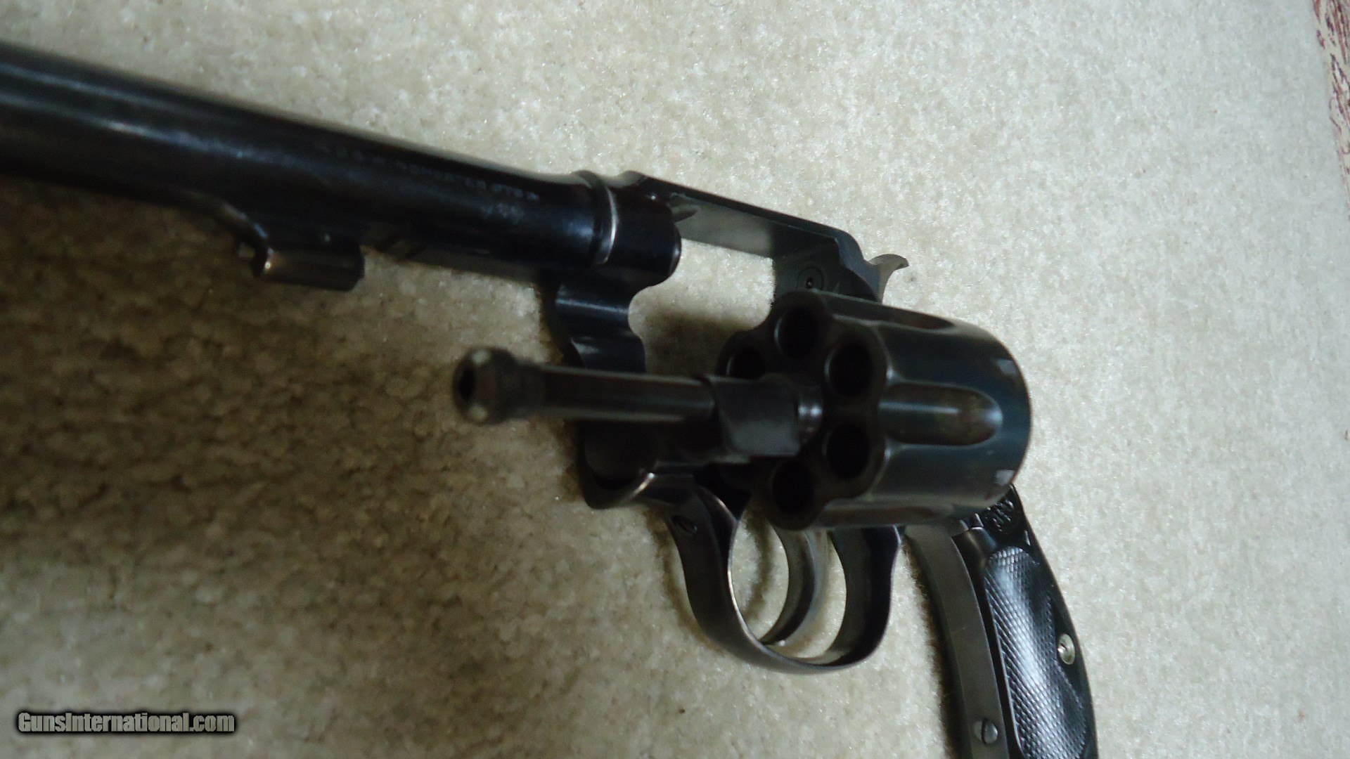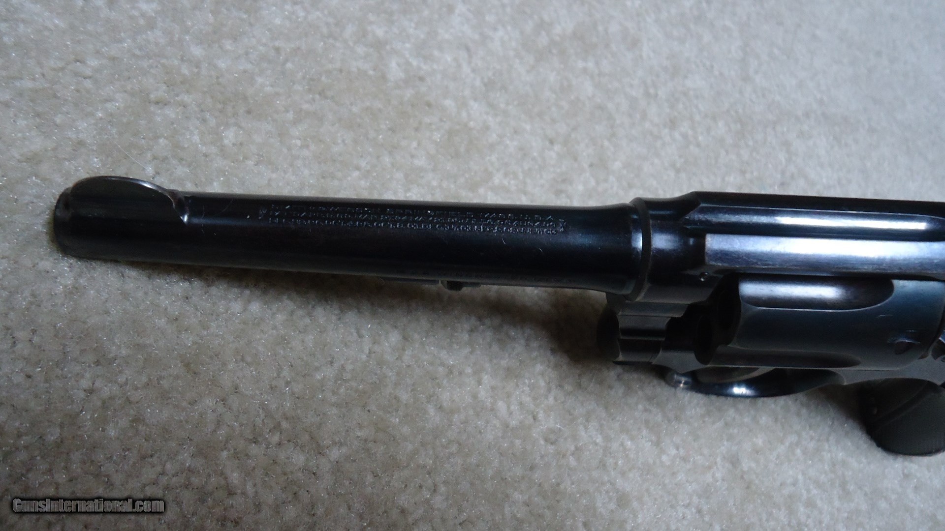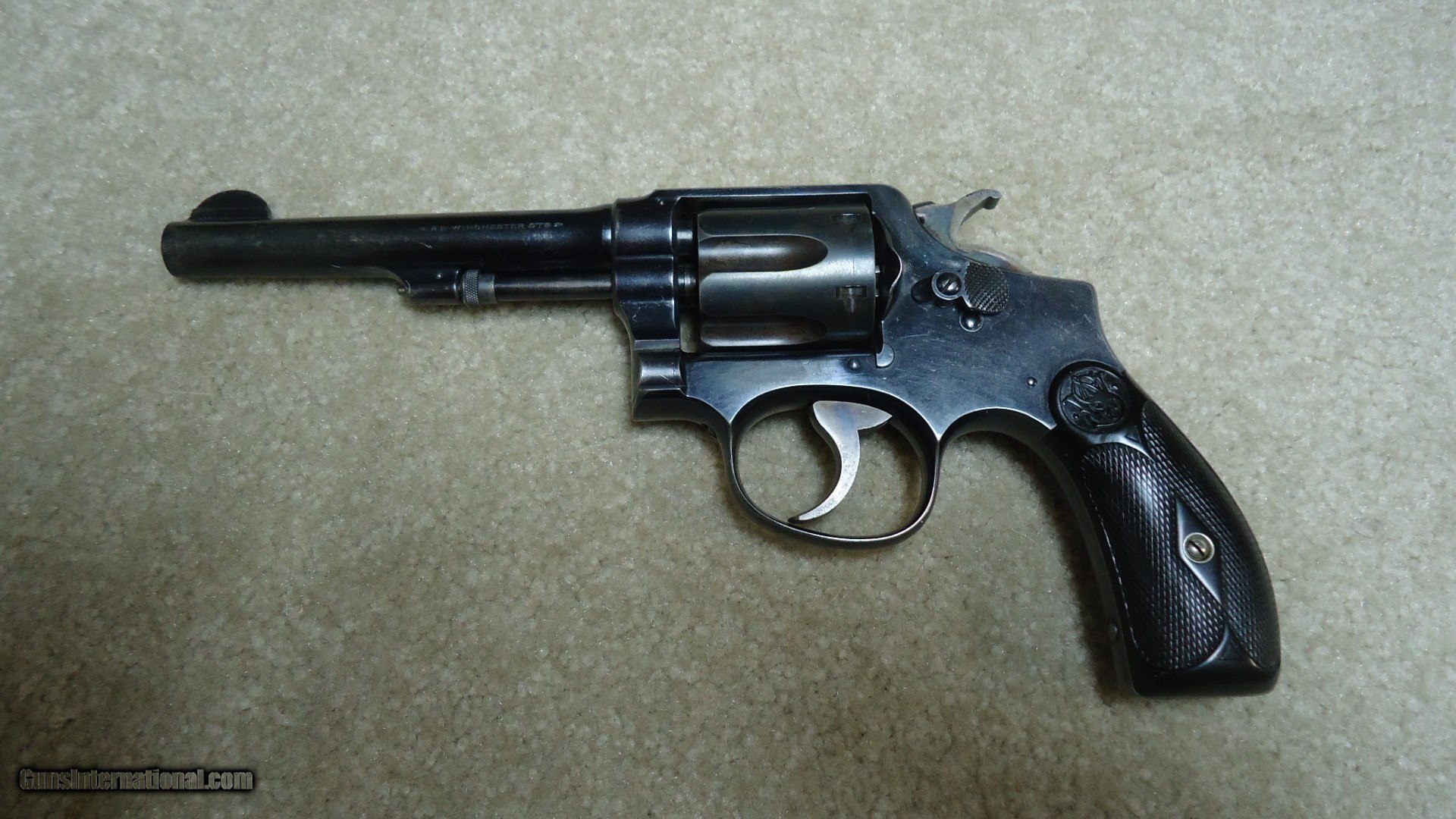 Description: VERY LIMITED PRODUCTION 32-20 MODEL 1905 1ST CHANGE, #23XXX, ONLY 11,073 MADE FROM 1906-1909. This is a blued example with correct scarce round butt (made with square butt also) and 5” barrel. Serial range for this model ran from 22427 to about 33500. No doubt this is an early first year production example from 1906. Matching serial numbers on the barrel, cylinder, frame and inside the grips. It is especially hard to find one of these early .32-20 Hand Ejectors in decent condition as they were typically “outdoorsman’s” sidearms that were paired with a Winchester, Marlin or Colt Lightning rifle in the same caliber and carried afield where they saw hard outdoor use. Many of the same model in .38 Special caliber ended up in bedside tables and are found in excellent condition now…not so the .32-20s! This 113 year old S&W still retains some fine deep blue on the barrel, frame and protected areas. It looks like some cold blue has been added which is really no big deal. Excellent case color on the hammer and trigger sides, exc. screws, tight action, exc. bore, front sight has not been altered or filed (!), grips fit perfectly and show only normal wear- interestingly, the right grip or “outside facing” grip in a typical right-handed holster is more worn than the left or “inside” grip which would naturally be more protected from rubbing and wear. All excellent and sharp markings including the barrel address and patent dates ending in 1903. There’s nothing like the hand fitted quality and workmanship in these early Pre-War Hand Ejectors! This is a scarce one. SOLD Curio/Relic: Yes Manufacturer: SMITH & WESSON Model: 1905 .32-20 HAND EJECTOR 1ST CHANGE Serial Number: 23XXX Caliber Info: 32-20 Condition: FINE Barrels: 5 |